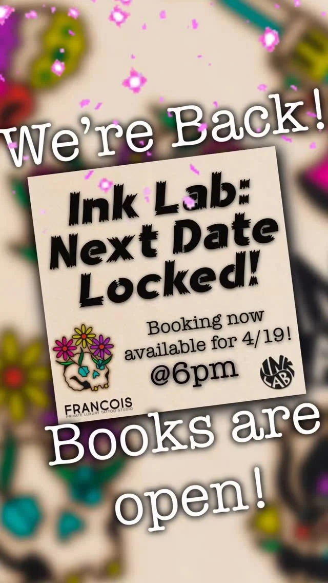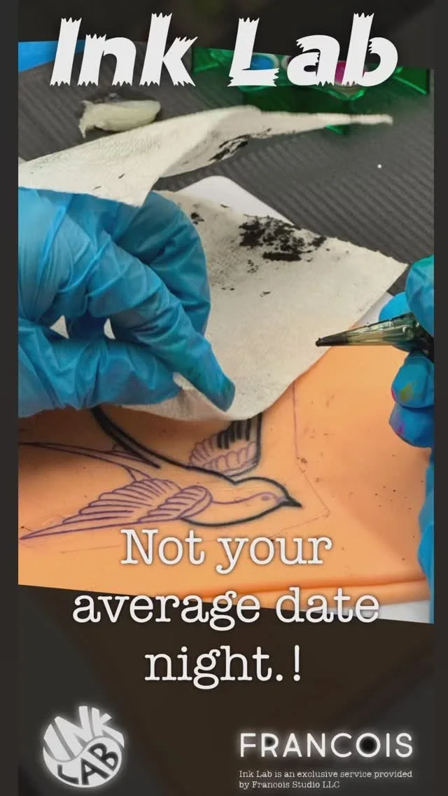 Thanks for showing interest in the one and only tattoo-themed date night experience established in 2024! Ink Lab’s page is still in the works, so please follow @inklabohio on Instagram for updates and info, or, if you don’t use Instagram, you can view the feed right here. Booking is currently closed! Send me an email for info.