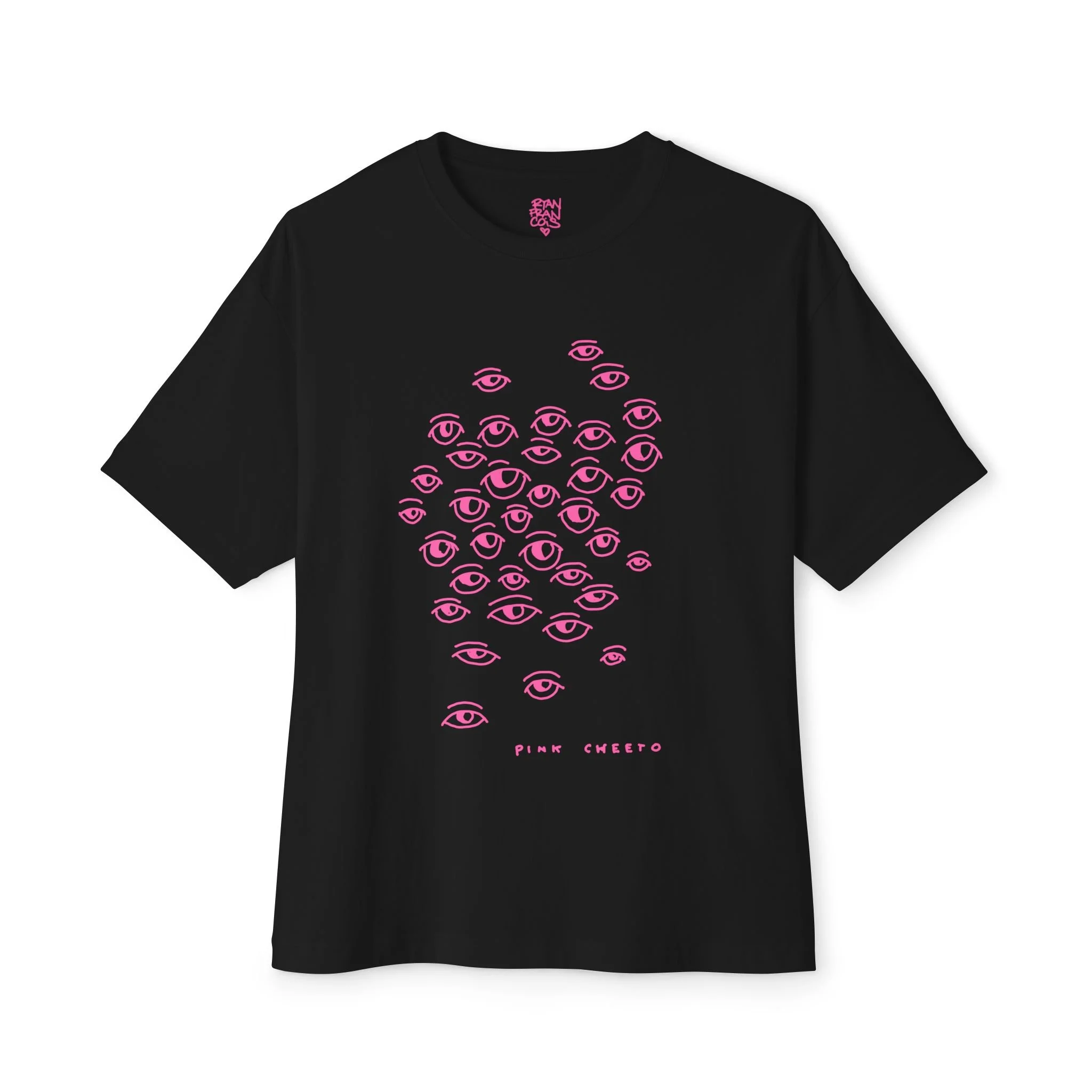 Pink Cheeto Eye Pattern Boxy Tee — Minimalist All-Seeing Graphic T-Shirt -Pink