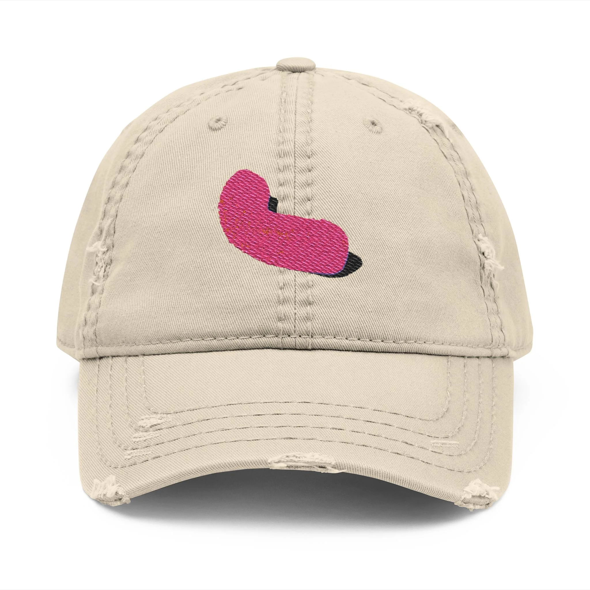 - Distressed details with 6 sewn eyelets and 4 stitched brim rows