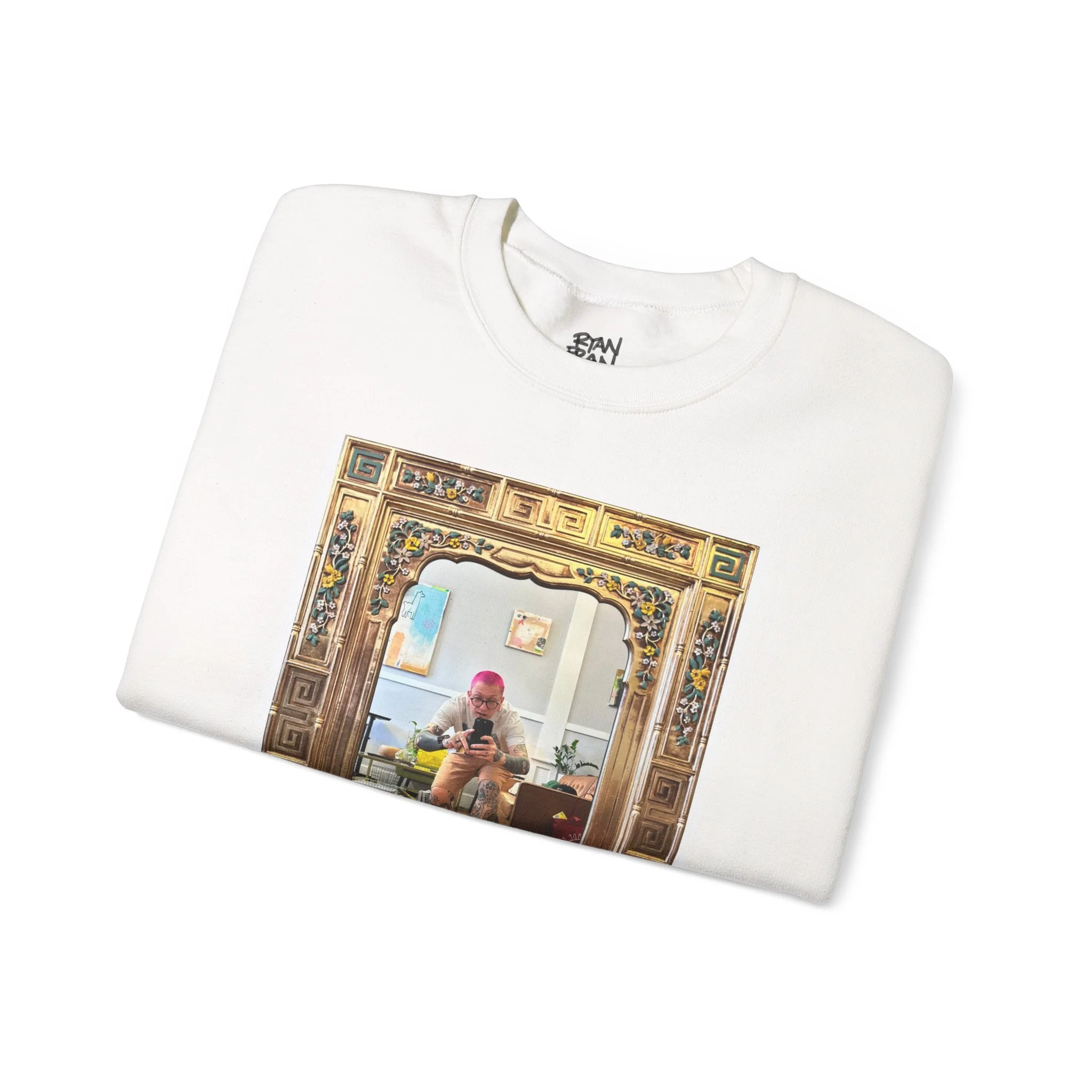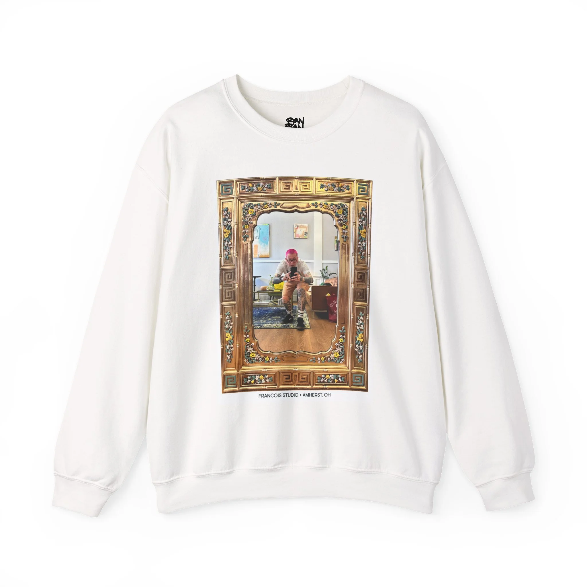 Francois Selfie Crewneck Sweatshirt — Vintage Portrait with Ornate Frame Print