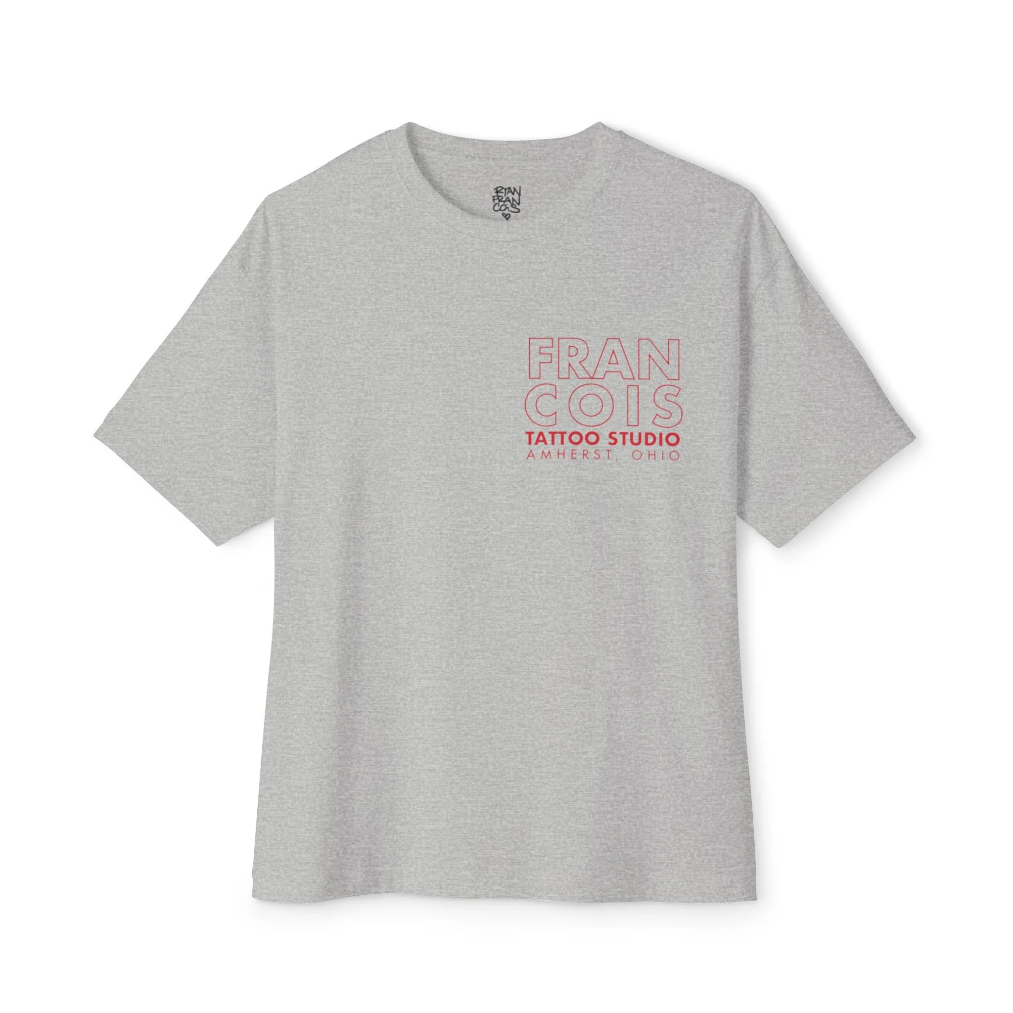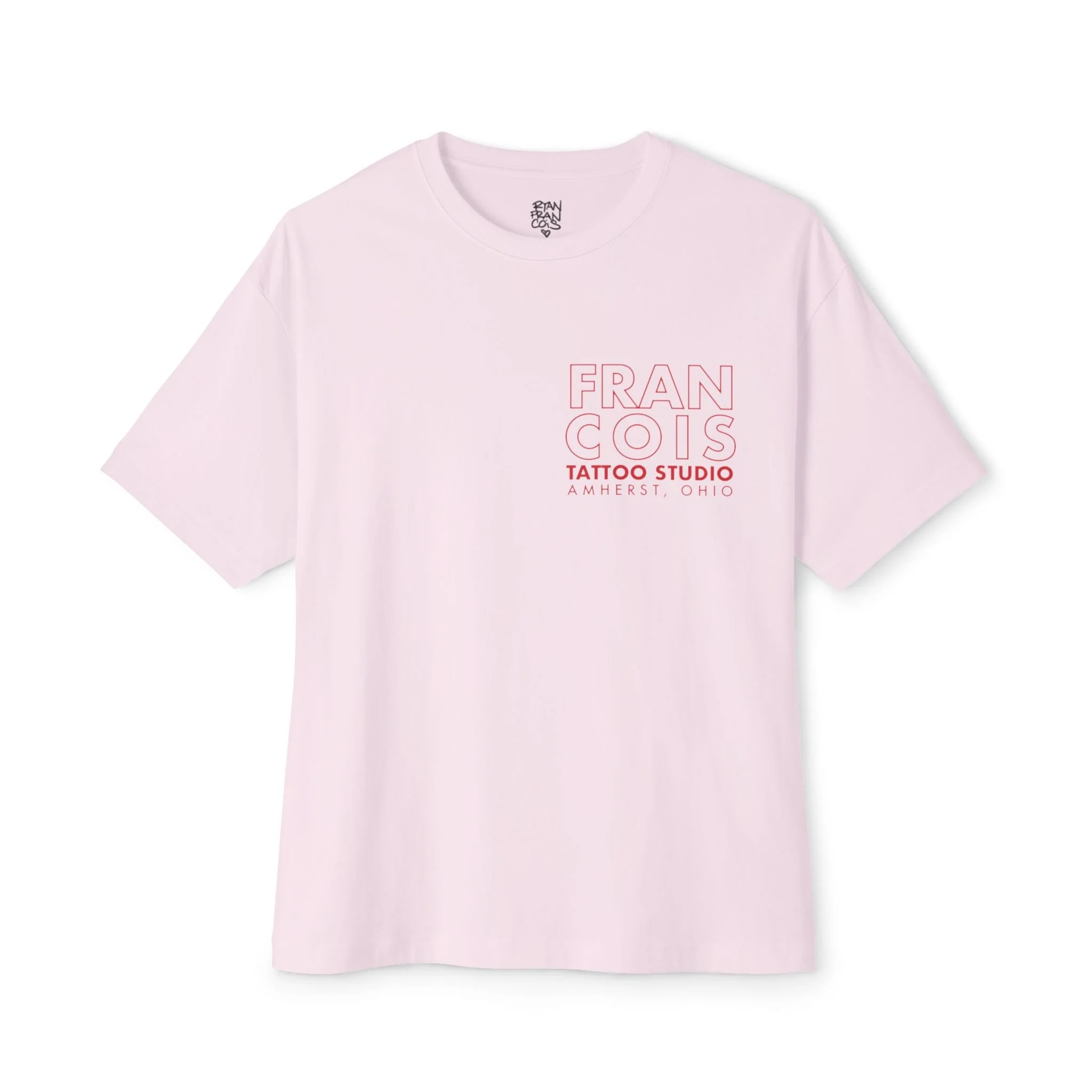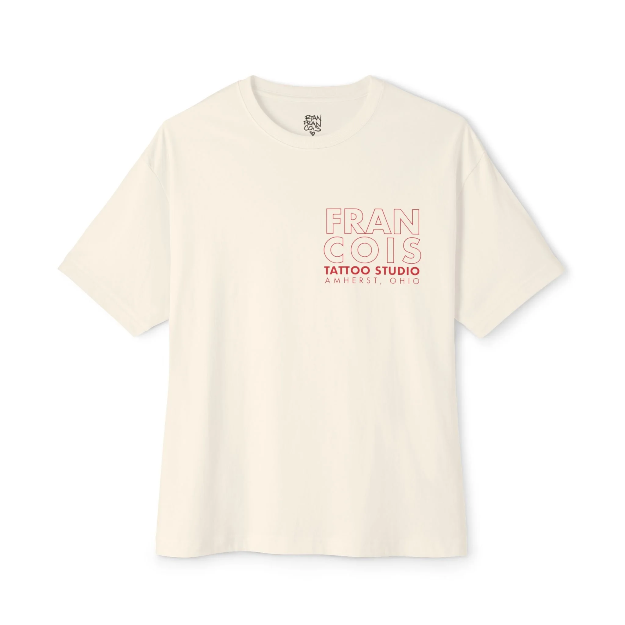 A clean, relaxed boxy tee made to feel like a favorite from the first wear. The medium-weight airlume cotton offers smooth, soft hand-feel while the dropped shoulders and relaxed cut create a laid-back silhouette that layers or stands alone. Subtle, minimalist artwork in soft red ink—small left-chest logo and a composed back layout with skull and icon accents—gives this tee an artful, studio-vibe that slips into everyday life: drawing sessions, gallery trips, or late-night shop cleanups. It wears like comfort and reads like intent—quietly creative, a little edgy, and built to last with reinforced stitching and a tear-away label for an uninterrupted fit.