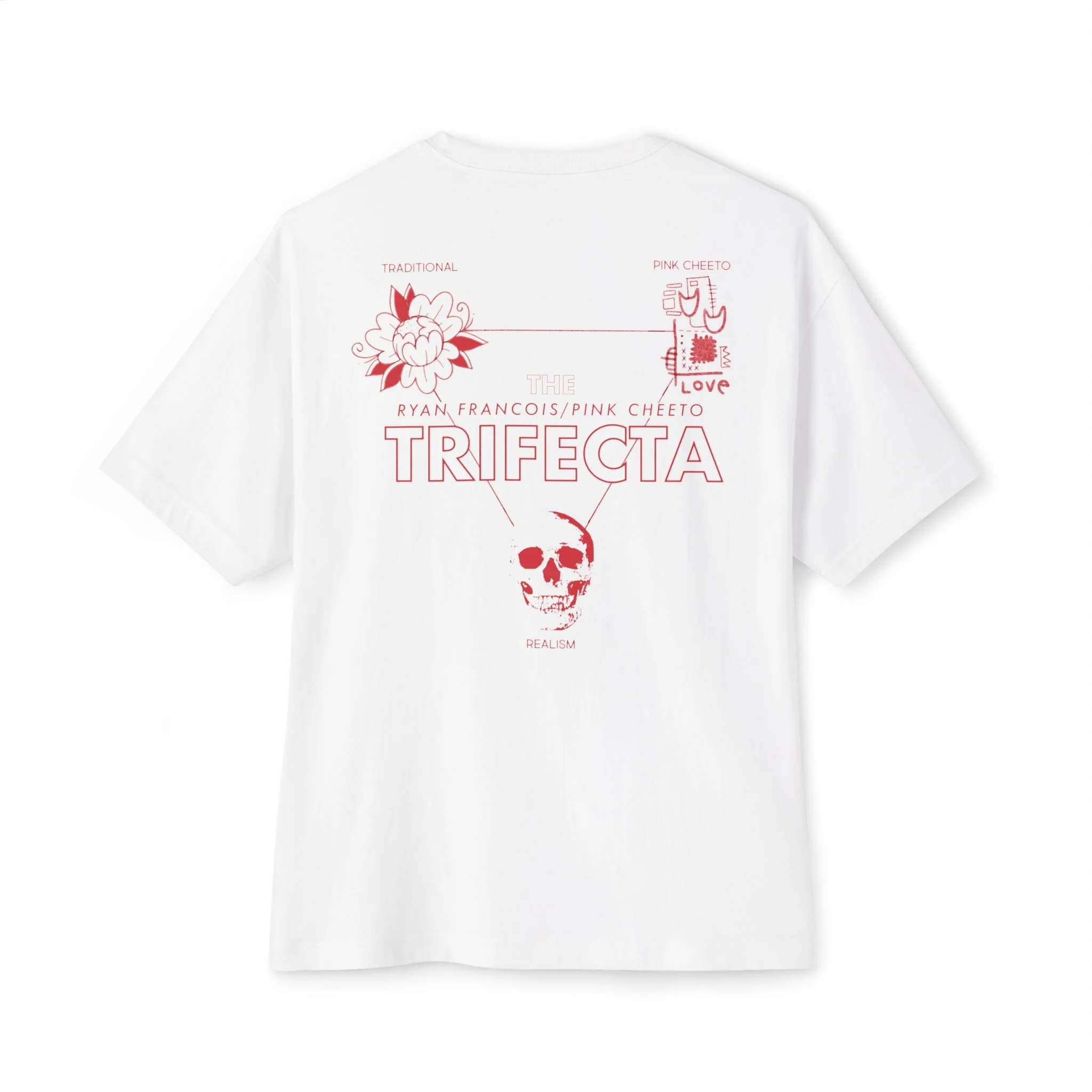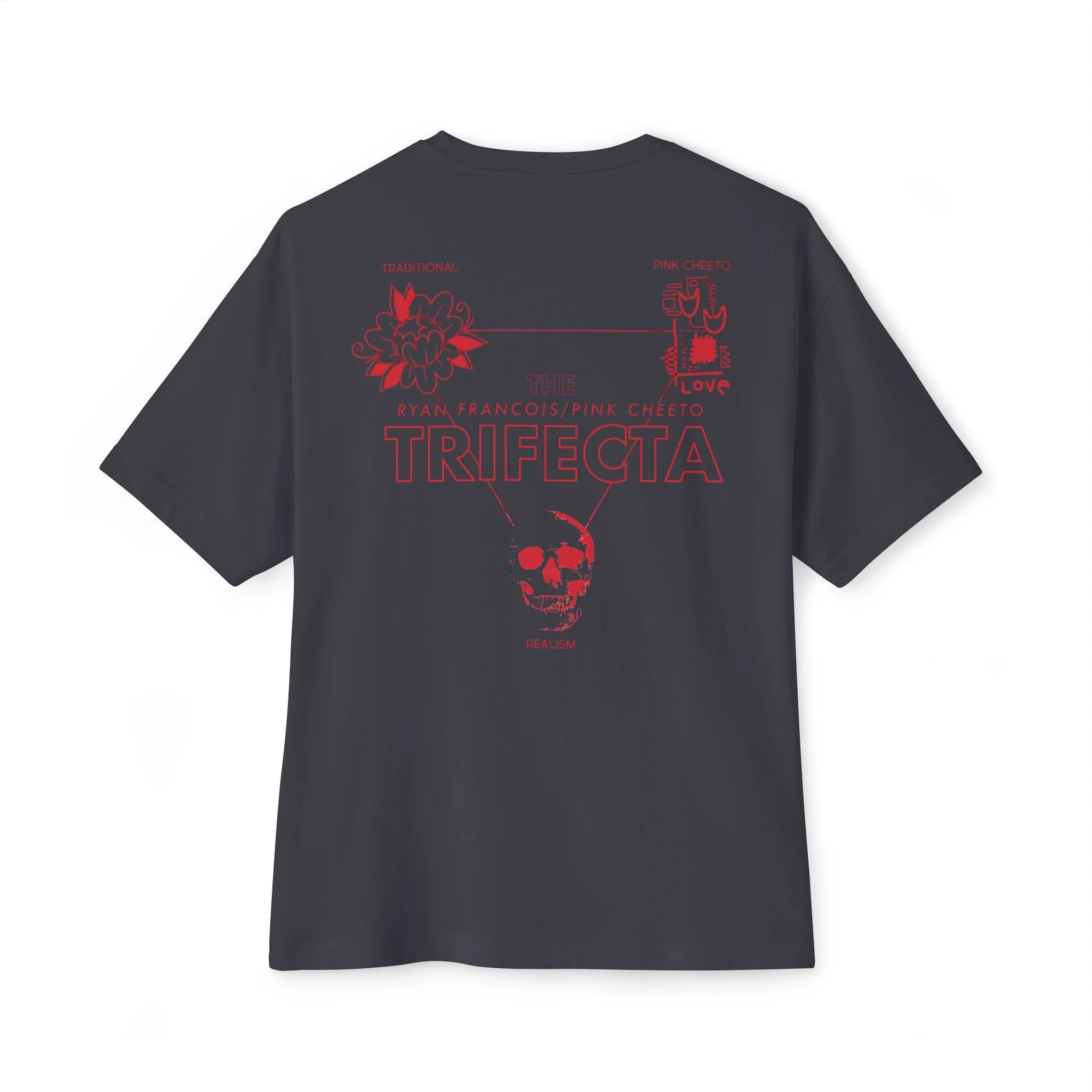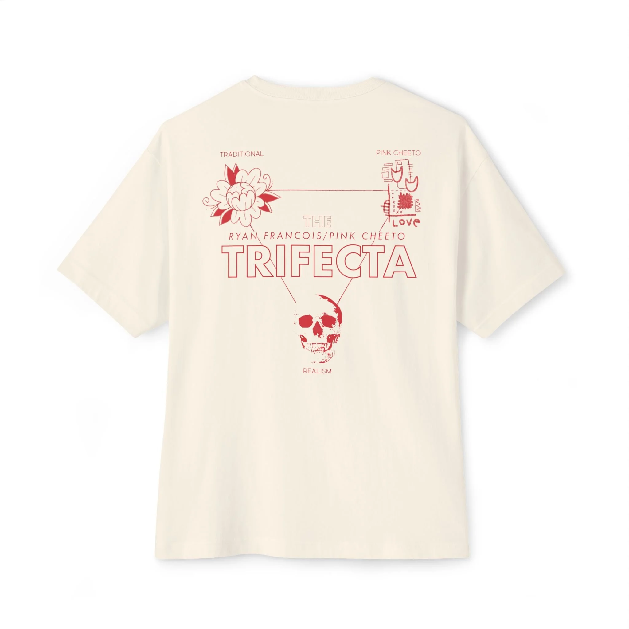 A clean, relaxed boxy tee made to feel like a favorite from the first wear. The medium-weight airlume cotton offers smooth, soft hand-feel while the dropped shoulders and relaxed cut create a laid-back silhouette that layers or stands alone. Subtle, minimalist artwork in soft red ink—small left-chest logo and a composed back layout with skull and icon accents—gives this tee an artful, studio-vibe that slips into everyday life: drawing sessions, gallery trips, or late-night shop cleanups. It wears like comfort and reads like intent—quietly creative, a little edgy, and built to last with reinforced stitching and a tear-away label for an uninterrupted fit.