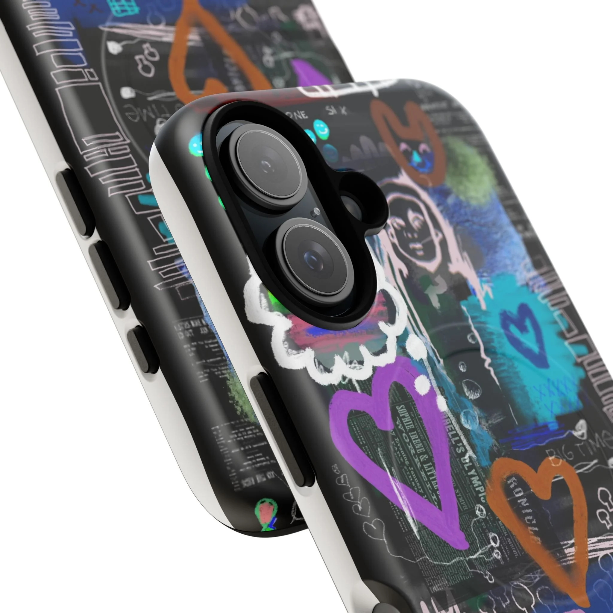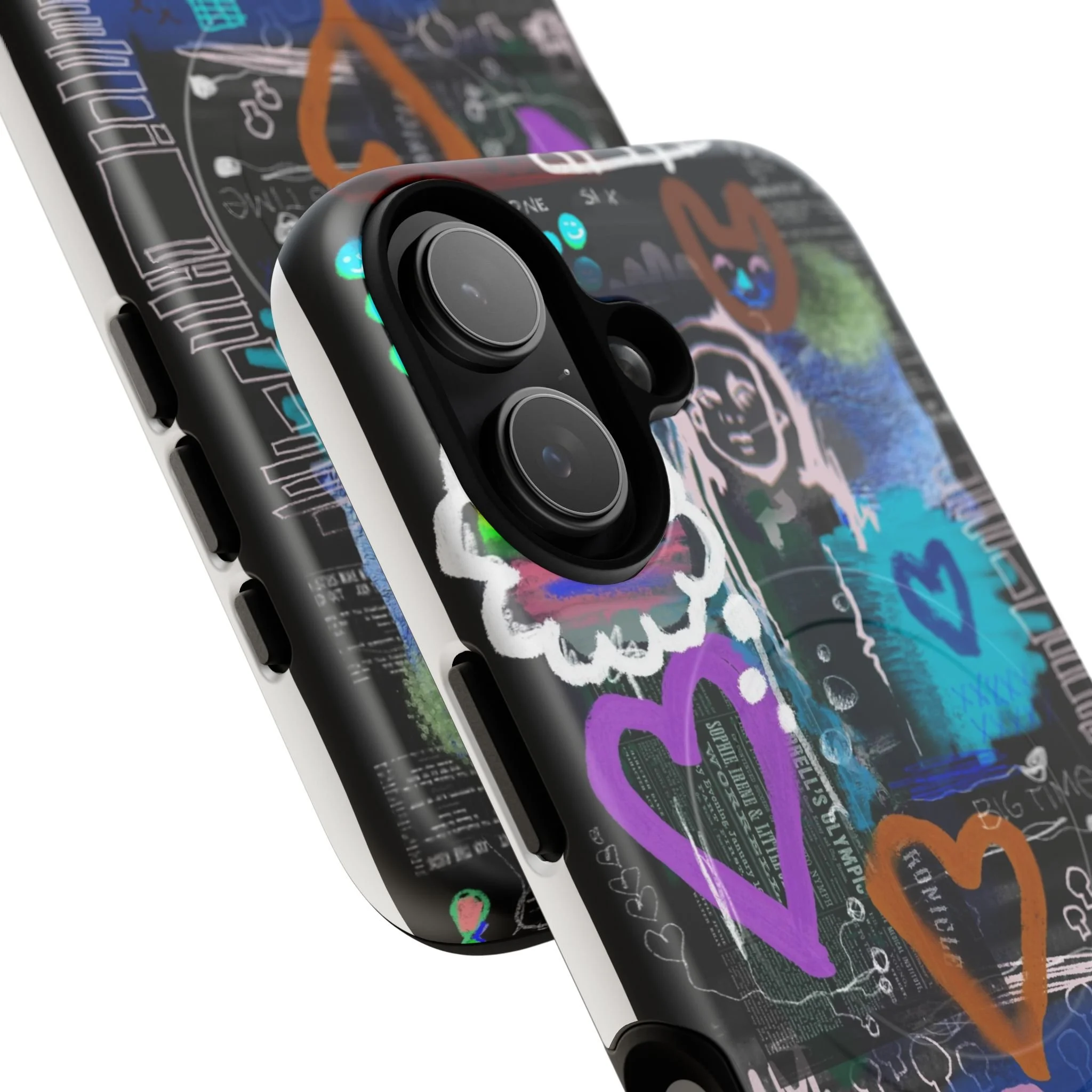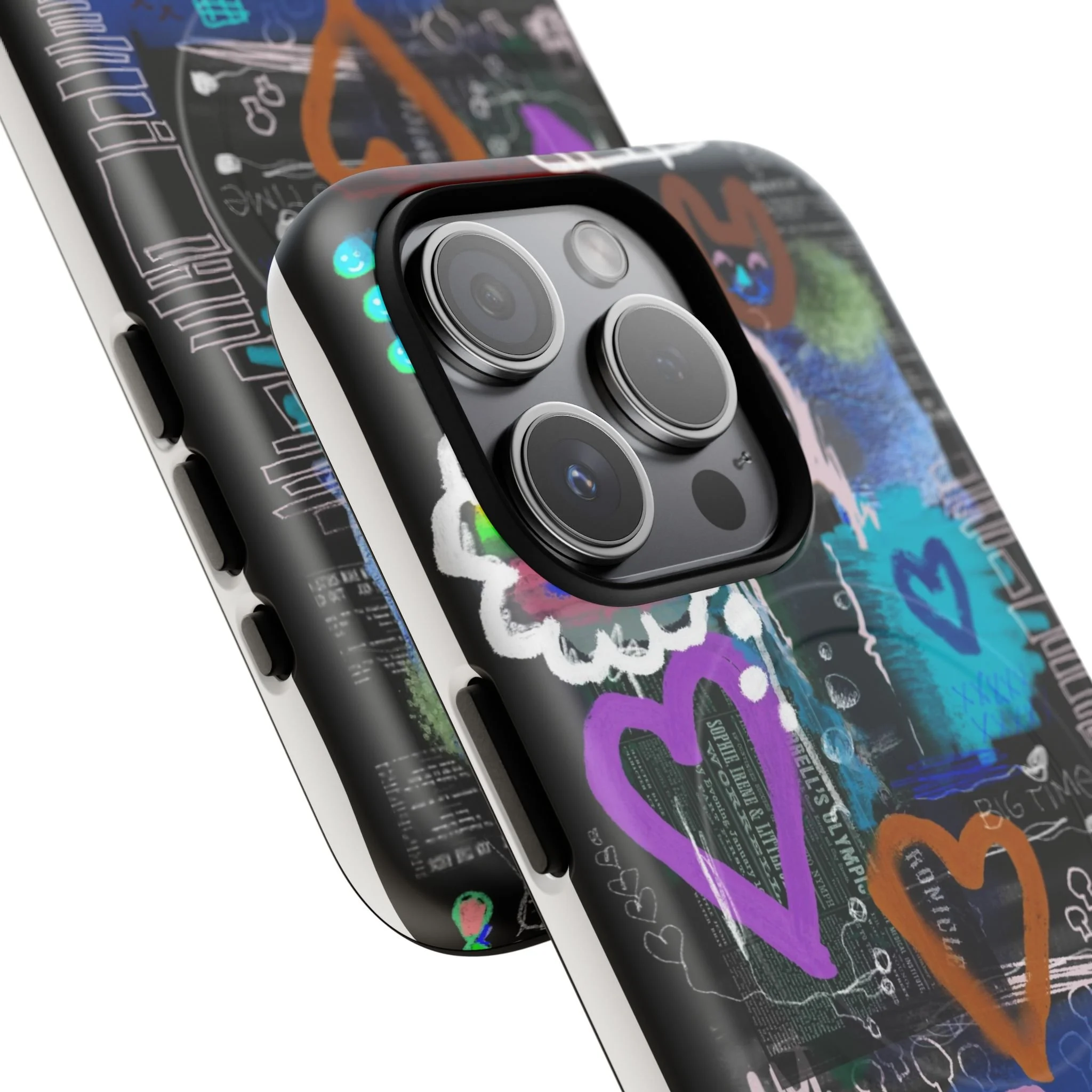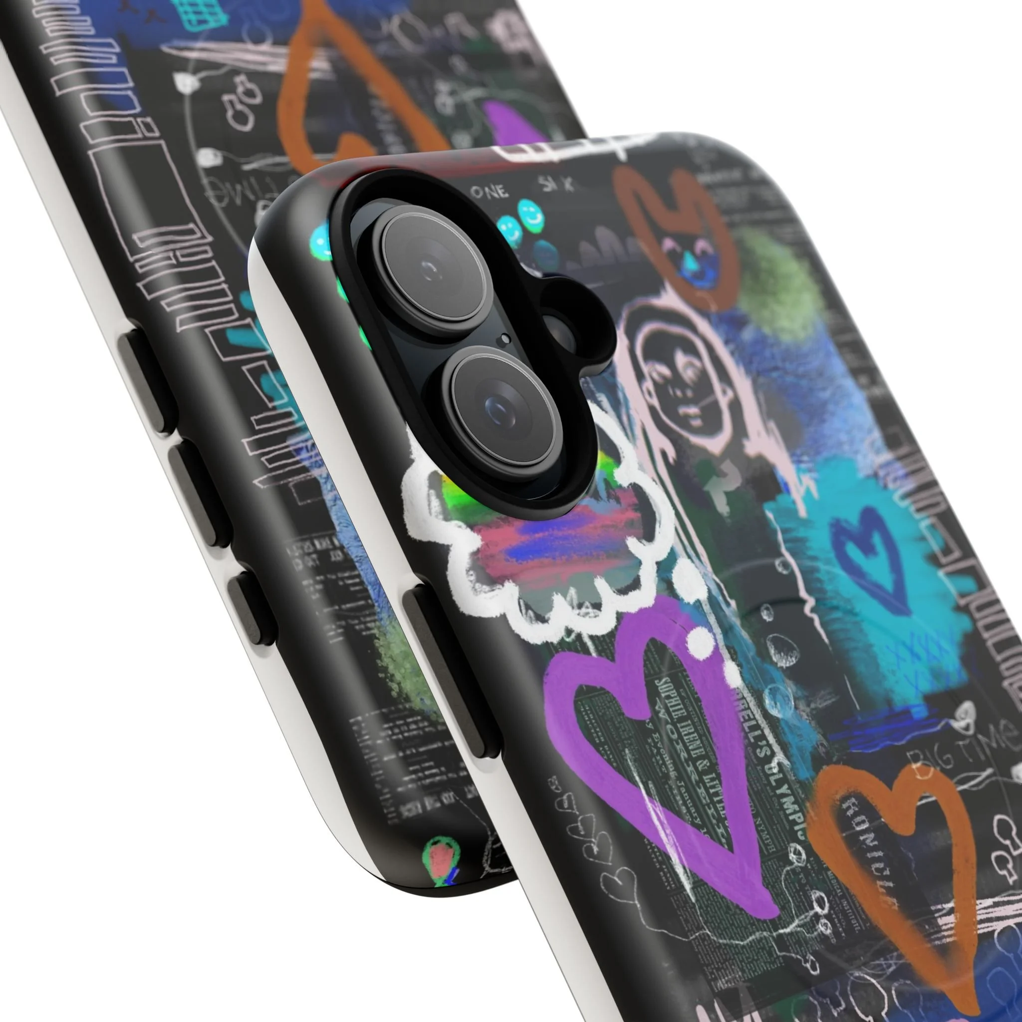 Pink Cheeto Magnetic Tough Phone Case — Colorful Graffiti Hearts Design