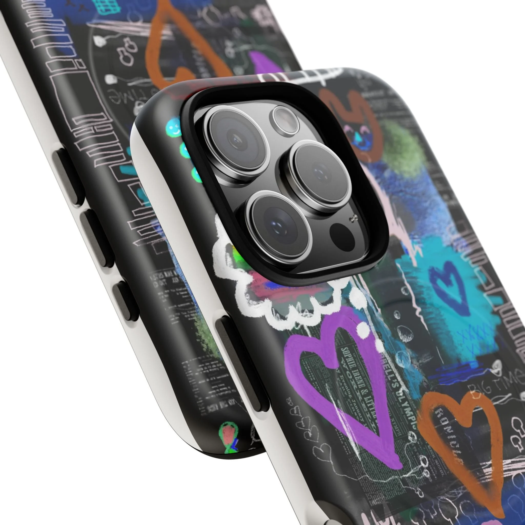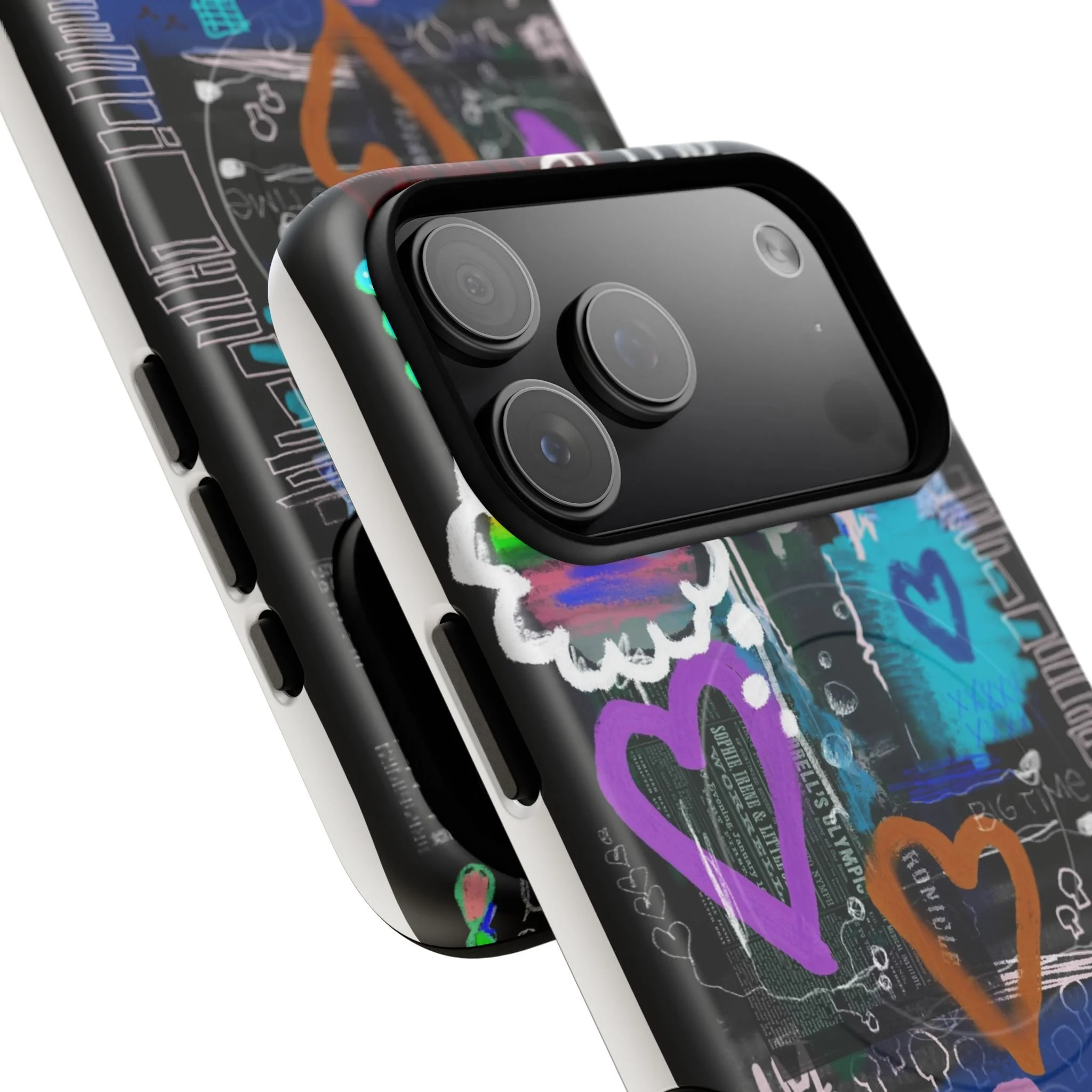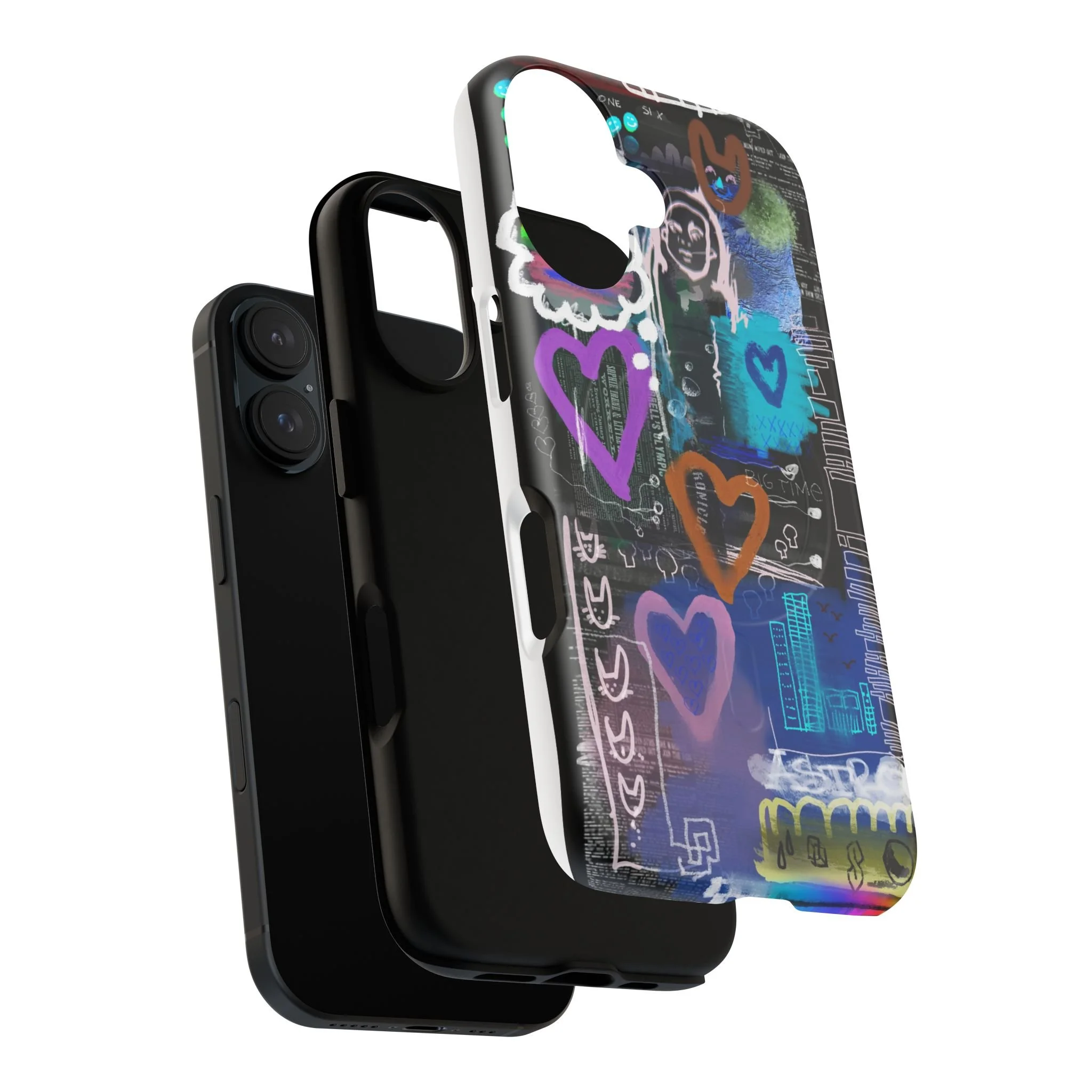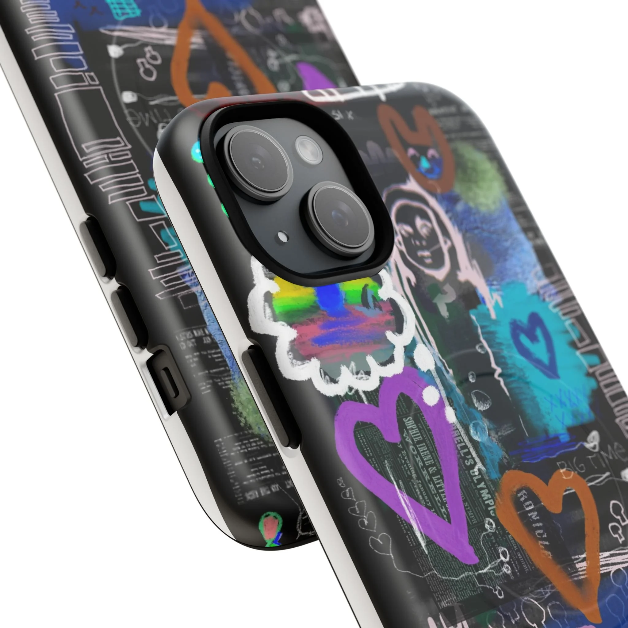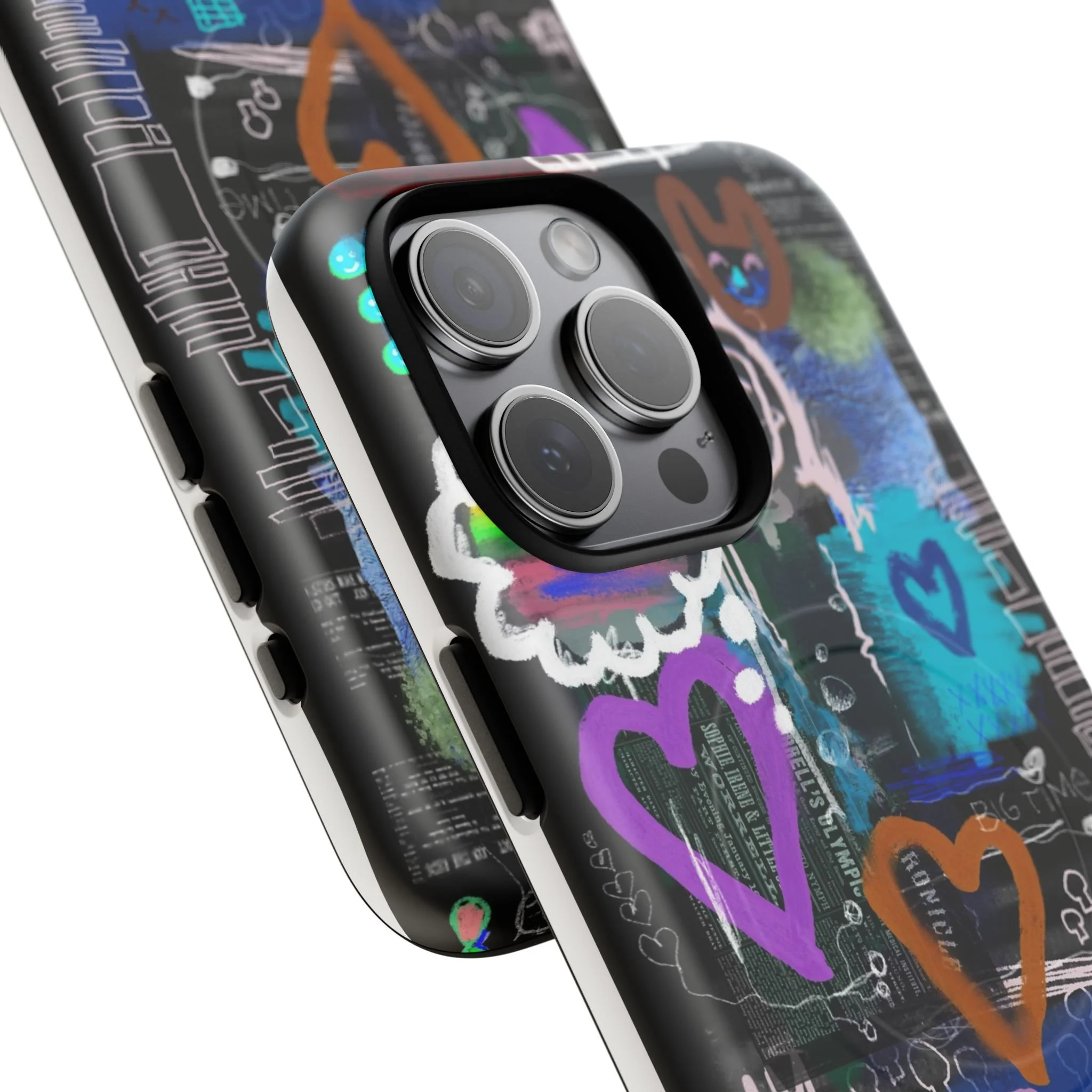 Pink Cheeto Magnetic Tough Phone Case — Colorful Graffiti Hearts Design