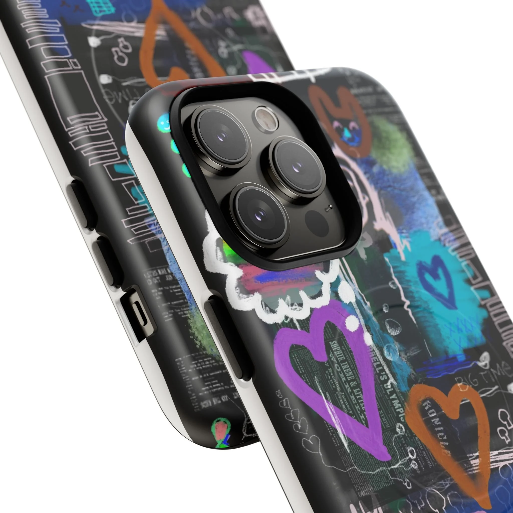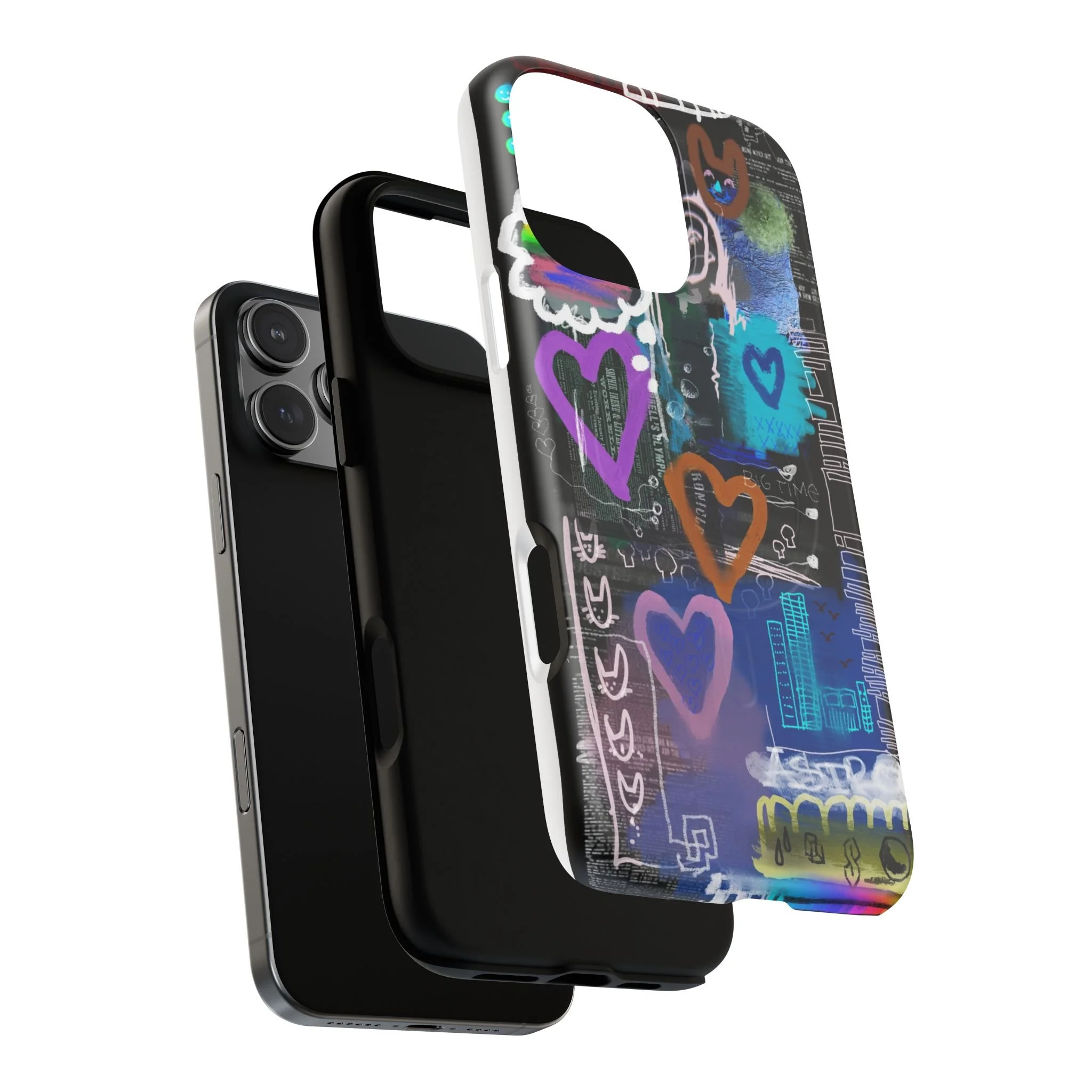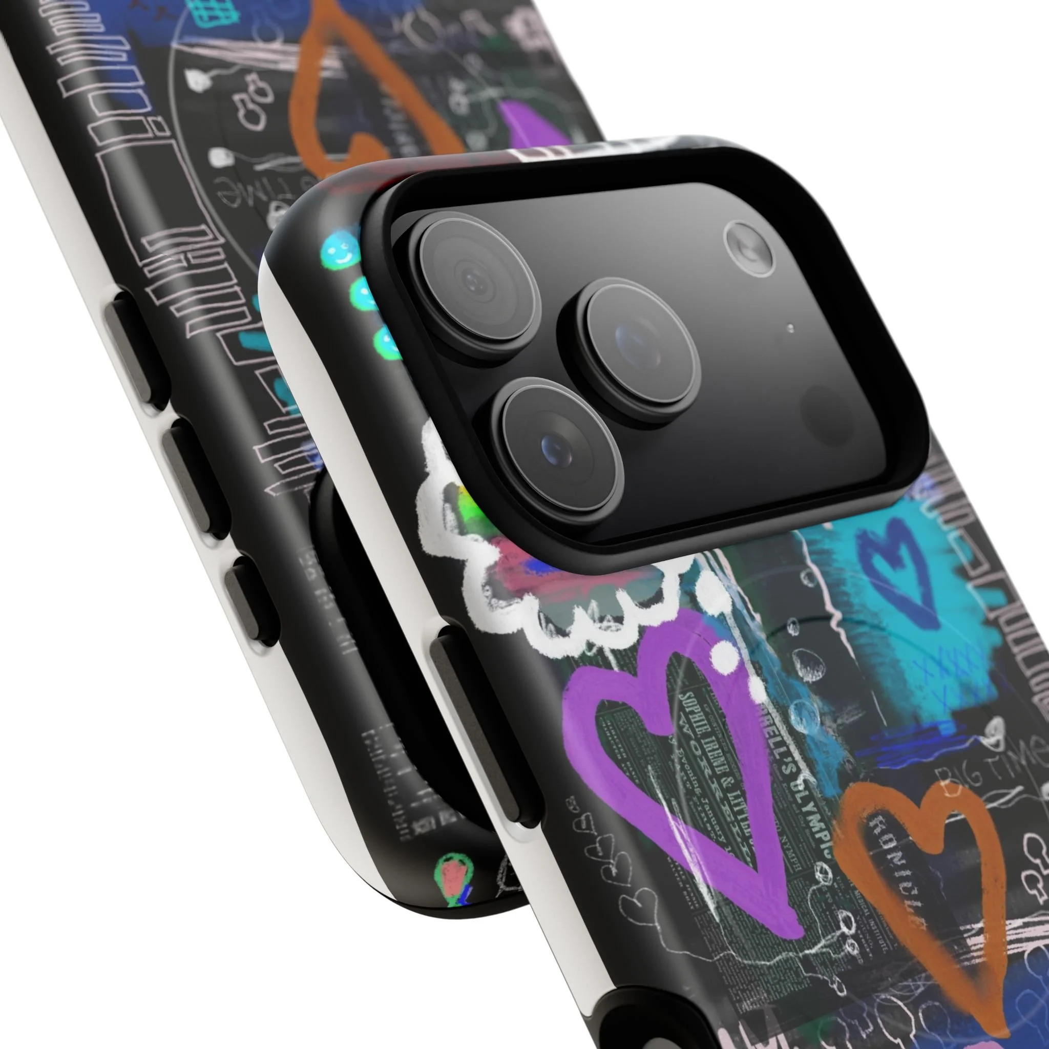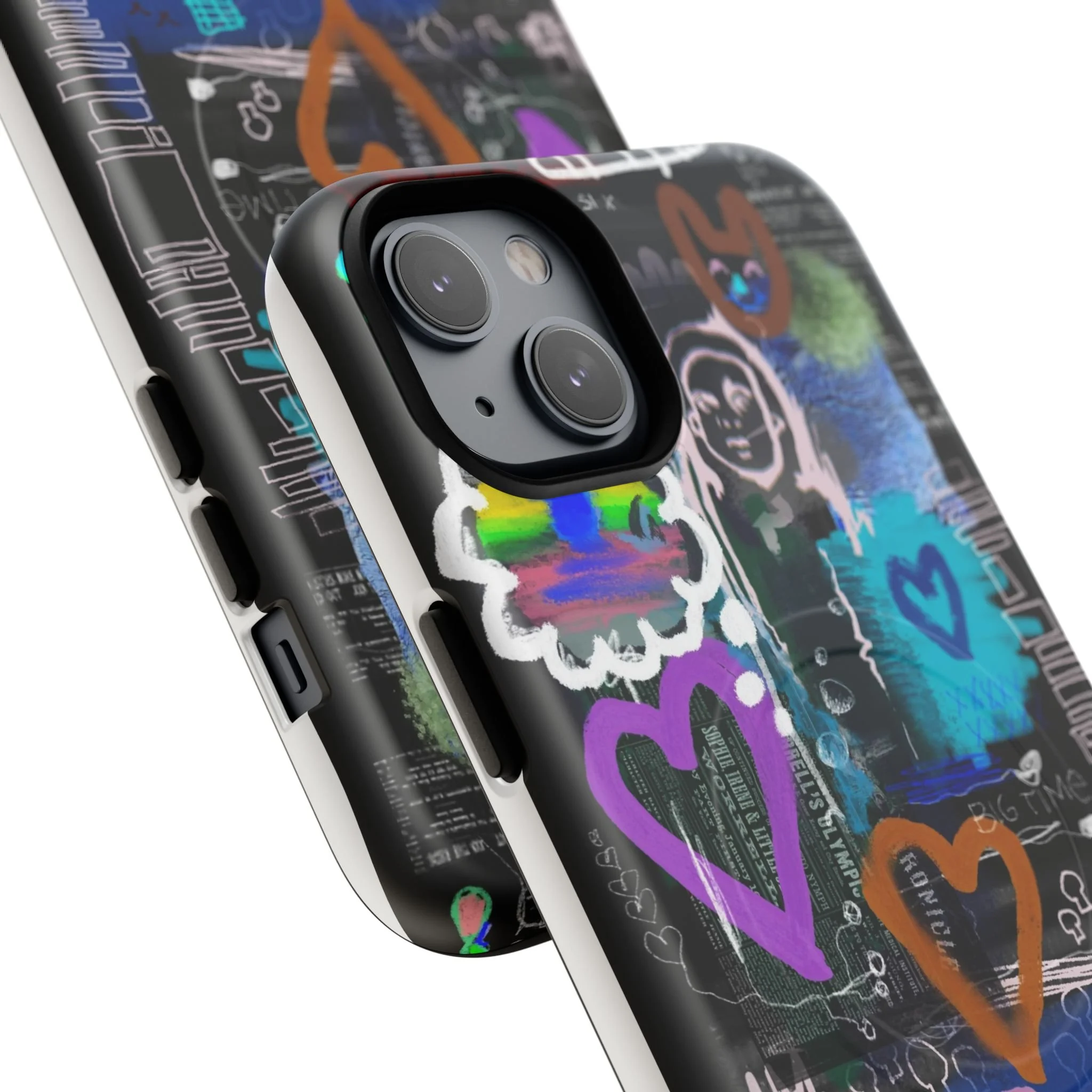 Pink Cheeto Magnetic Tough Phone Case — Colorful Graffiti Hearts Design