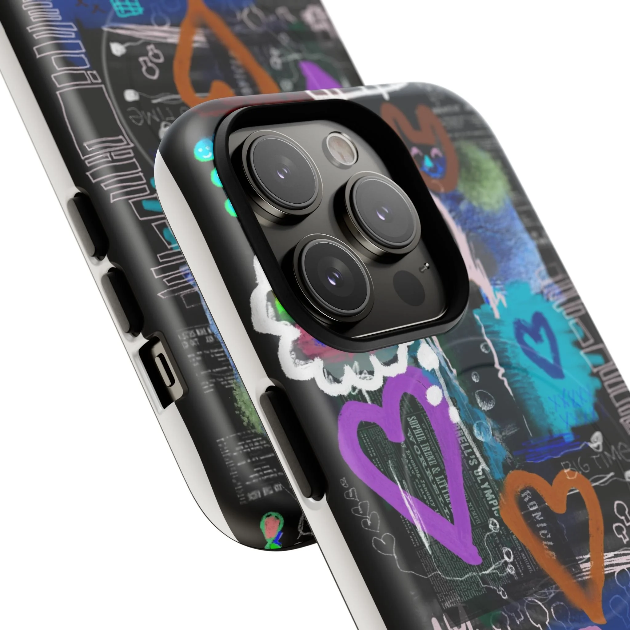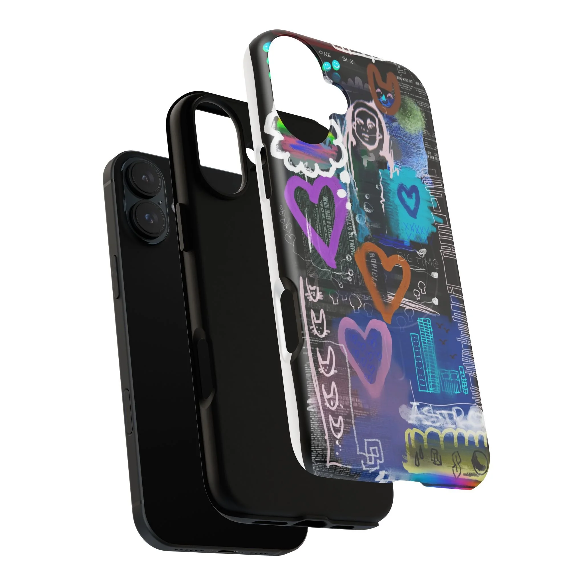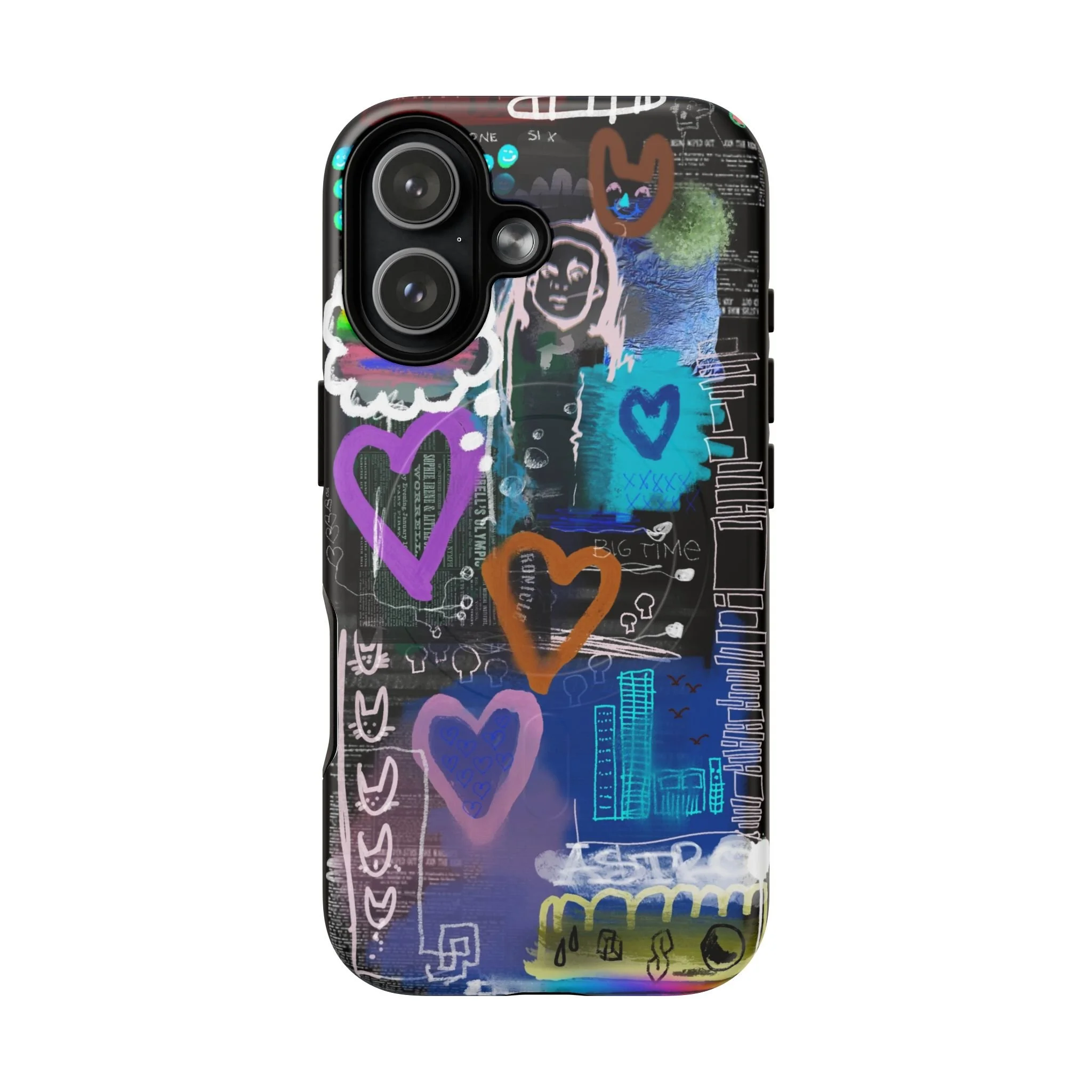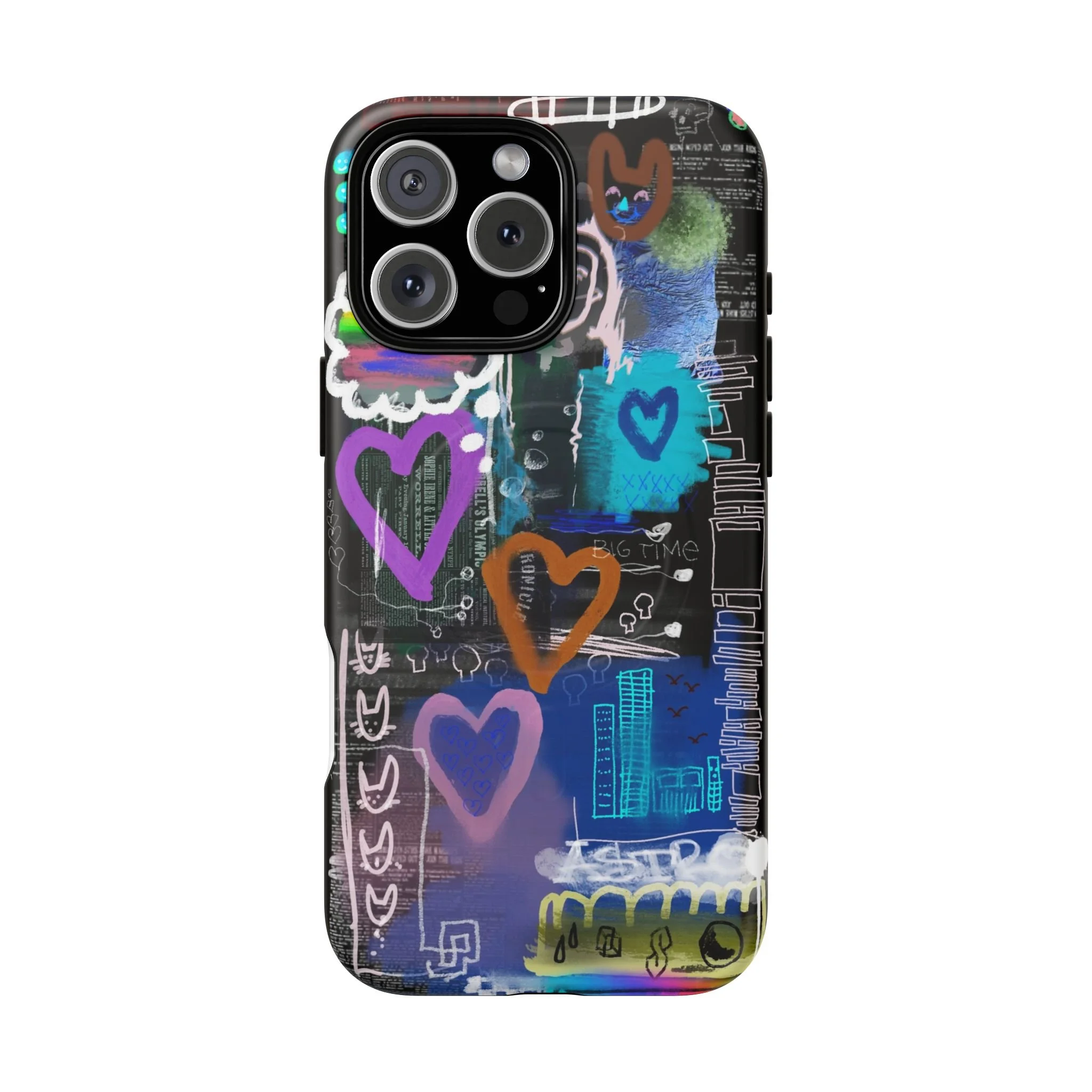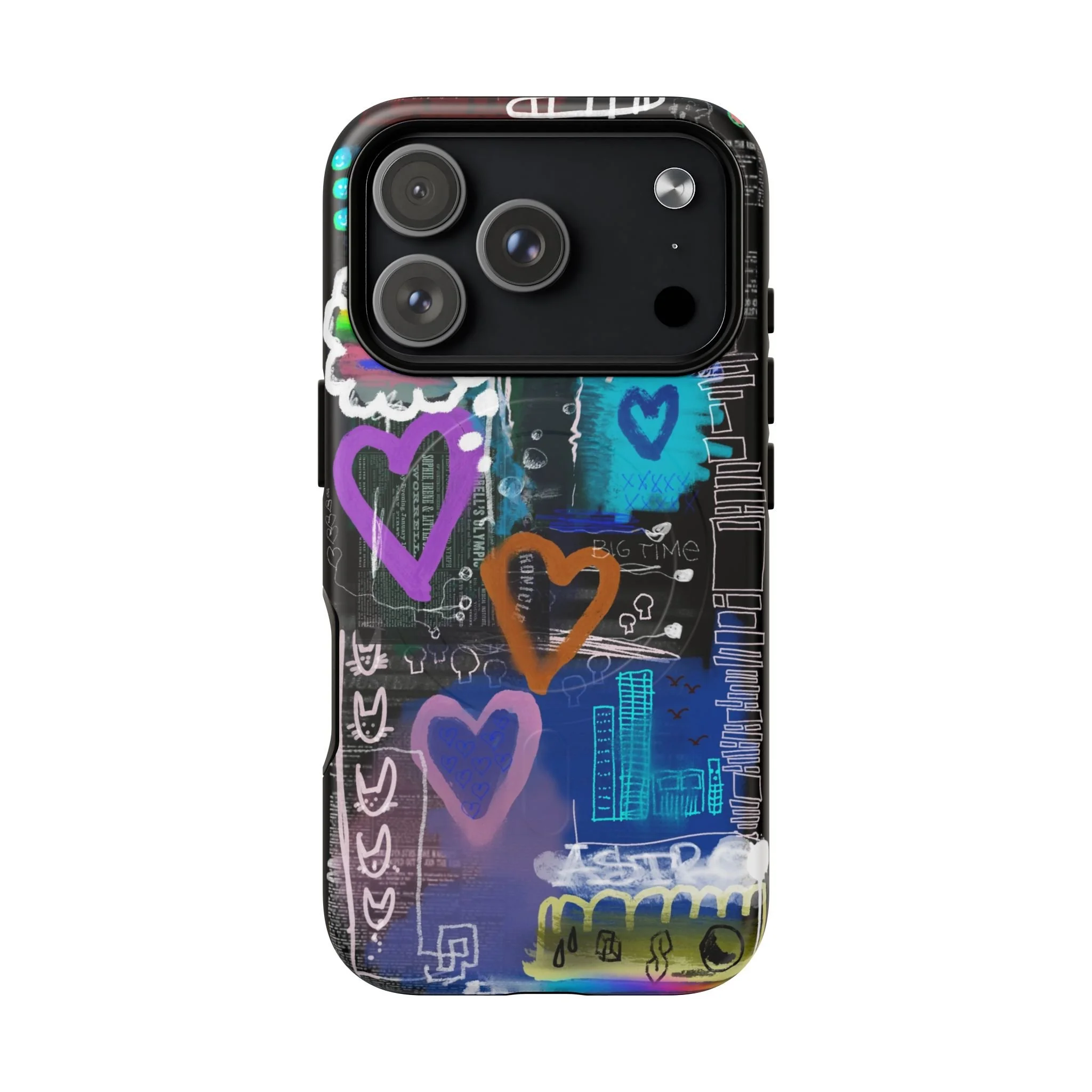 Pink Cheeto Magnetic Tough Phone Case — Colorful Graffiti Hearts Design