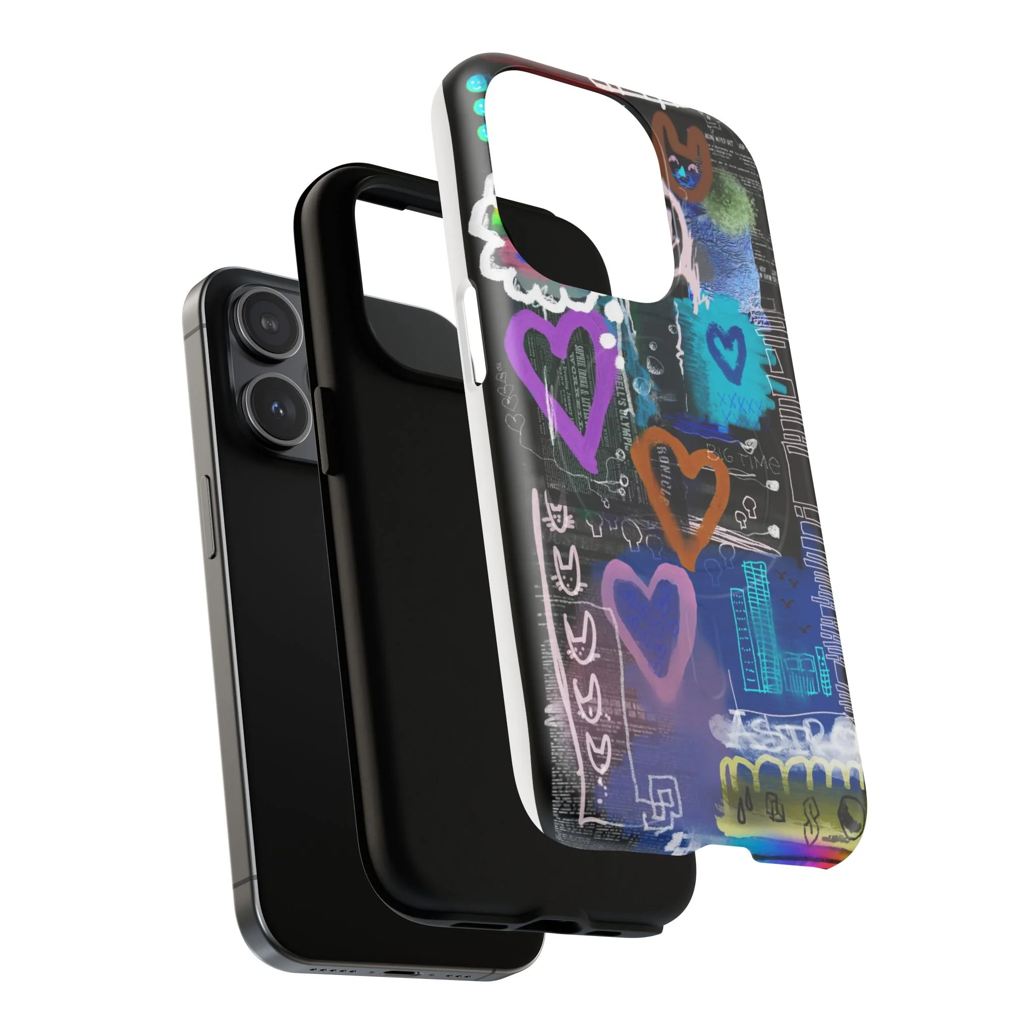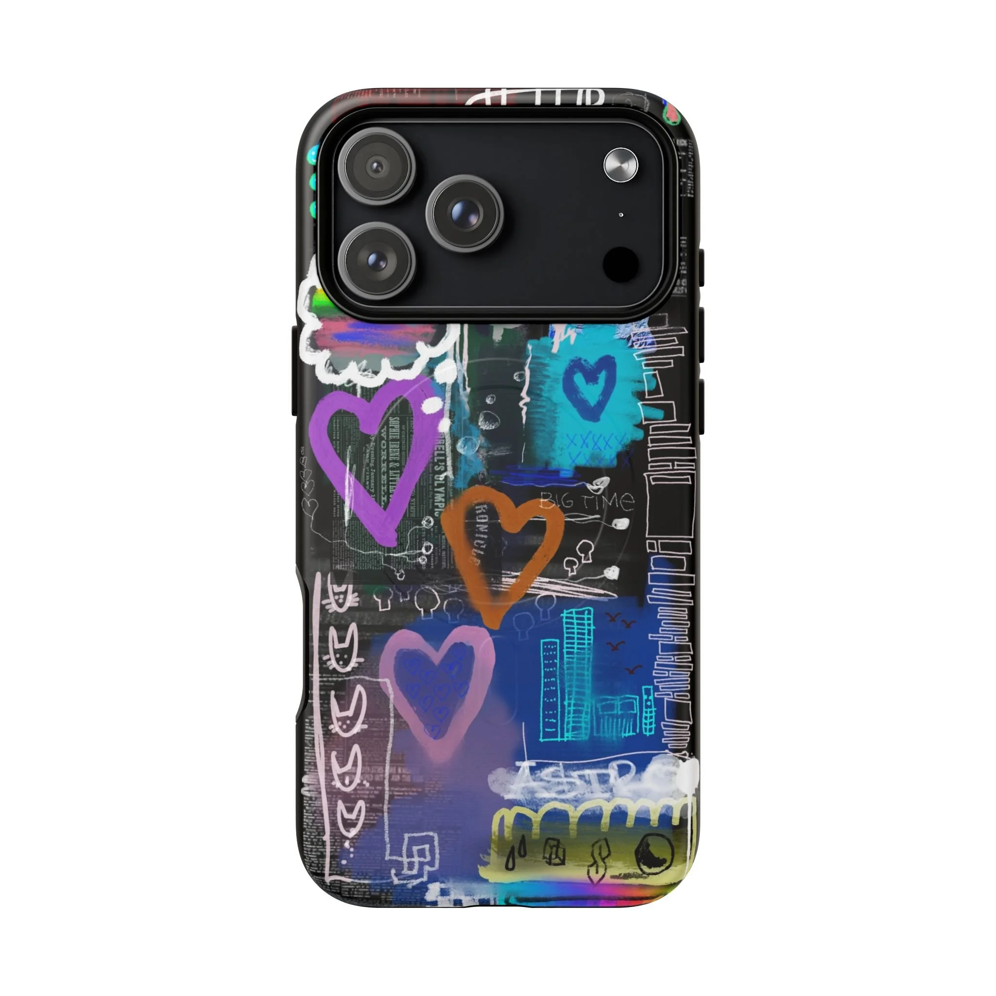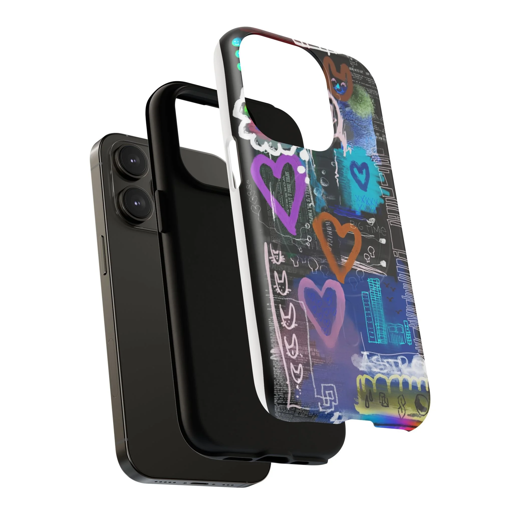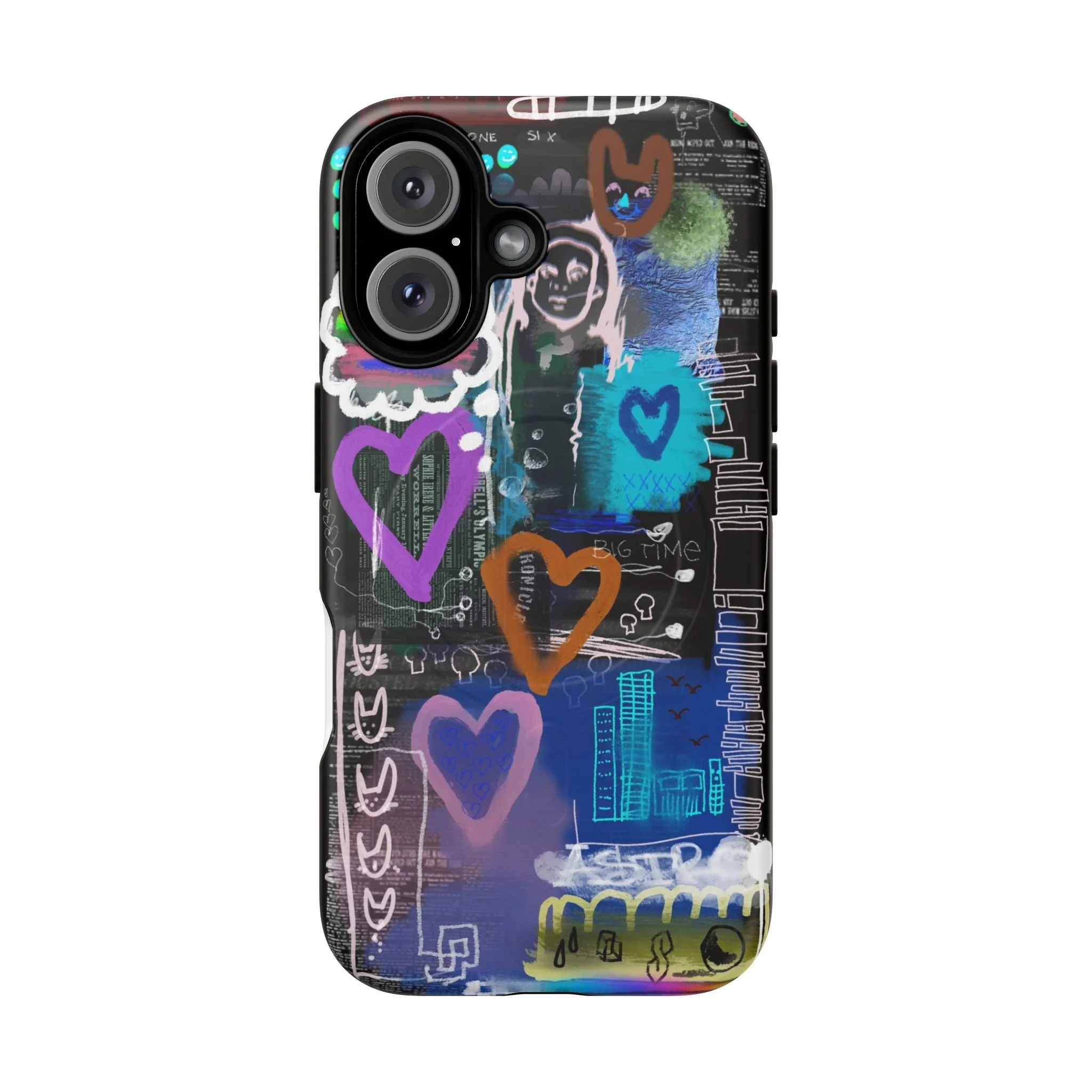 Pink Cheeto Magnetic Tough Phone Case — Colorful Graffiti Hearts Design
