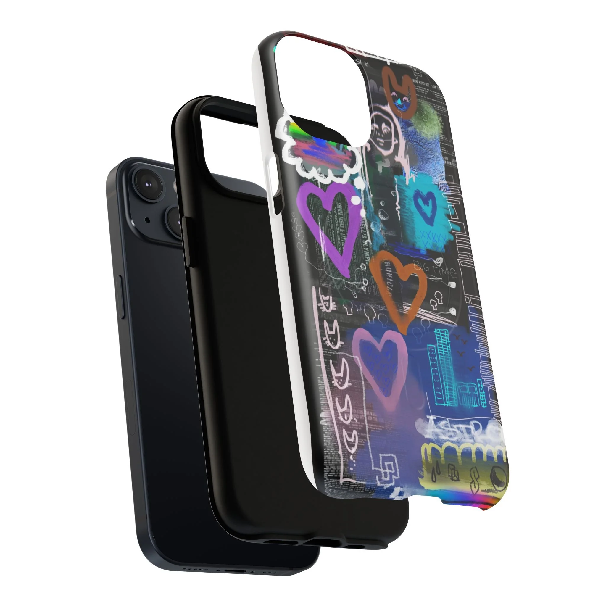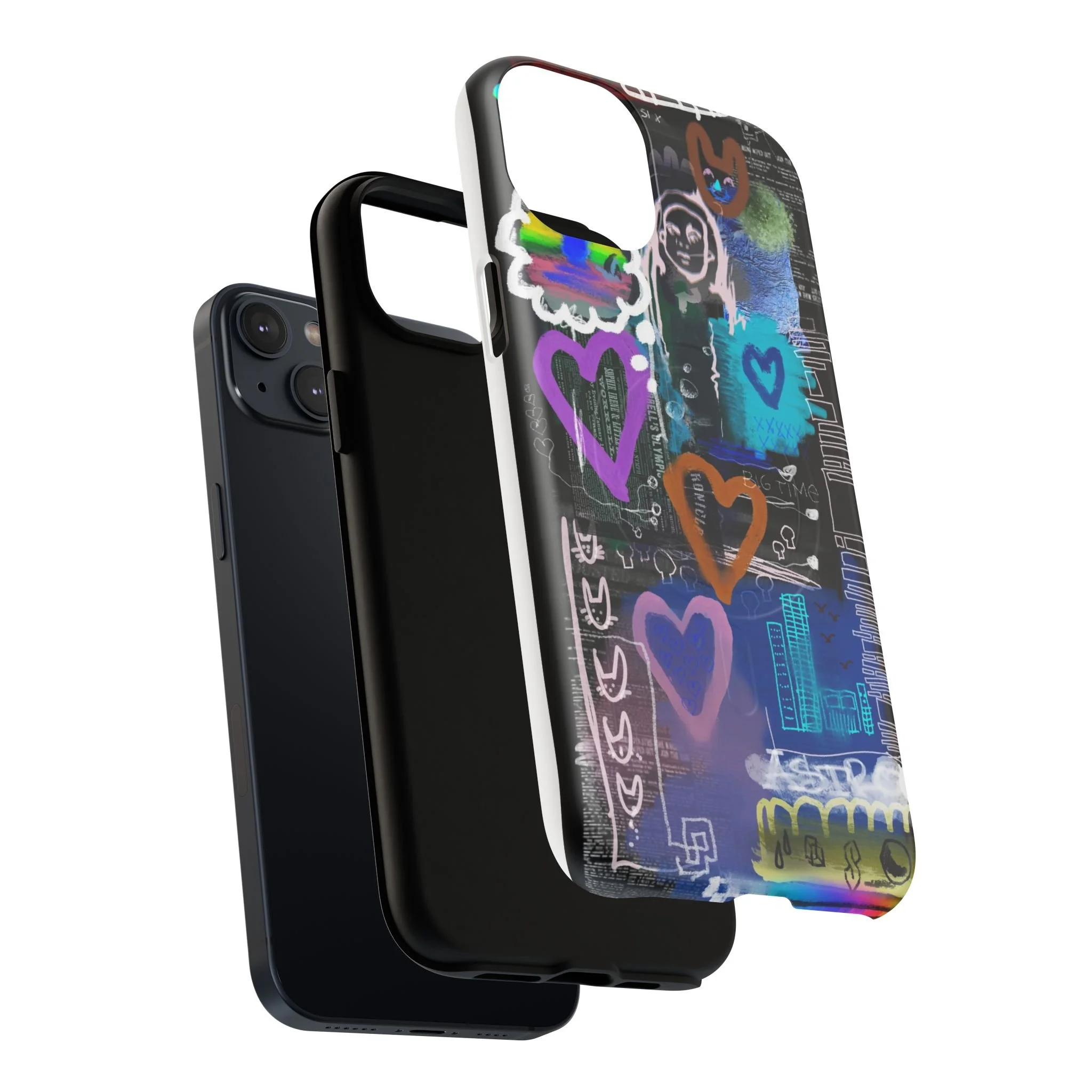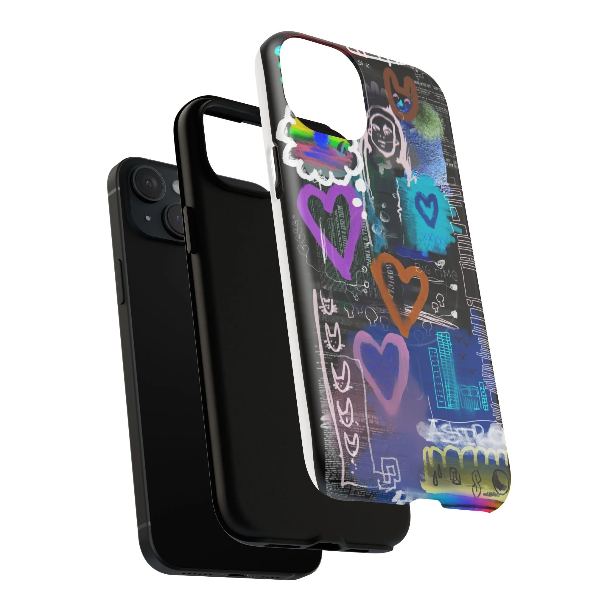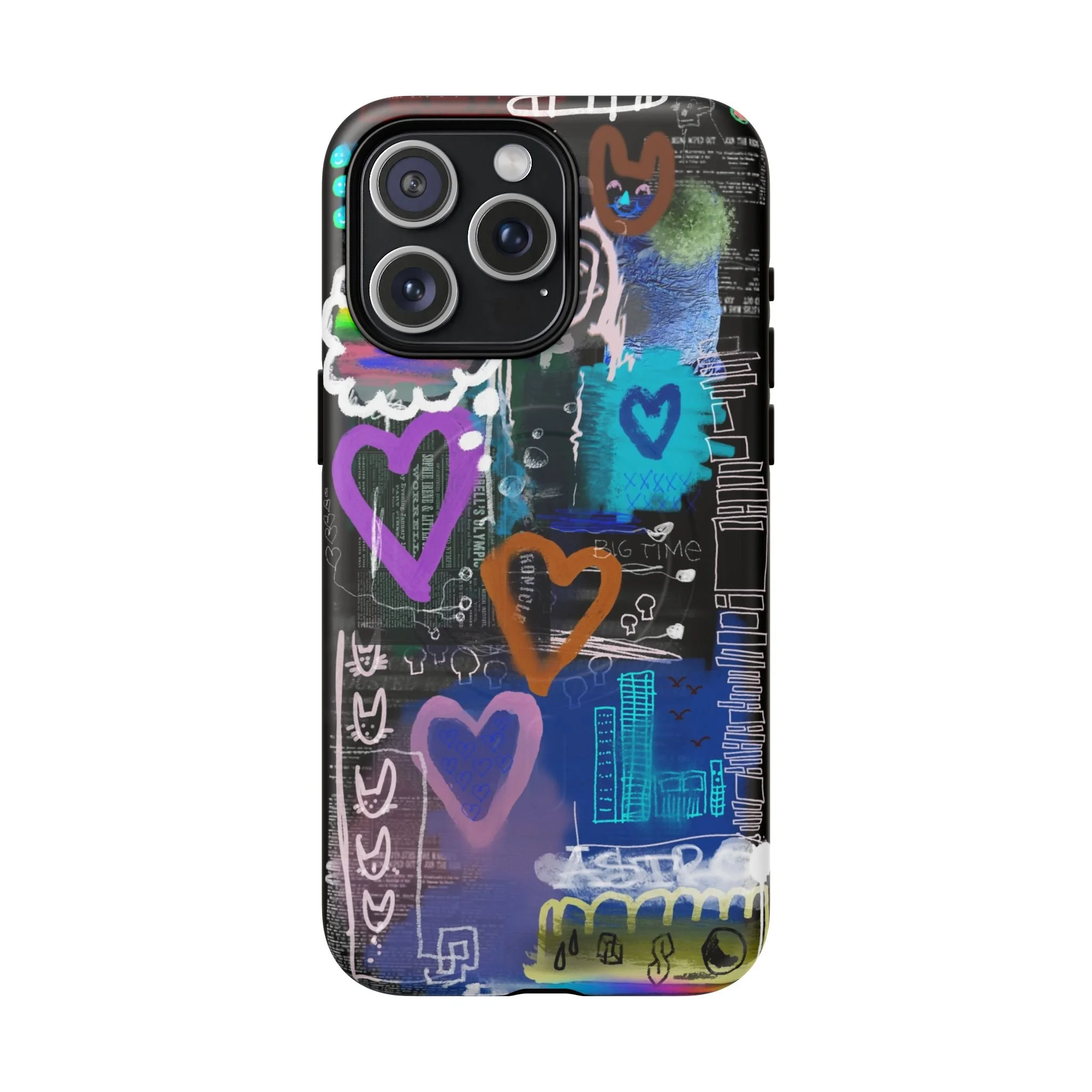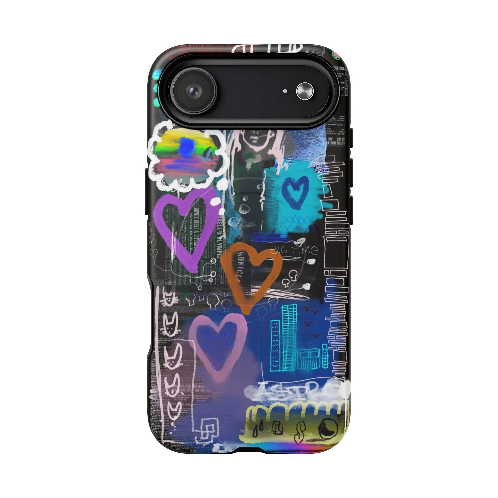 Pink Cheeto Magnetic Tough Phone Case — Colorful Graffiti Hearts Design