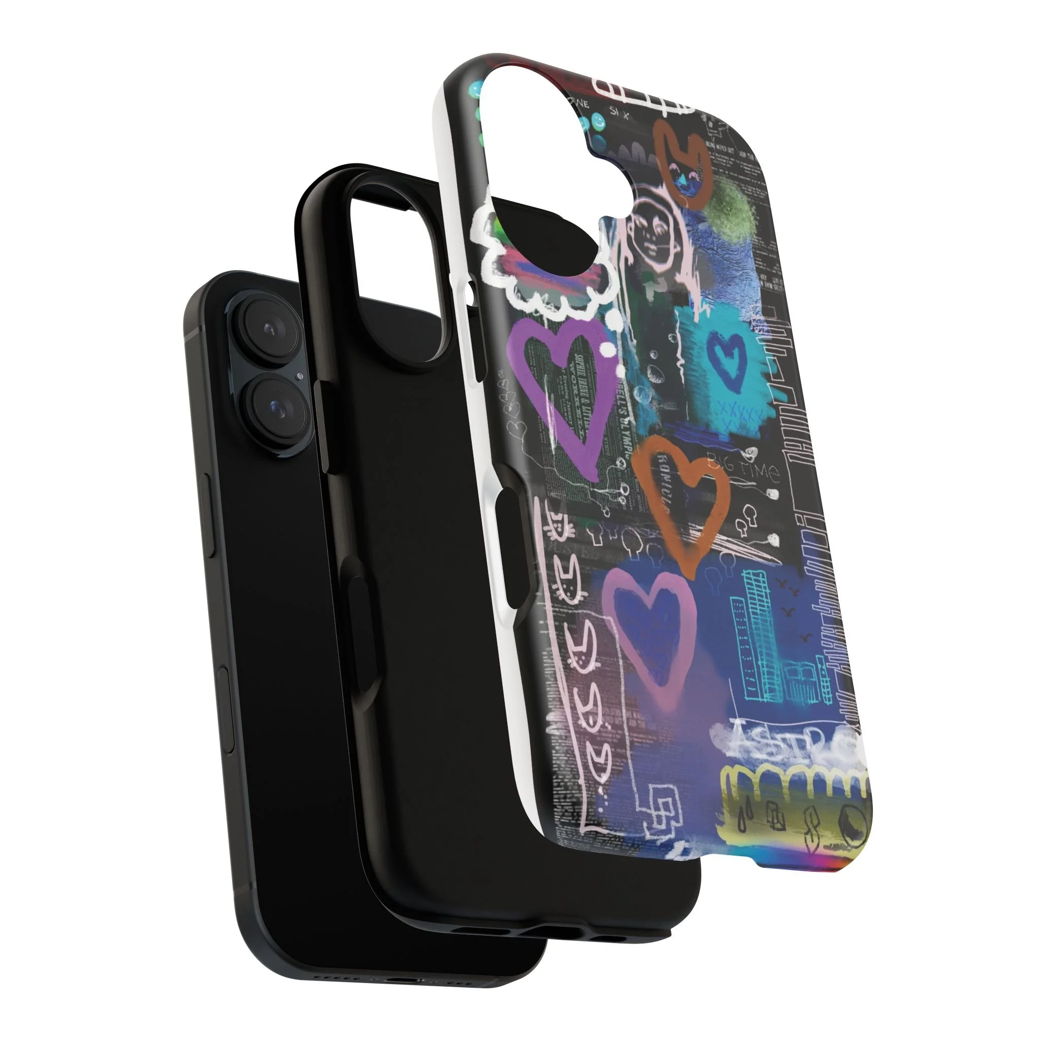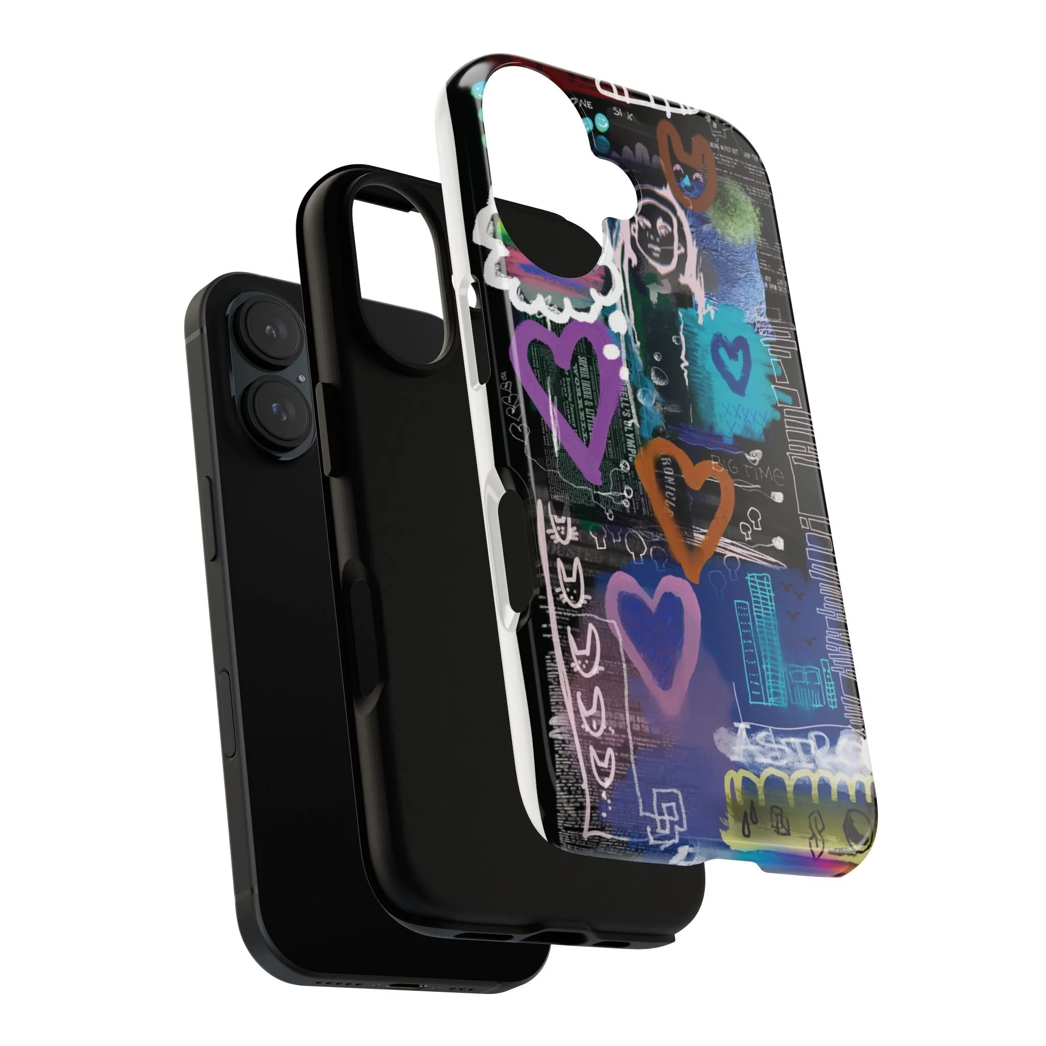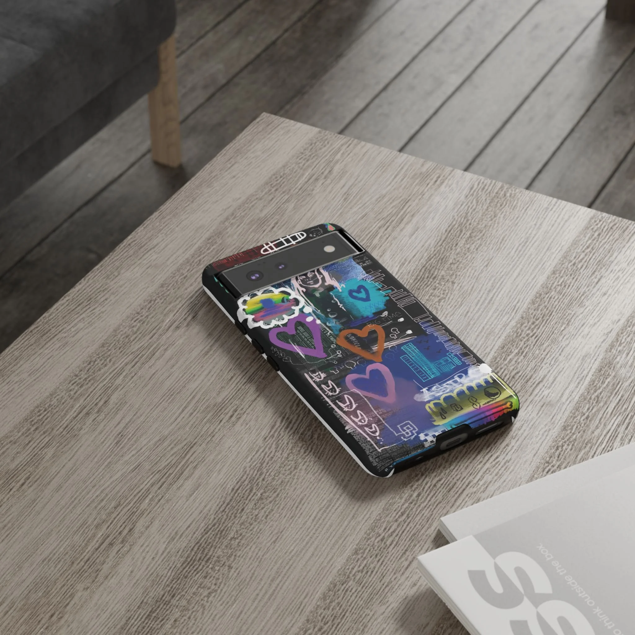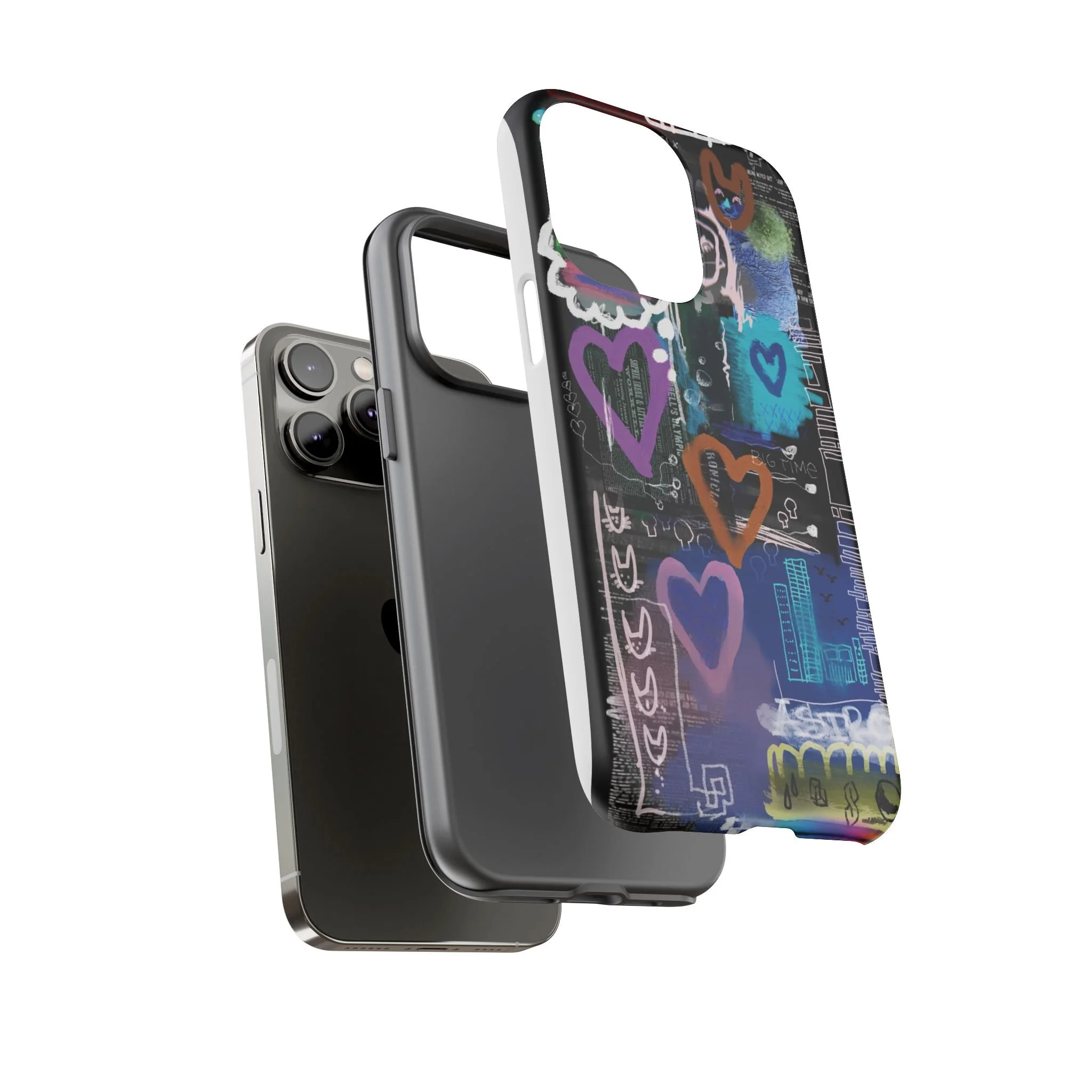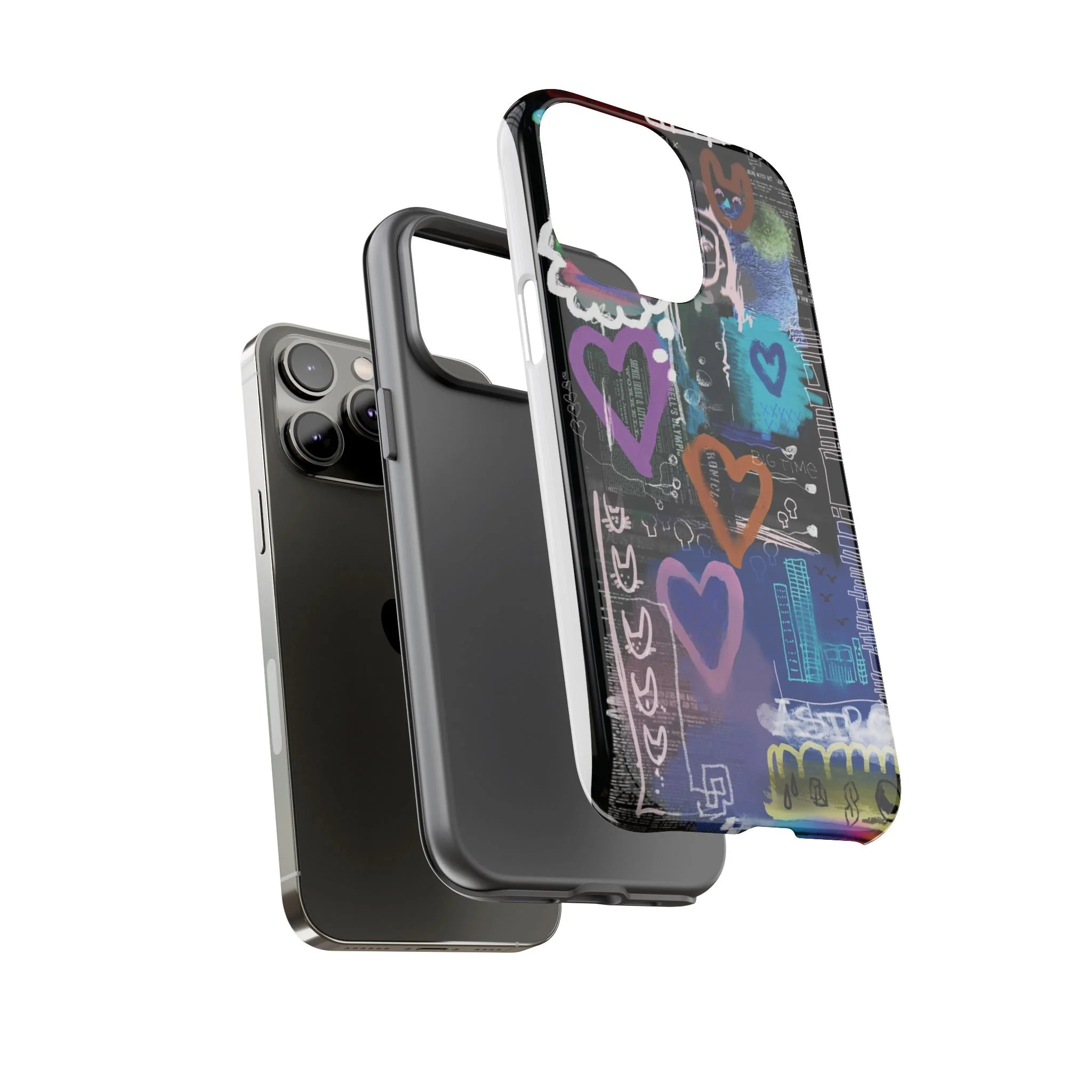 A protective Pink Cheeto phone case wrapped in vibrant street-art energy. Layers of spray-painted hearts, neon scribbles, and clipped architectural lines create a lived-in, gallery-on-the-go look. The glossy/matte finish keeps the colors saturated while the dual-layer polycarbonate shell and TPU silicone liner absorb shocks and guard against drops. Bring a bit of urban attitude to everyday carry — this case reads like a pocket sketchbook, brightening commutes, late-night walks, and coffee-shop sessions with its playful, hand-drawn charm.