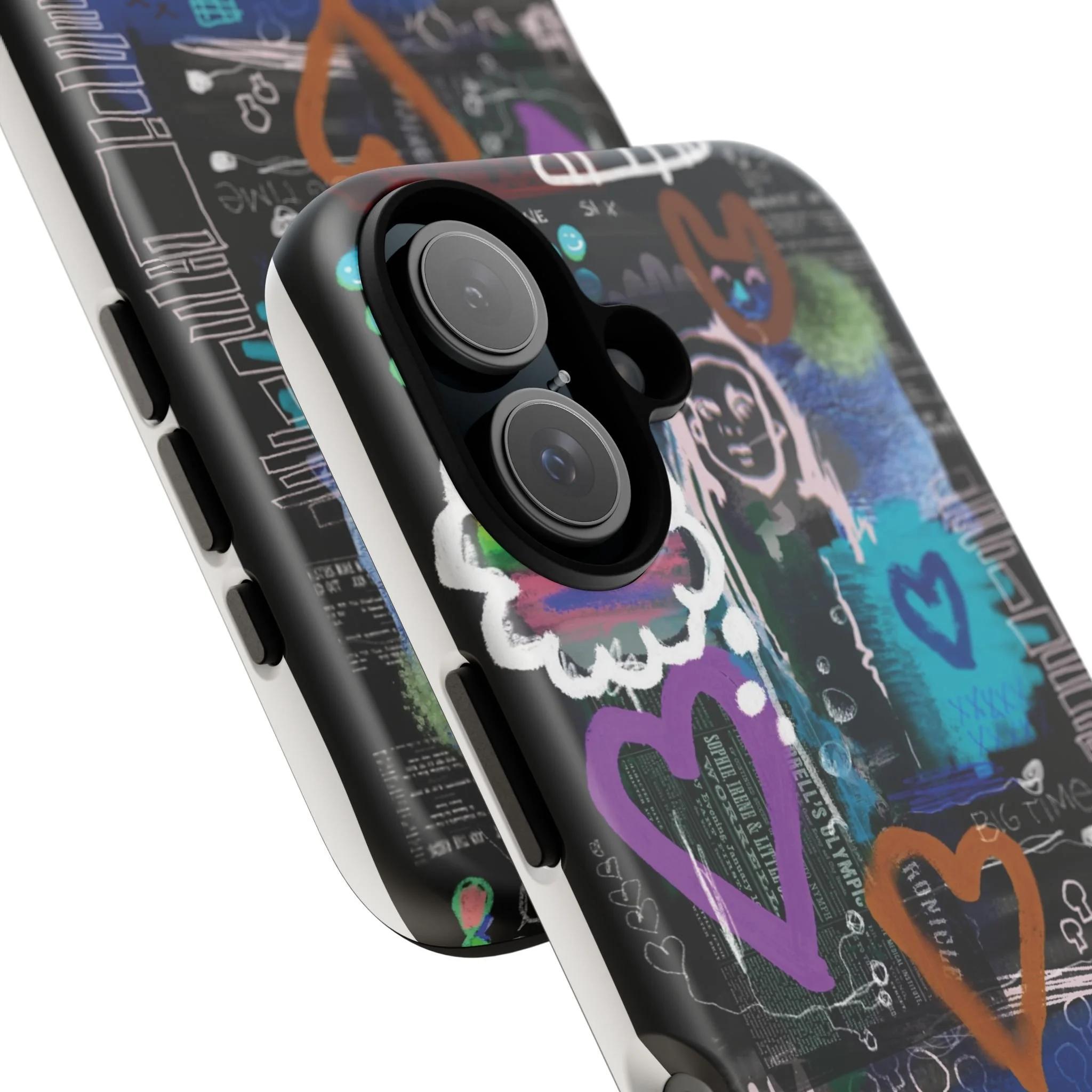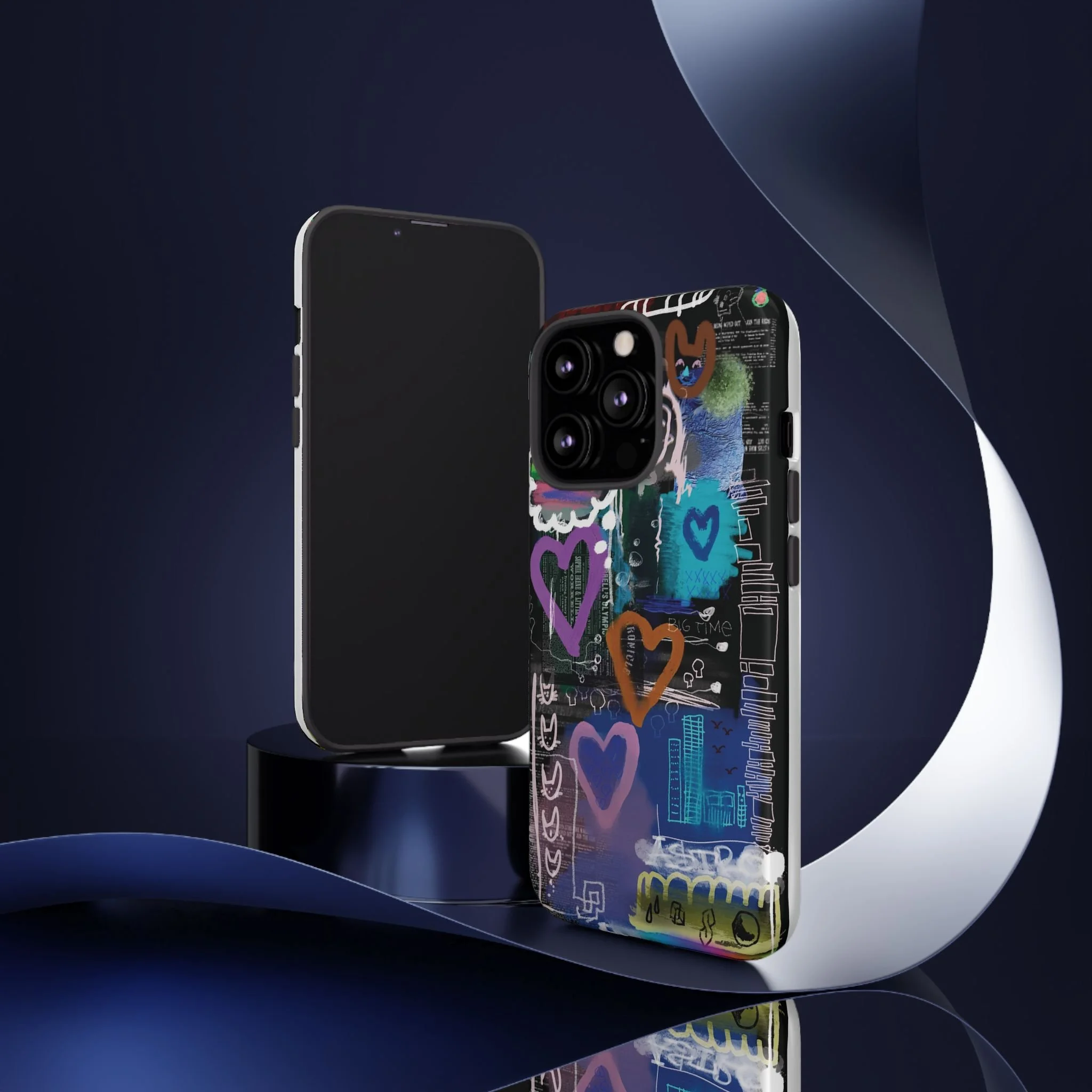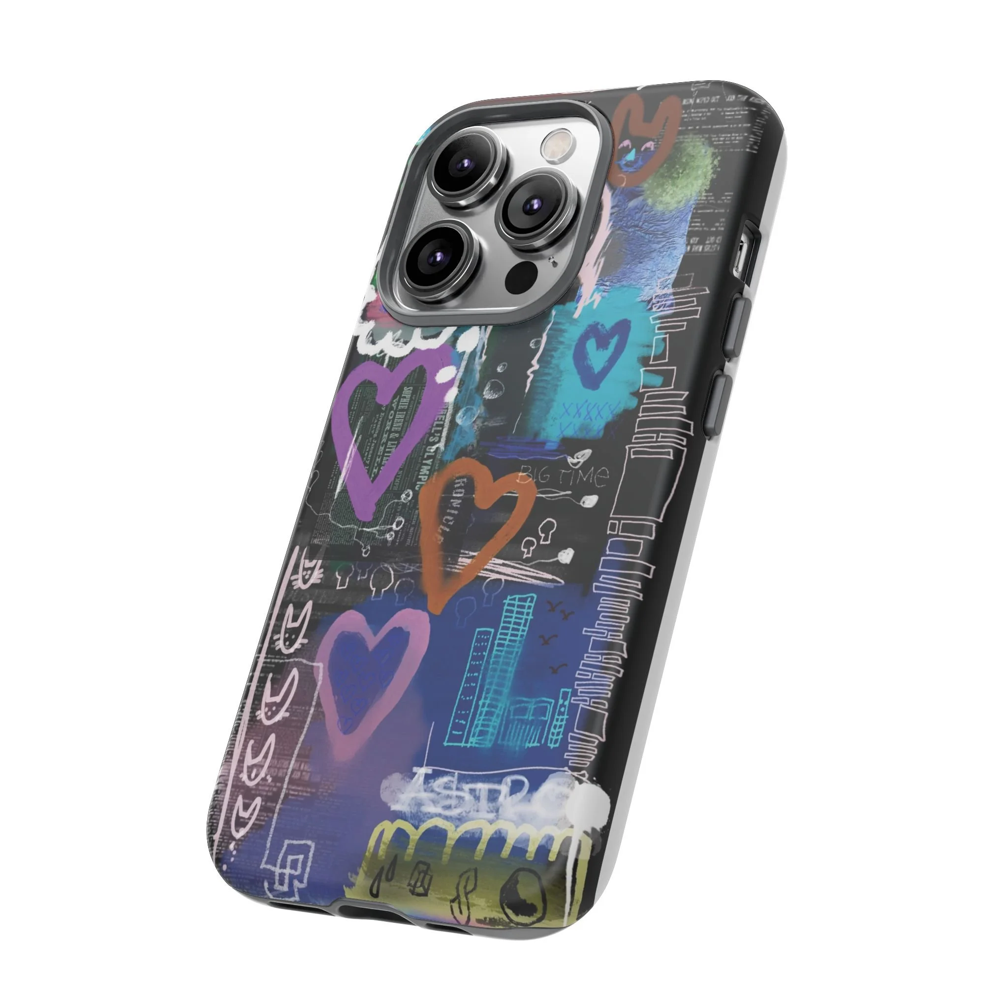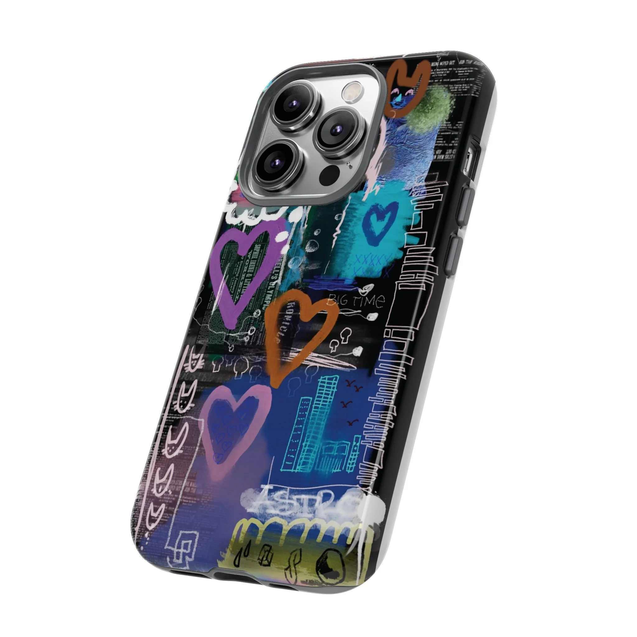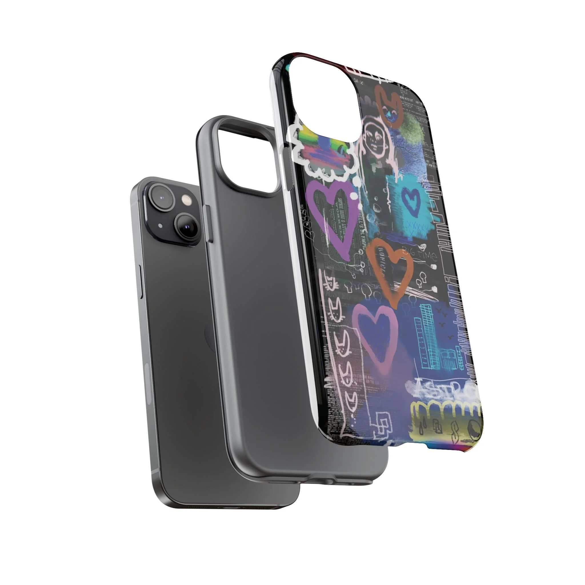 A protective Pink Cheeto phone case wrapped in vibrant street-art energy. Layers of spray-painted hearts, neon scribbles, and clipped architectural lines create a lived-in, gallery-on-the-go look. The glossy/matte finish keeps the colors saturated while the dual-layer polycarbonate shell and TPU silicone liner absorb shocks and guard against drops. Bring a bit of urban attitude to everyday carry — this case reads like a pocket sketchbook, brightening commutes, late-night walks, and coffee-shop sessions with its playful, hand-drawn charm.