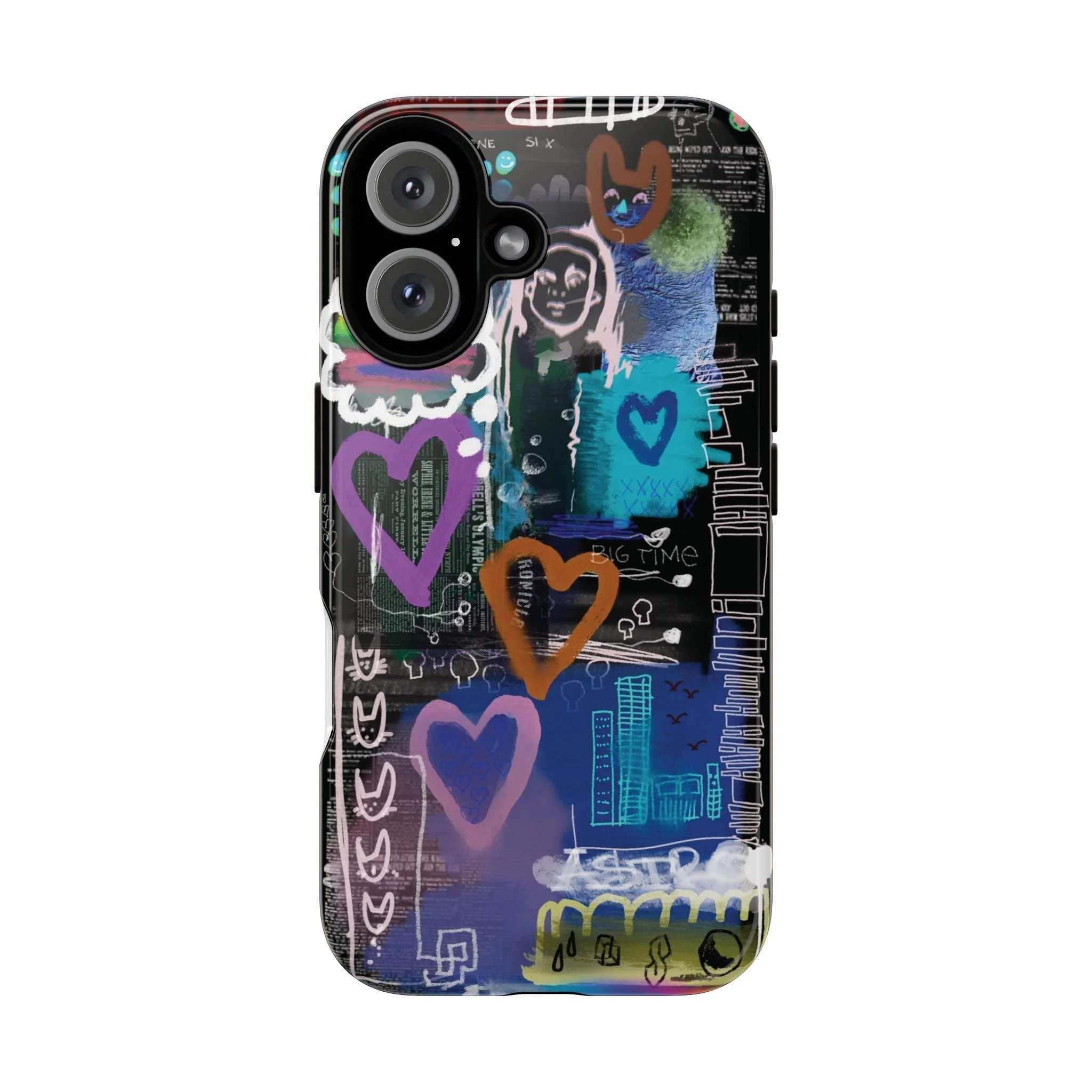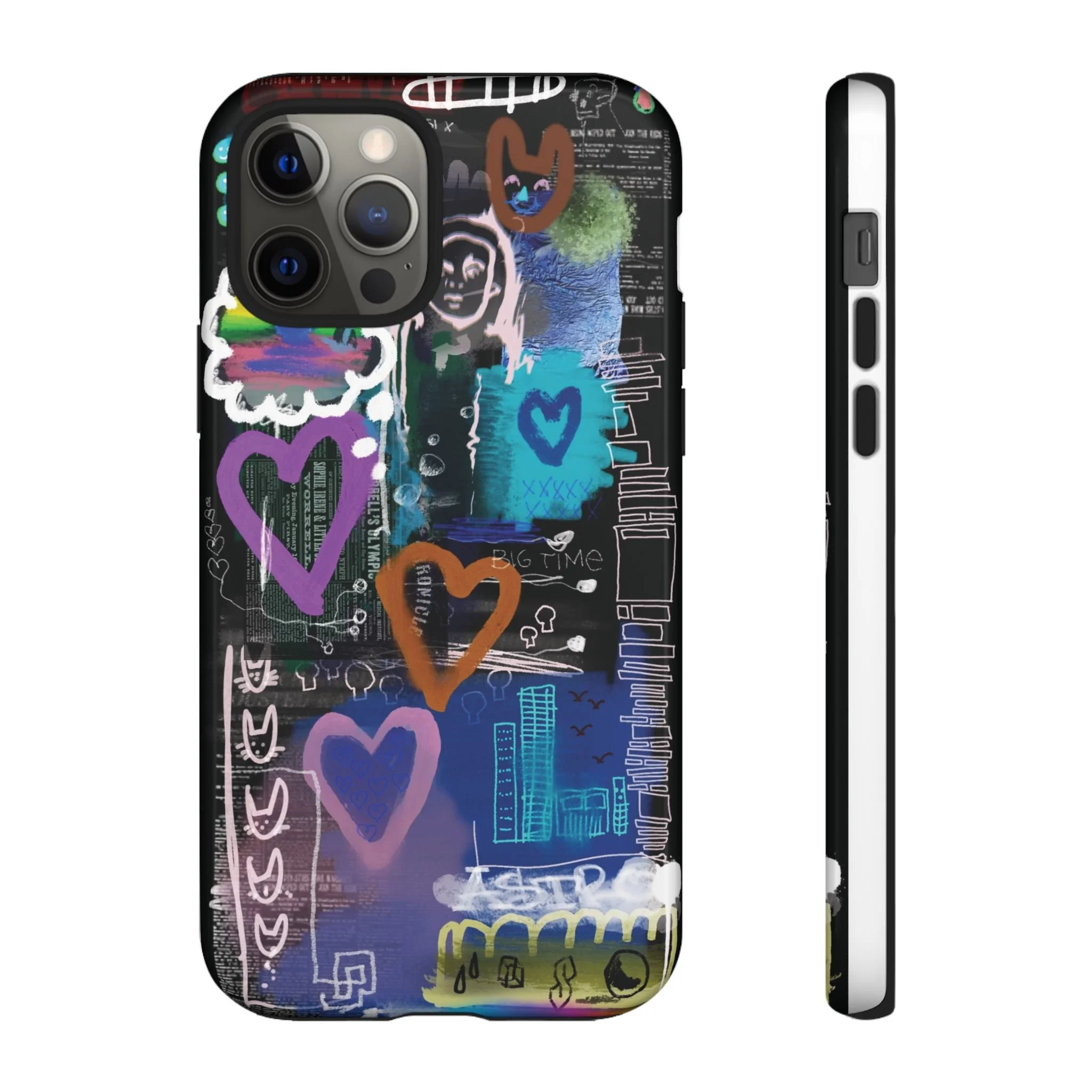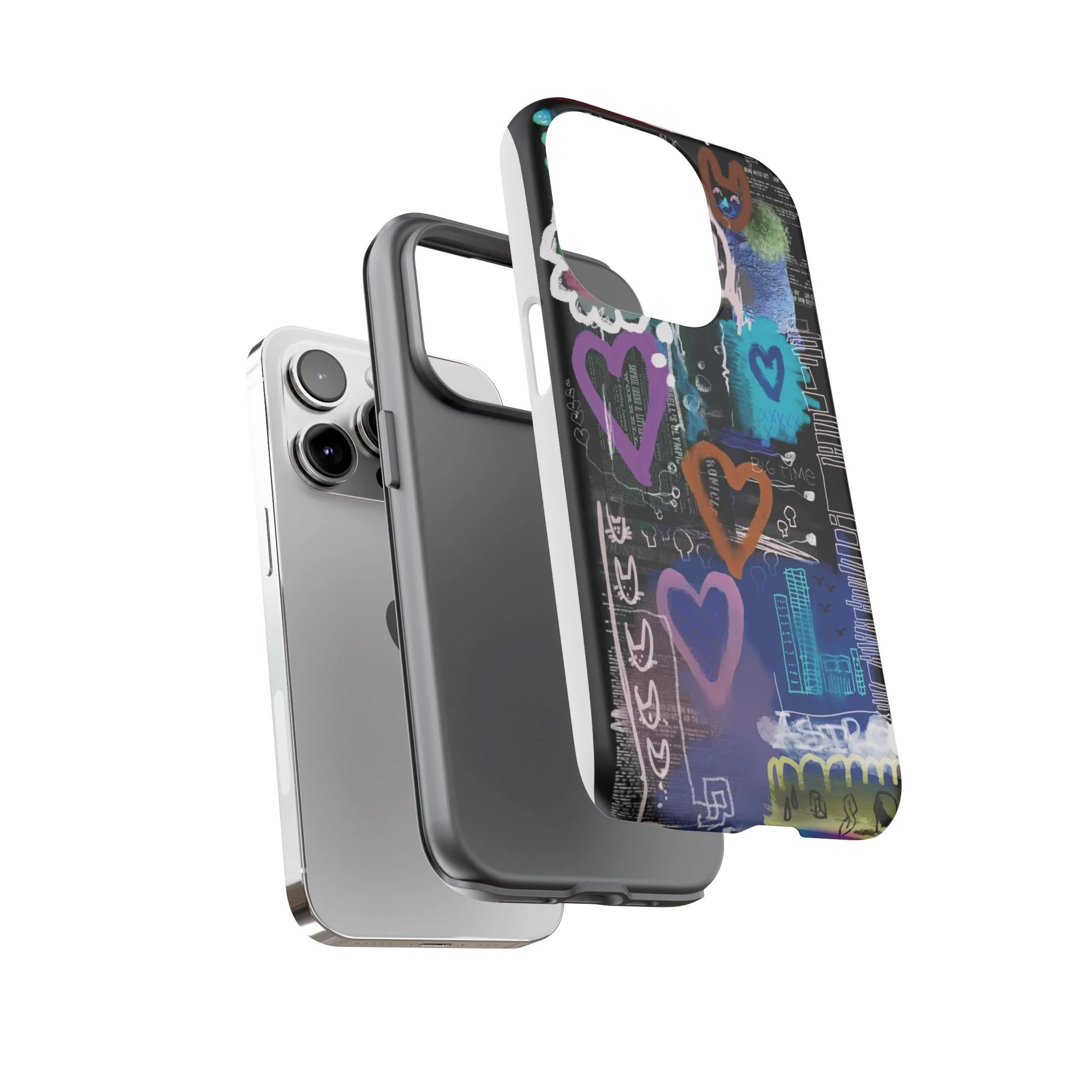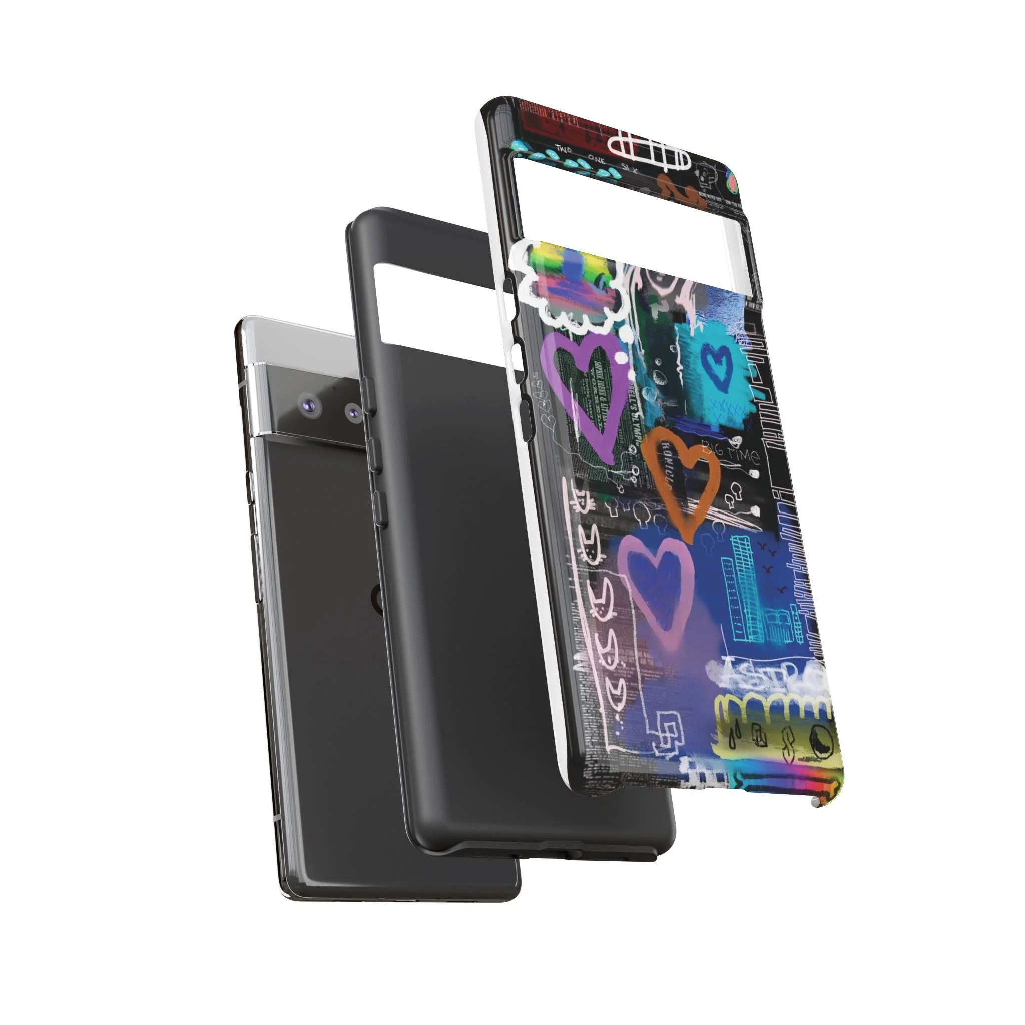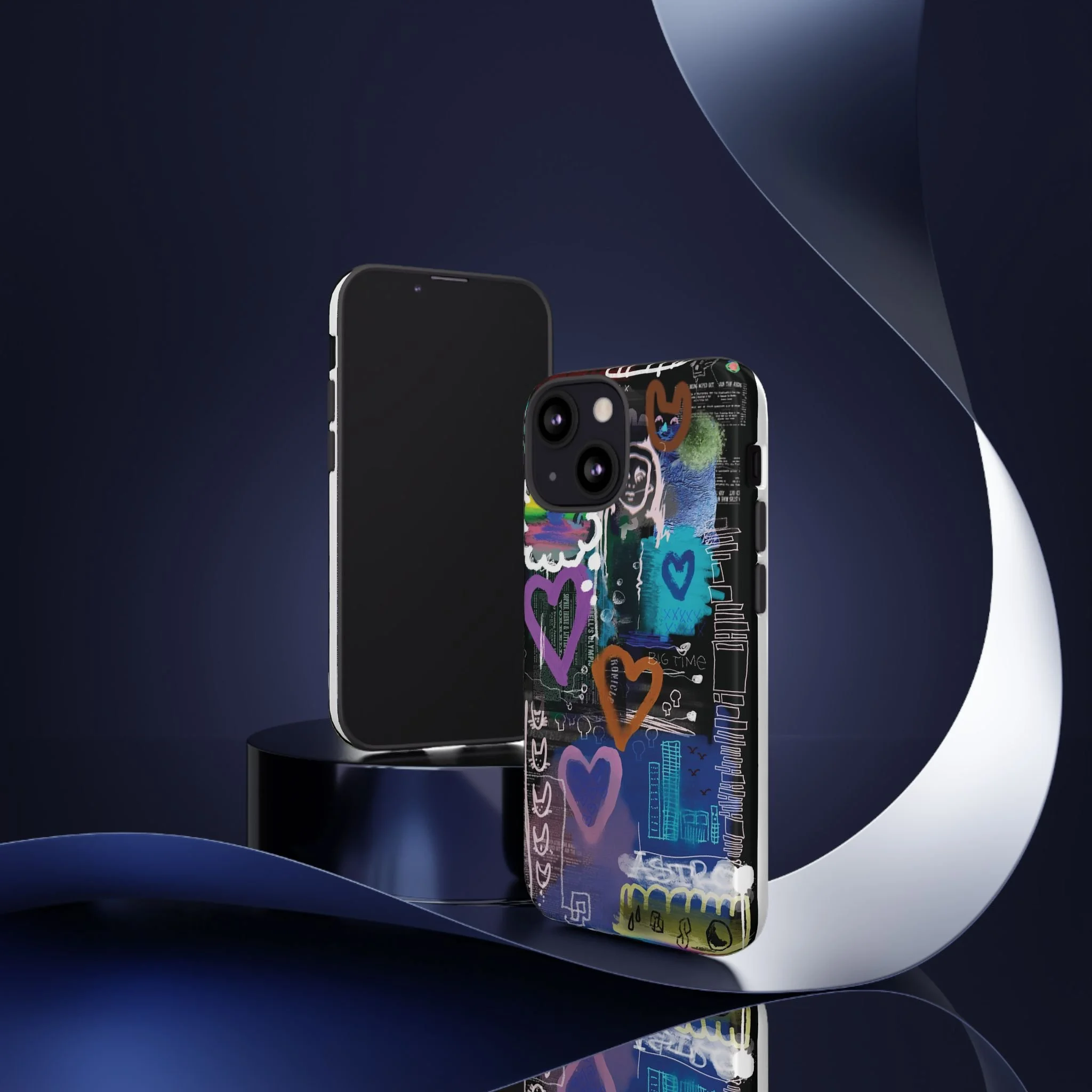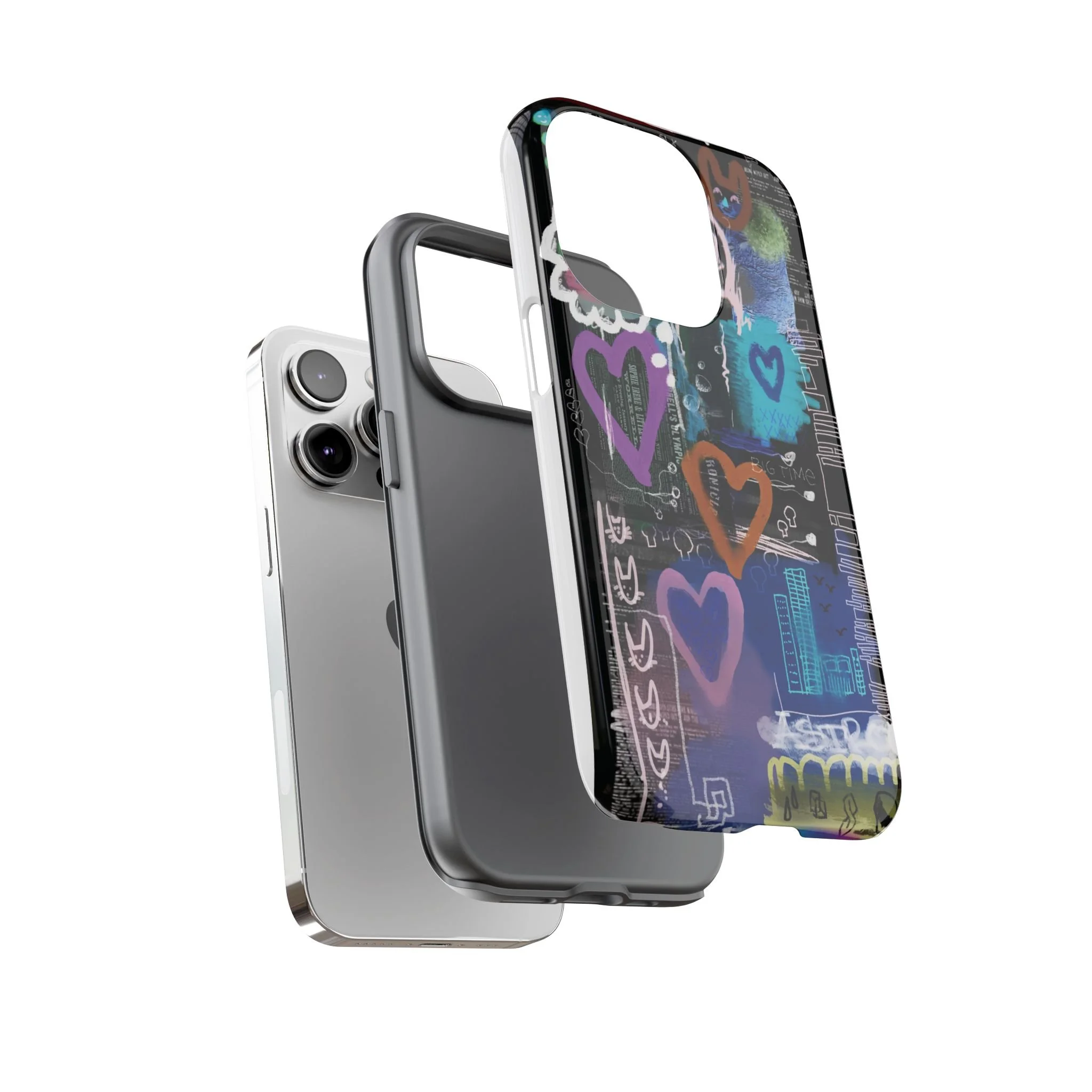 A protective Pink Cheeto phone case wrapped in vibrant street-art energy. Layers of spray-painted hearts, neon scribbles, and clipped architectural lines create a lived-in, gallery-on-the-go look. The glossy/matte finish keeps the colors saturated while the dual-layer polycarbonate shell and TPU silicone liner absorb shocks and guard against drops. Bring a bit of urban attitude to everyday carry — this case reads like a pocket sketchbook, brightening commutes, late-night walks, and coffee-shop sessions with its playful, hand-drawn charm.