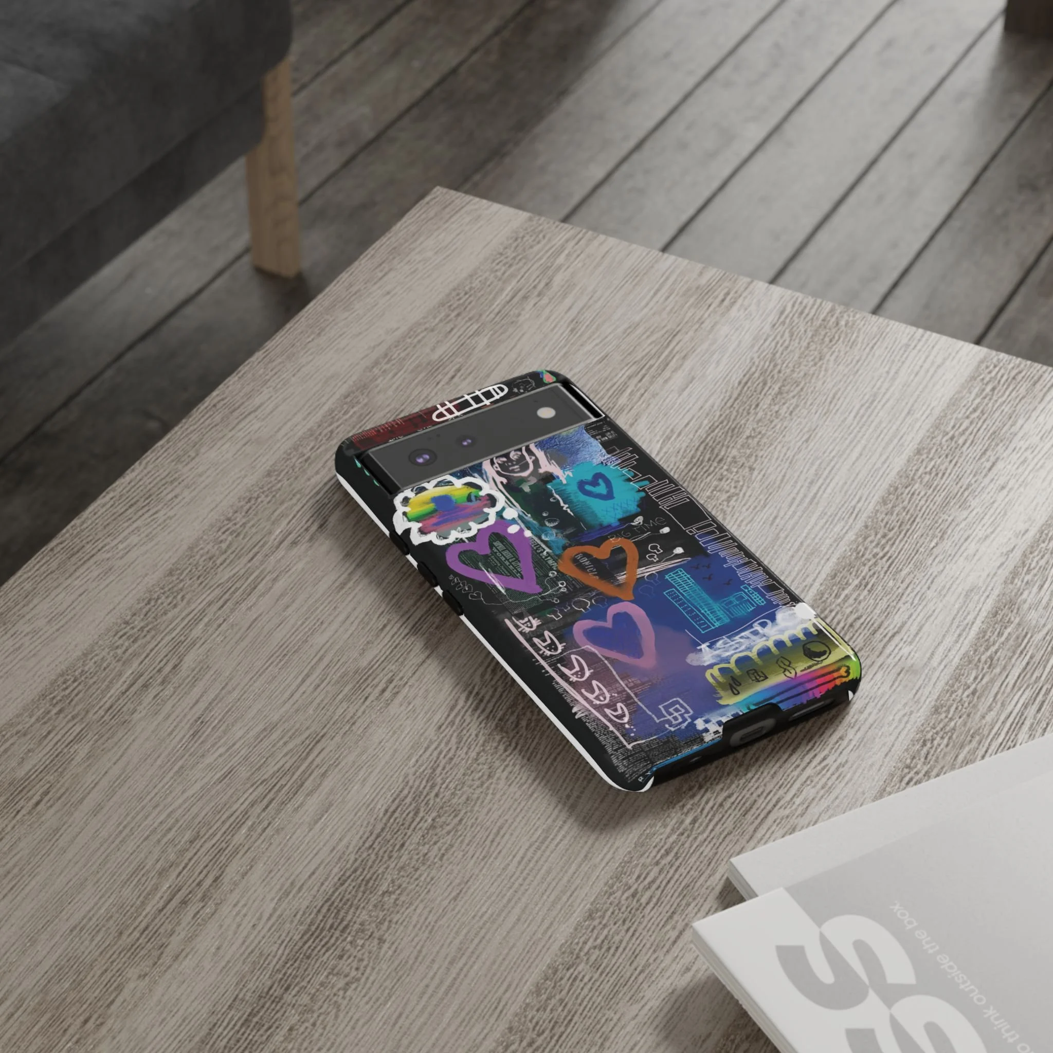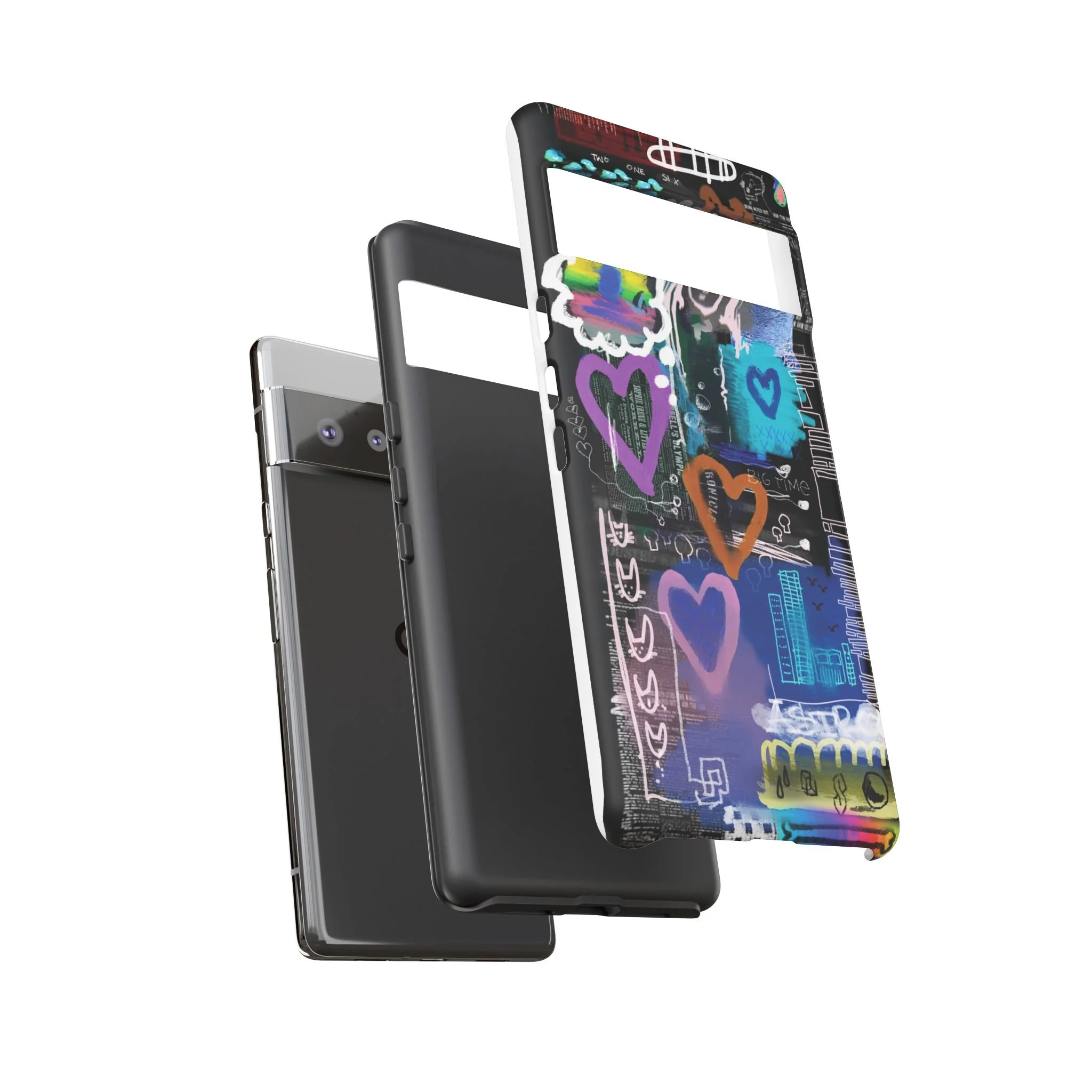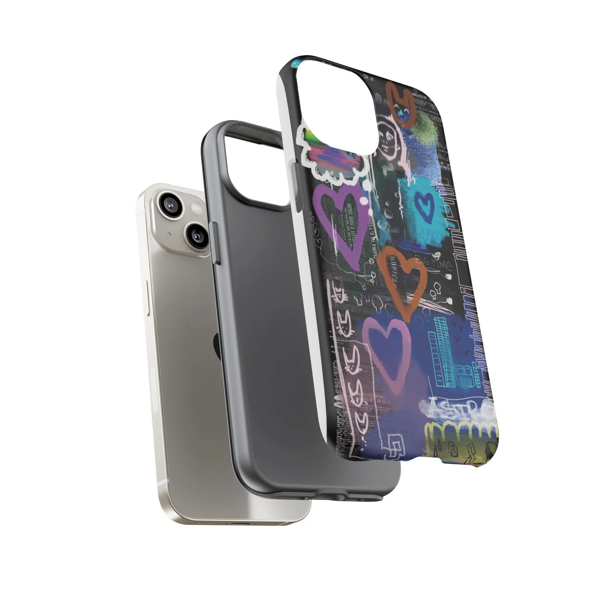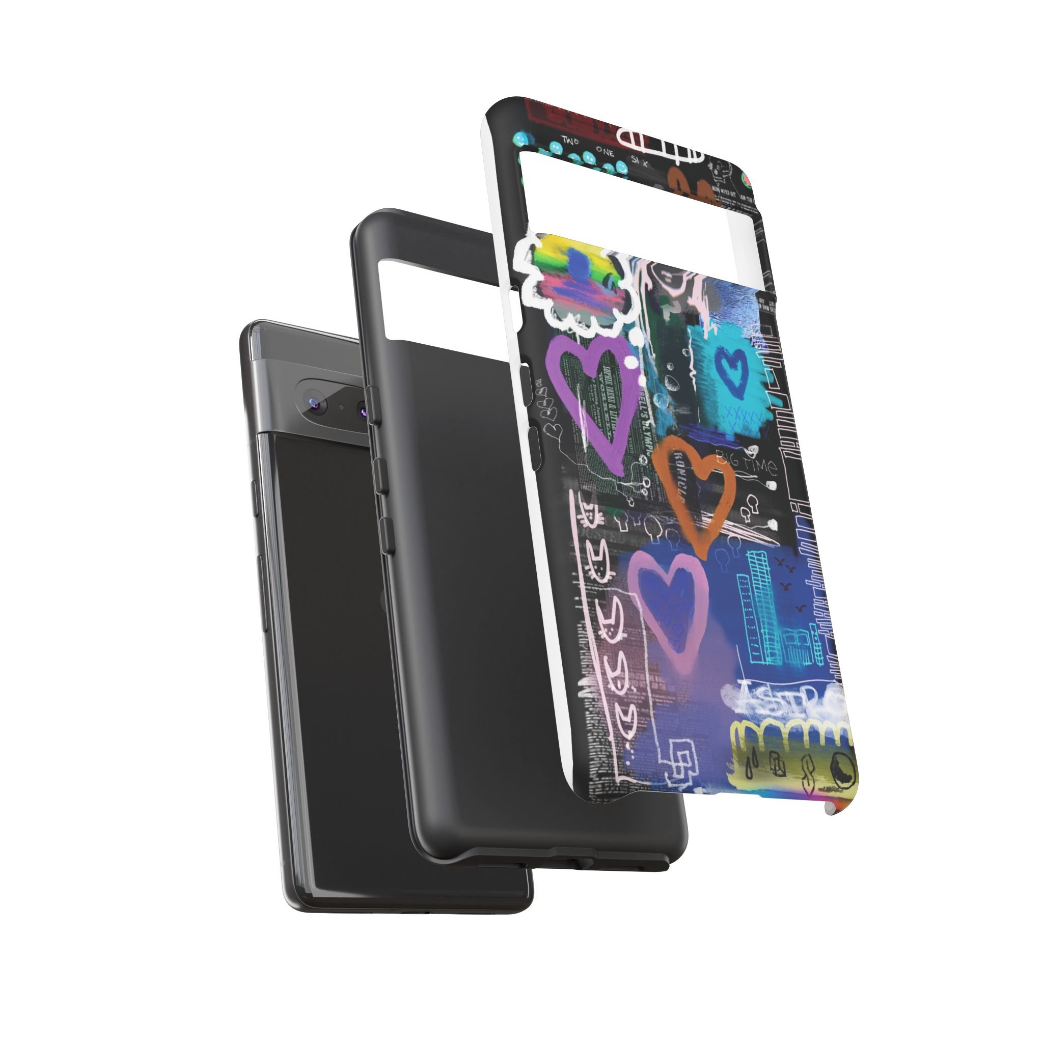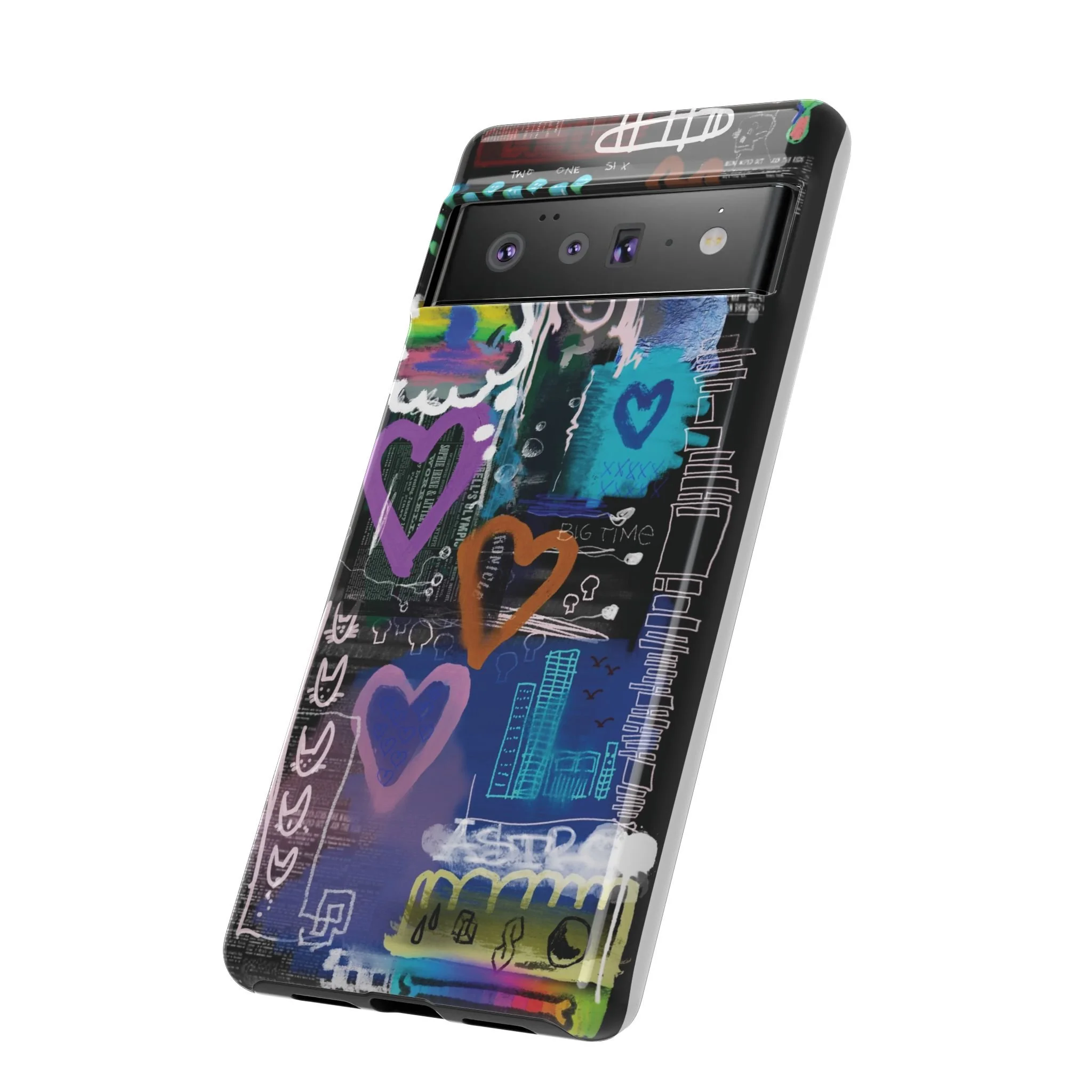 A protective Pink Cheeto phone case wrapped in vibrant street-art energy. Layers of spray-painted hearts, neon scribbles, and clipped architectural lines create a lived-in, gallery-on-the-go look. The glossy/matte finish keeps the colors saturated while the dual-layer polycarbonate shell and TPU silicone liner absorb shocks and guard against drops. Bring a bit of urban attitude to everyday carry — this case reads like a pocket sketchbook, brightening commutes, late-night walks, and coffee-shop sessions with its playful, hand-drawn charm.