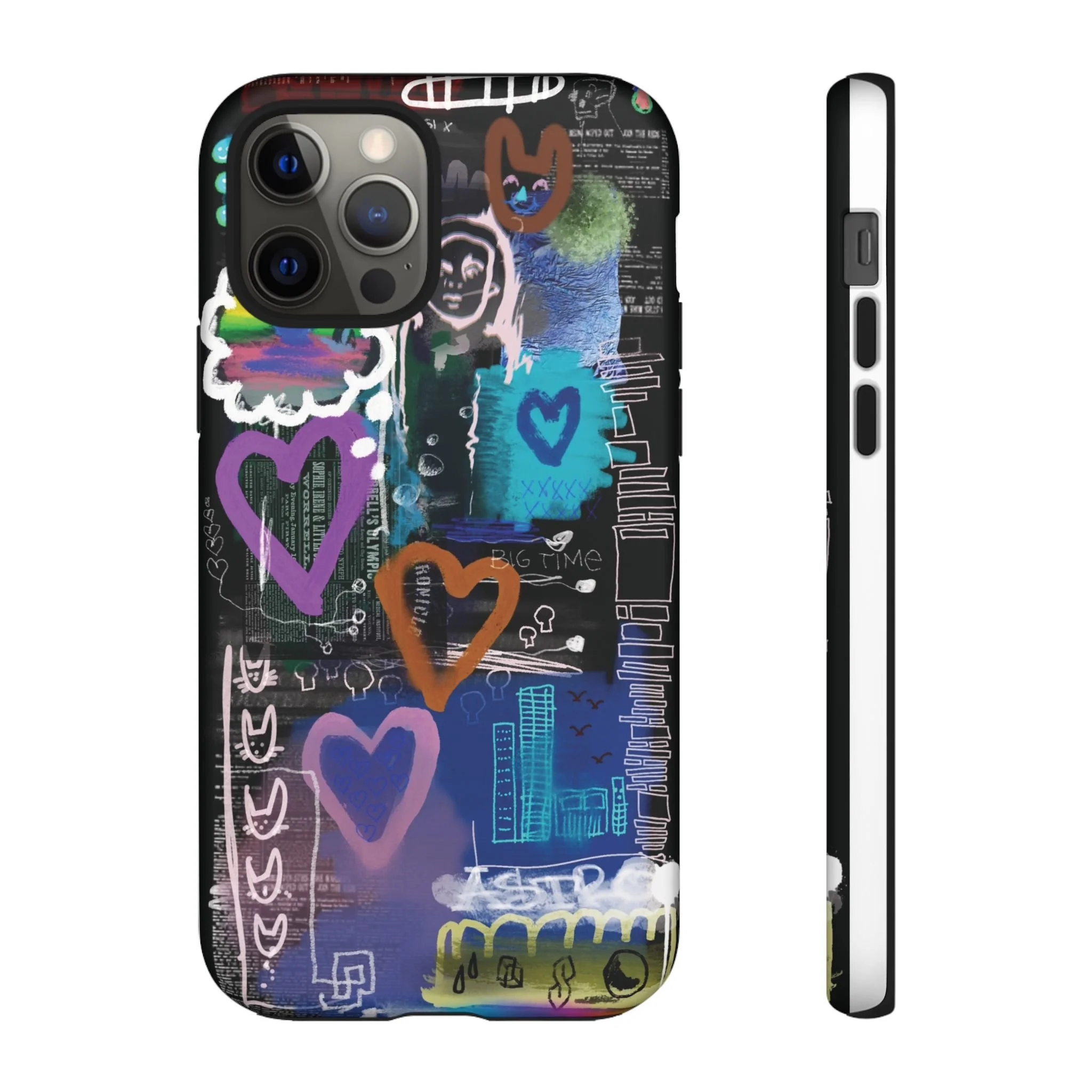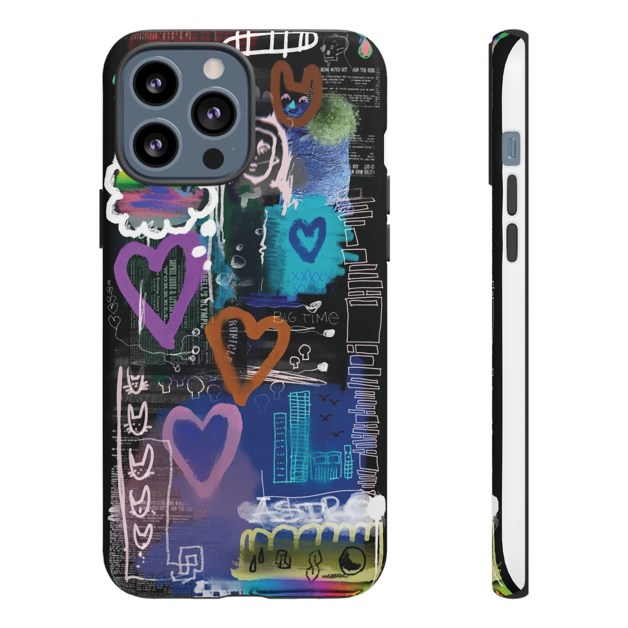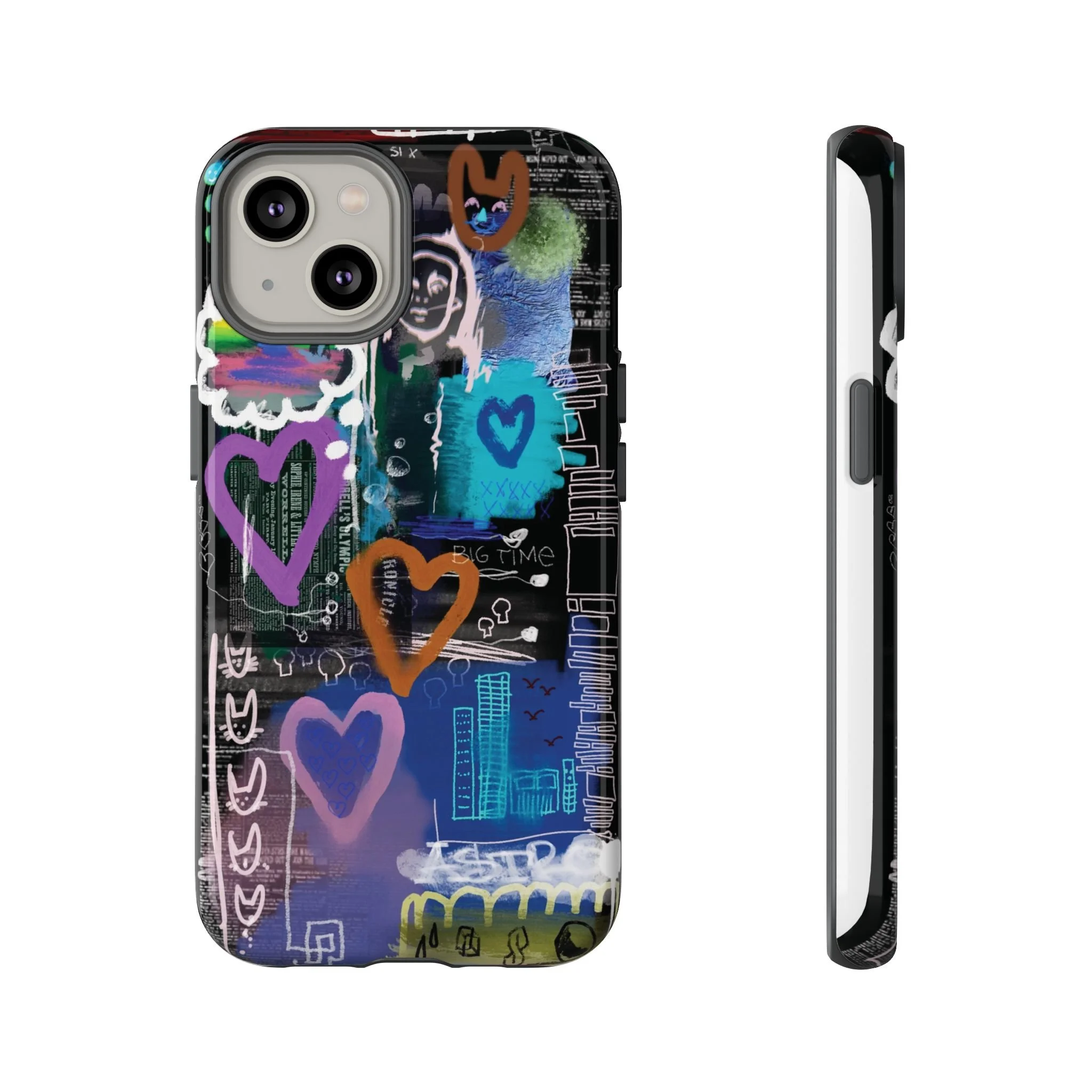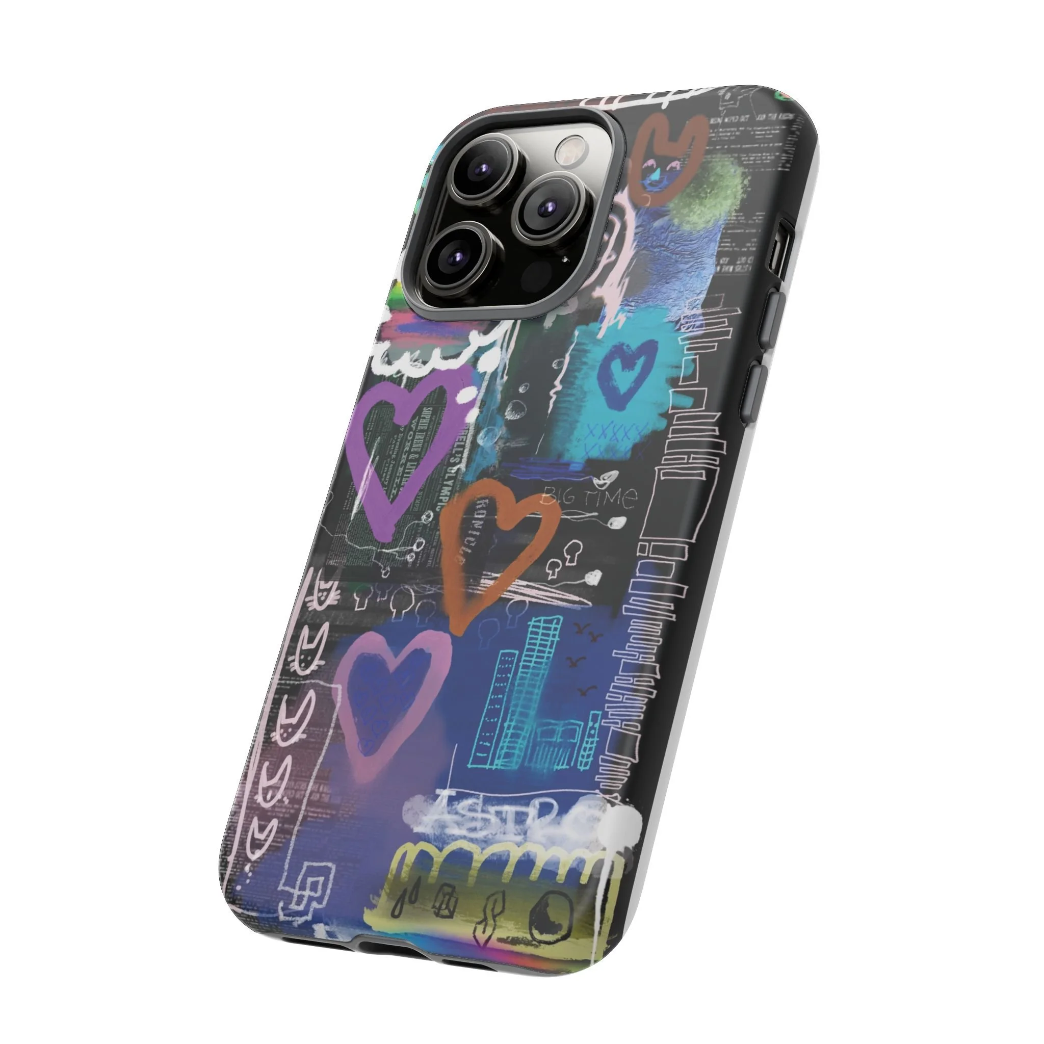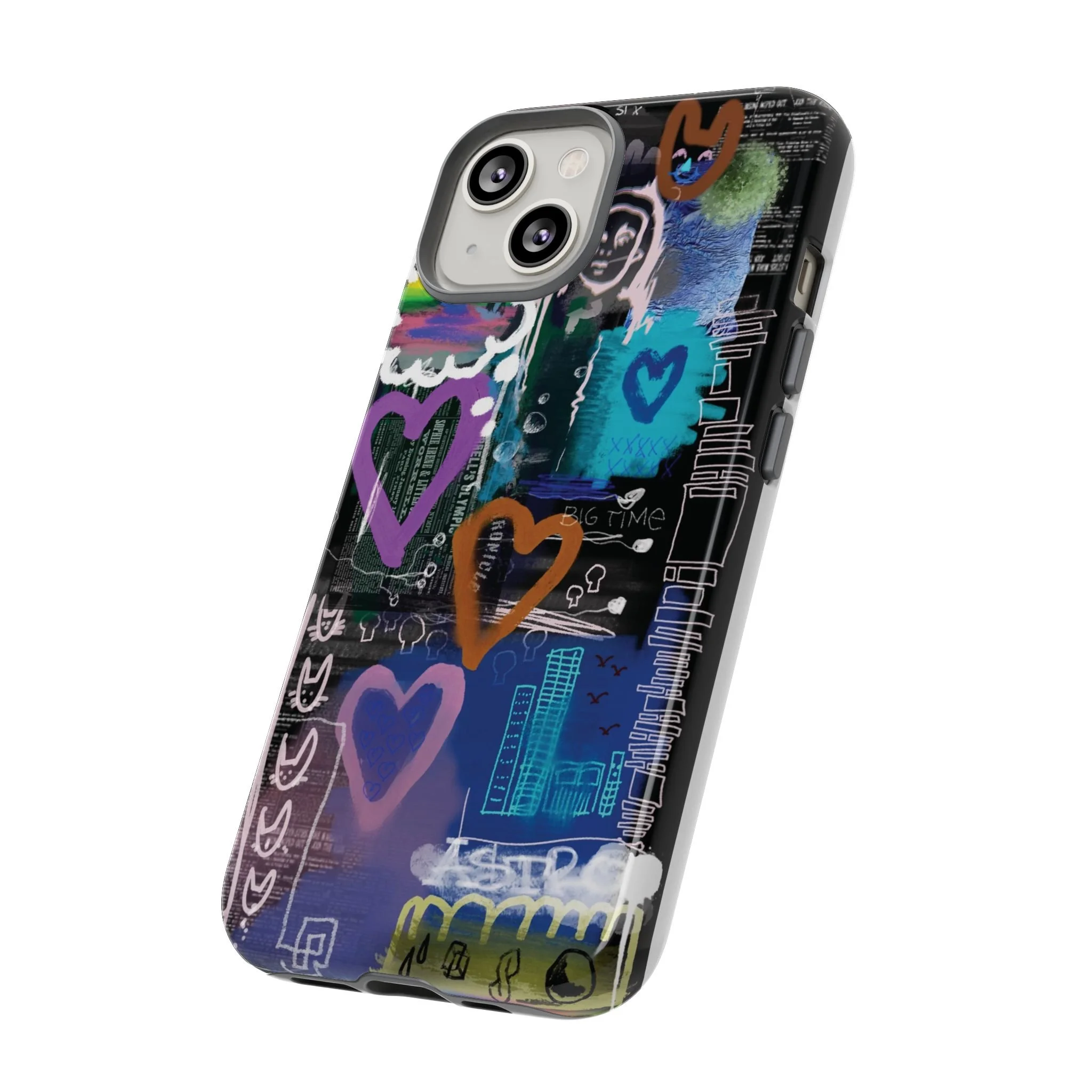 A protective Pink Cheeto phone case wrapped in vibrant street-art energy. Layers of spray-painted hearts, neon scribbles, and clipped architectural lines create a lived-in, gallery-on-the-go look. The glossy/matte finish keeps the colors saturated while the dual-layer polycarbonate shell and TPU silicone liner absorb shocks and guard against drops. Bring a bit of urban attitude to everyday carry — this case reads like a pocket sketchbook, brightening commutes, late-night walks, and coffee-shop sessions with its playful, hand-drawn charm.