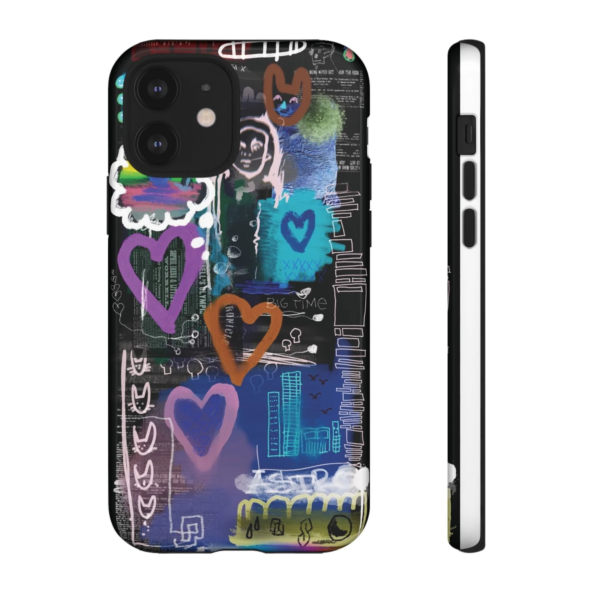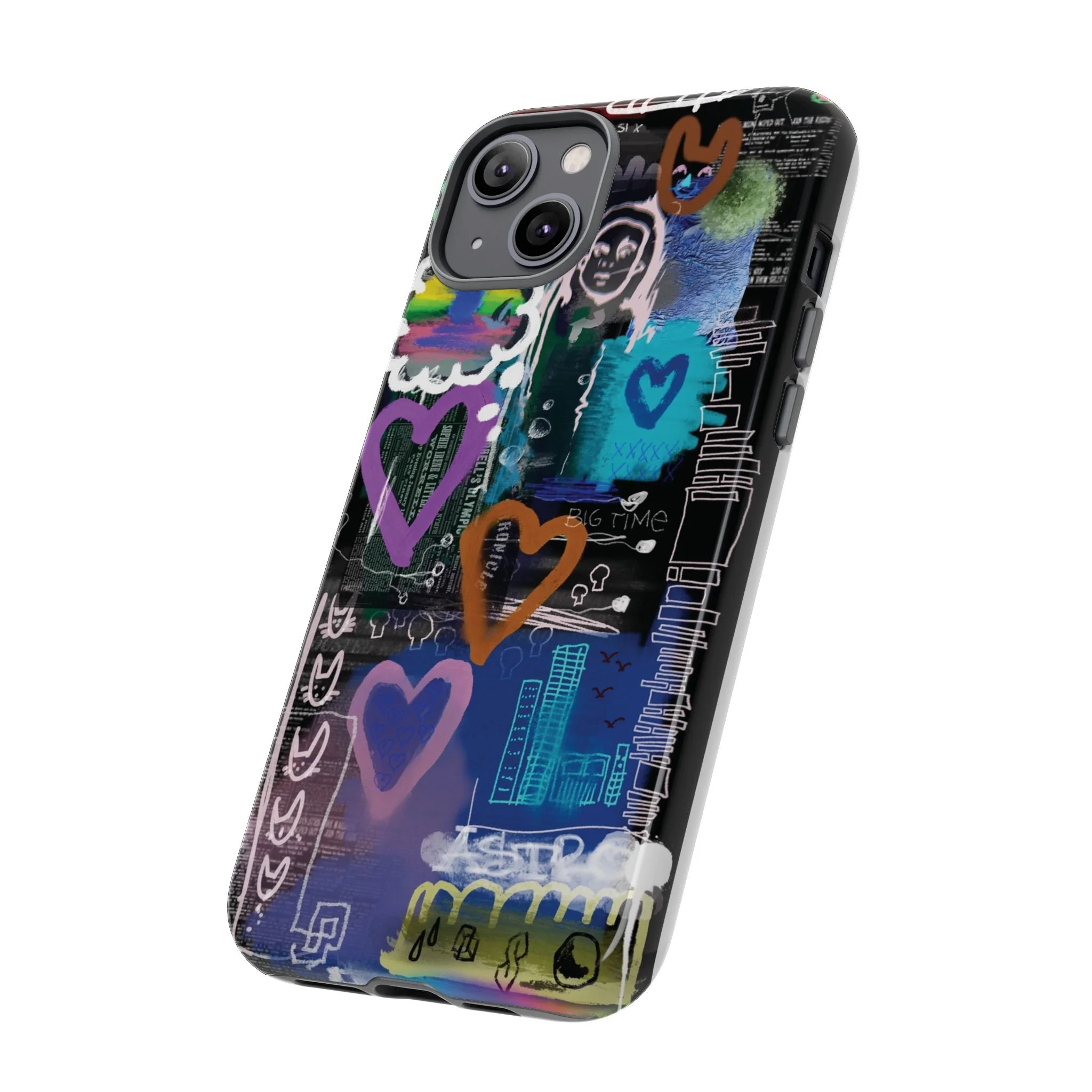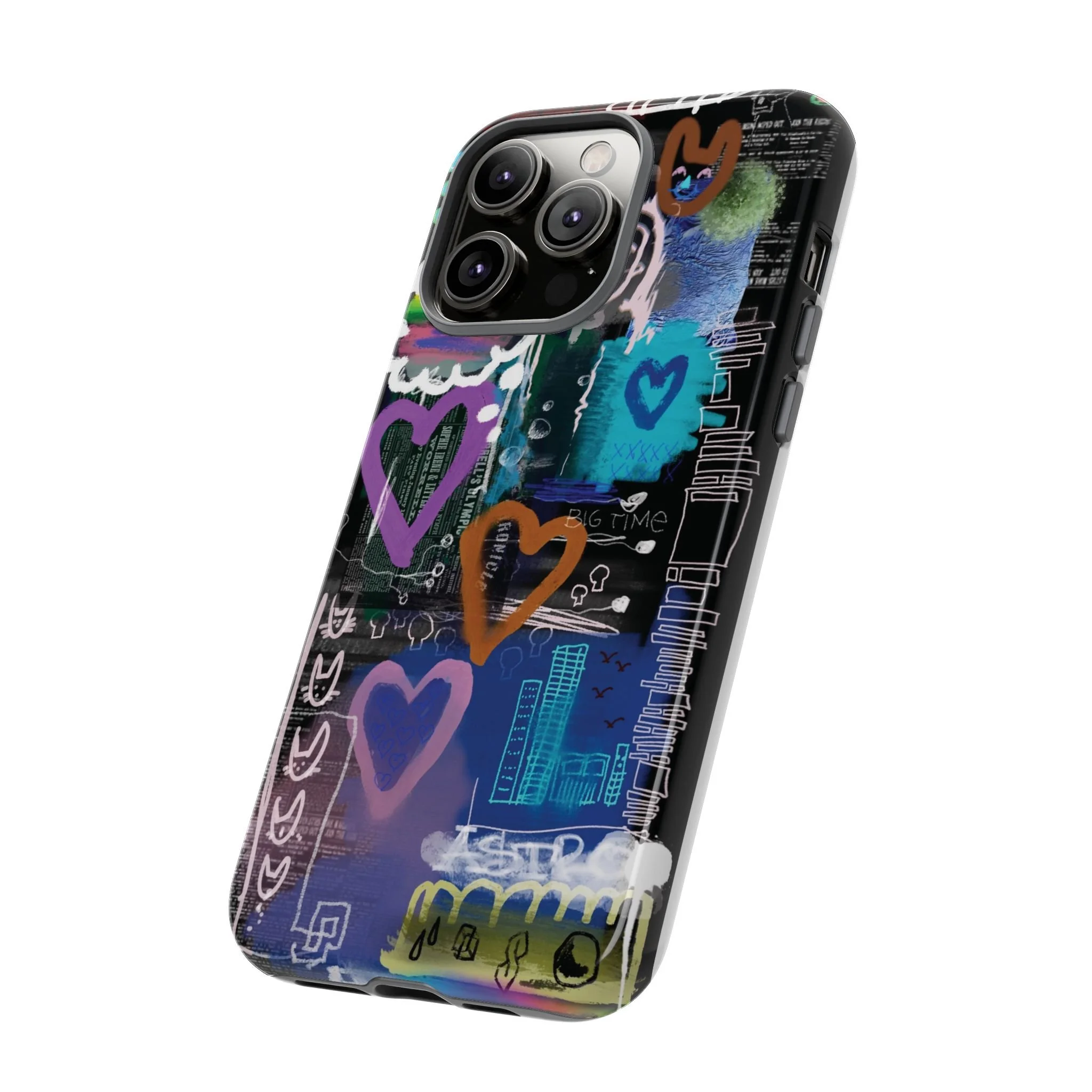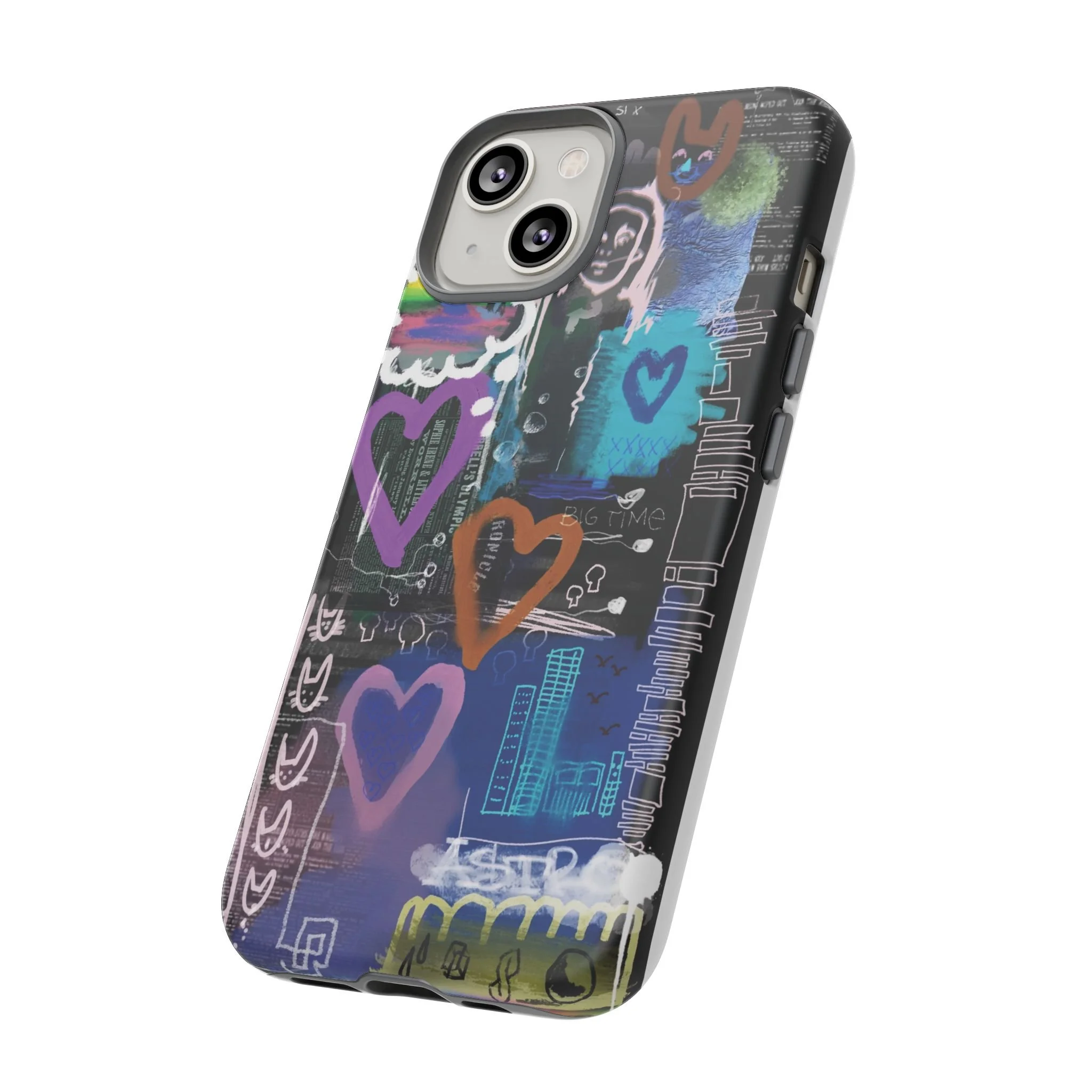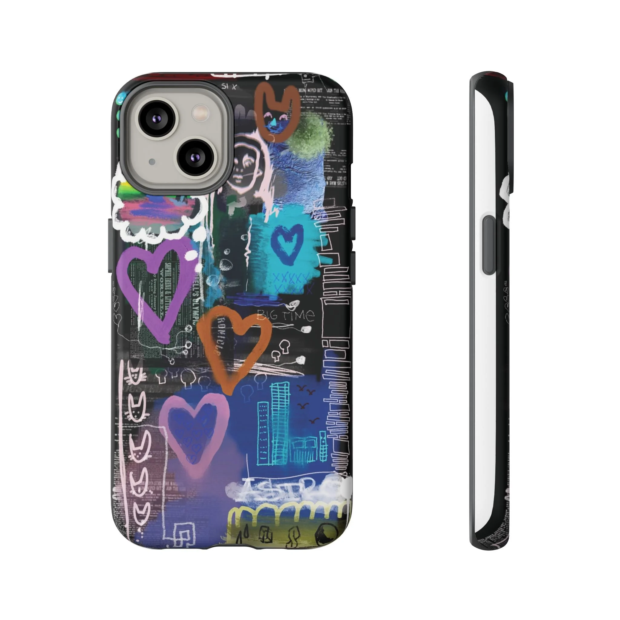 A protective Pink Cheeto phone case wrapped in vibrant street-art energy. Layers of spray-painted hearts, neon scribbles, and clipped architectural lines create a lived-in, gallery-on-the-go look. The glossy/matte finish keeps the colors saturated while the dual-layer polycarbonate shell and TPU silicone liner absorb shocks and guard against drops. Bring a bit of urban attitude to everyday carry — this case reads like a pocket sketchbook, brightening commutes, late-night walks, and coffee-shop sessions with its playful, hand-drawn charm.