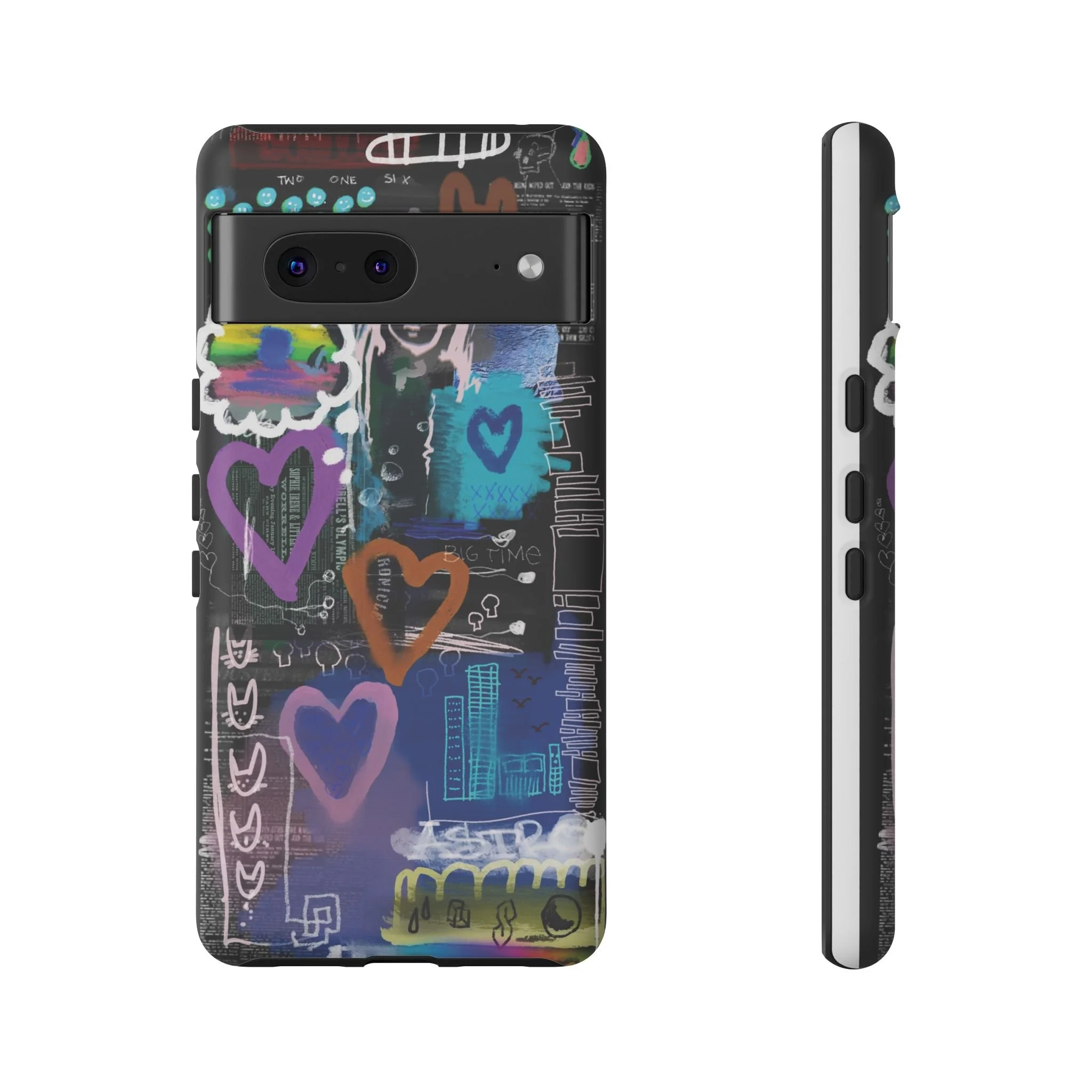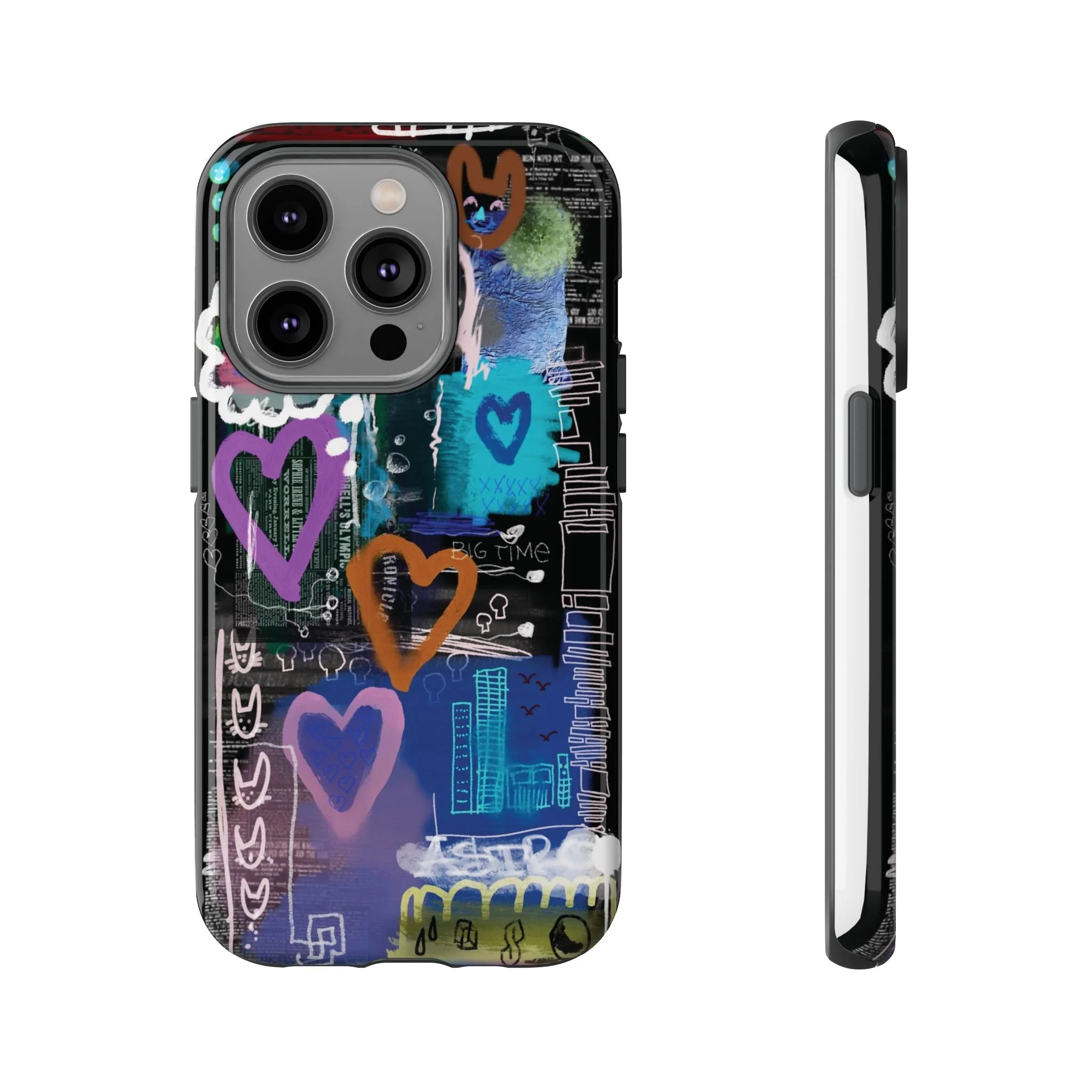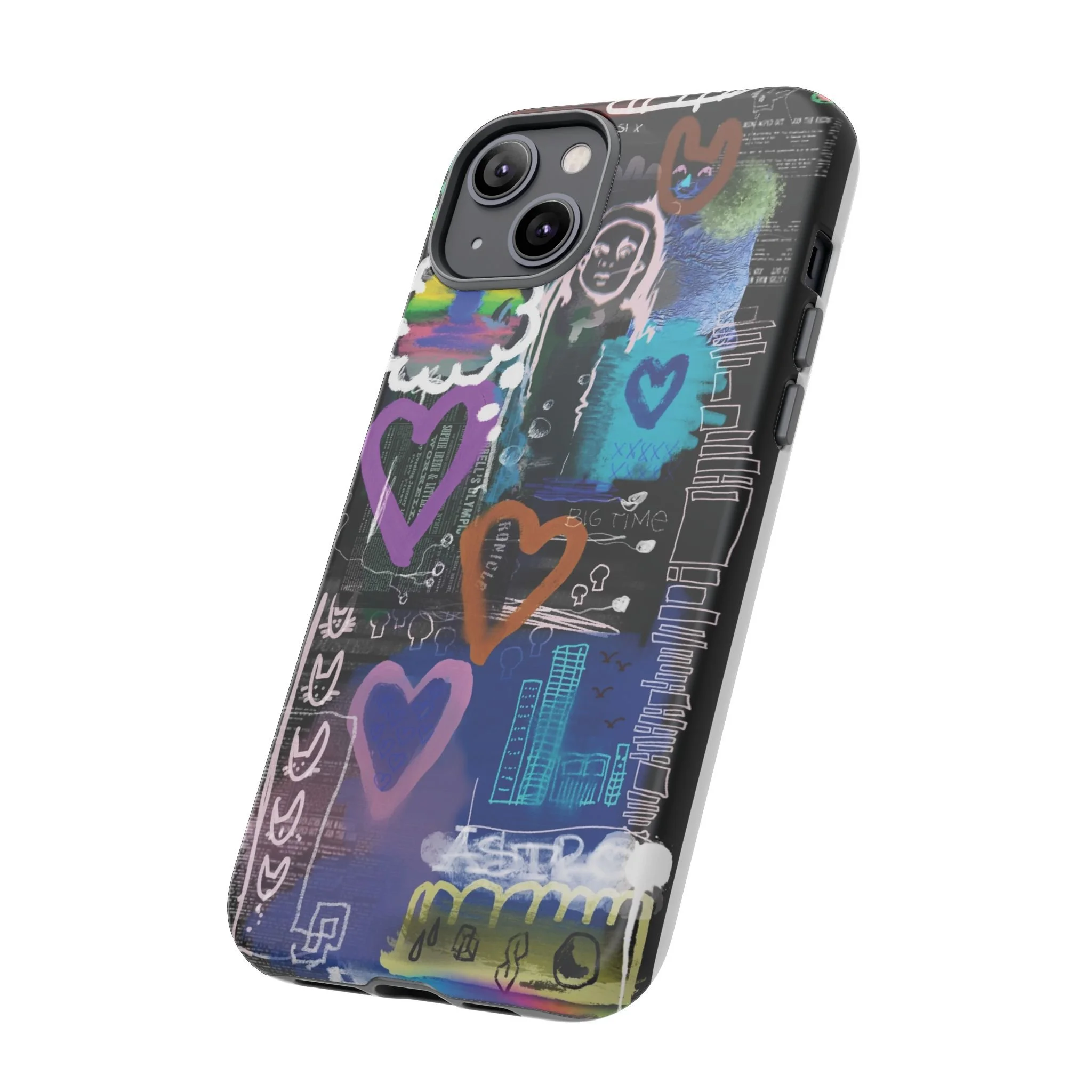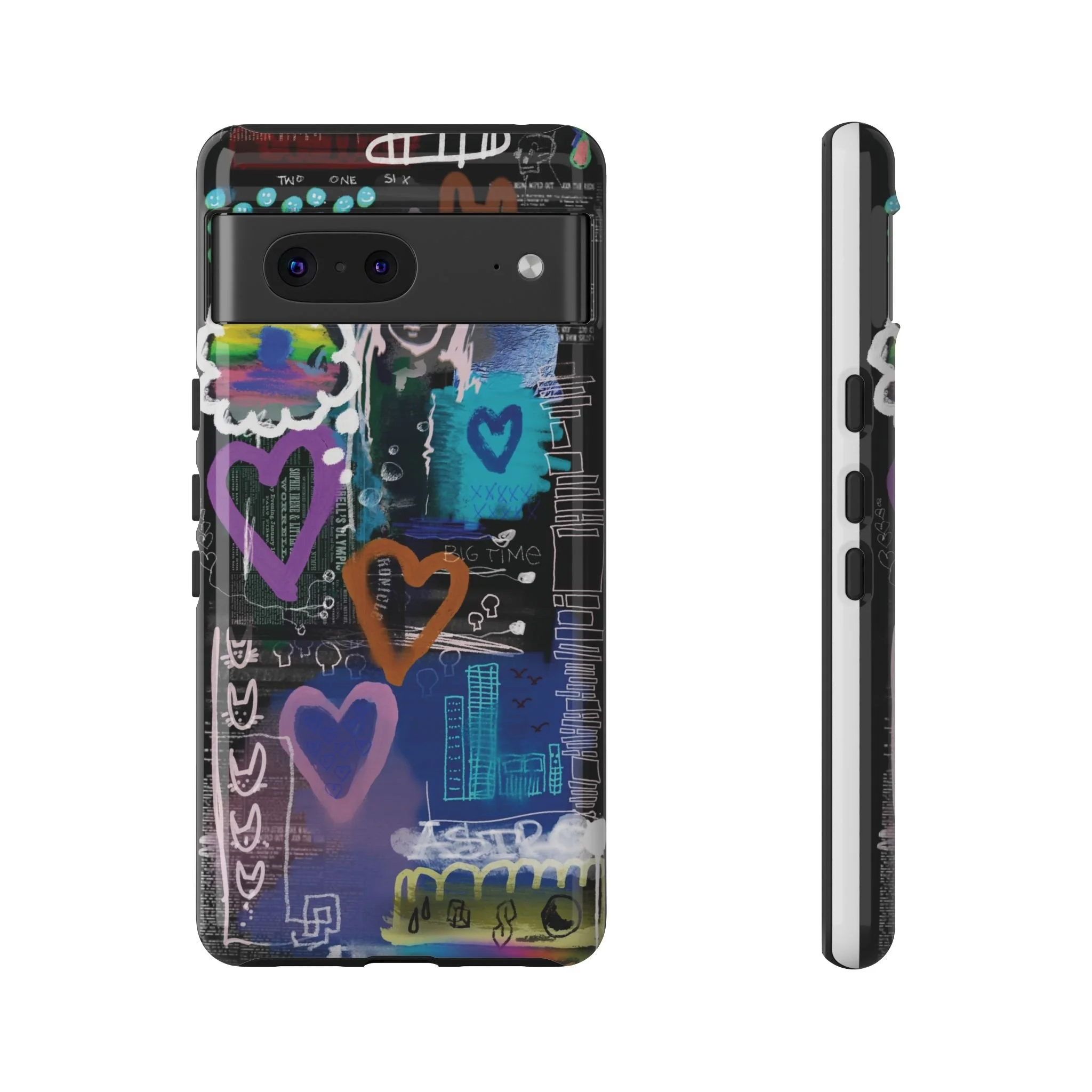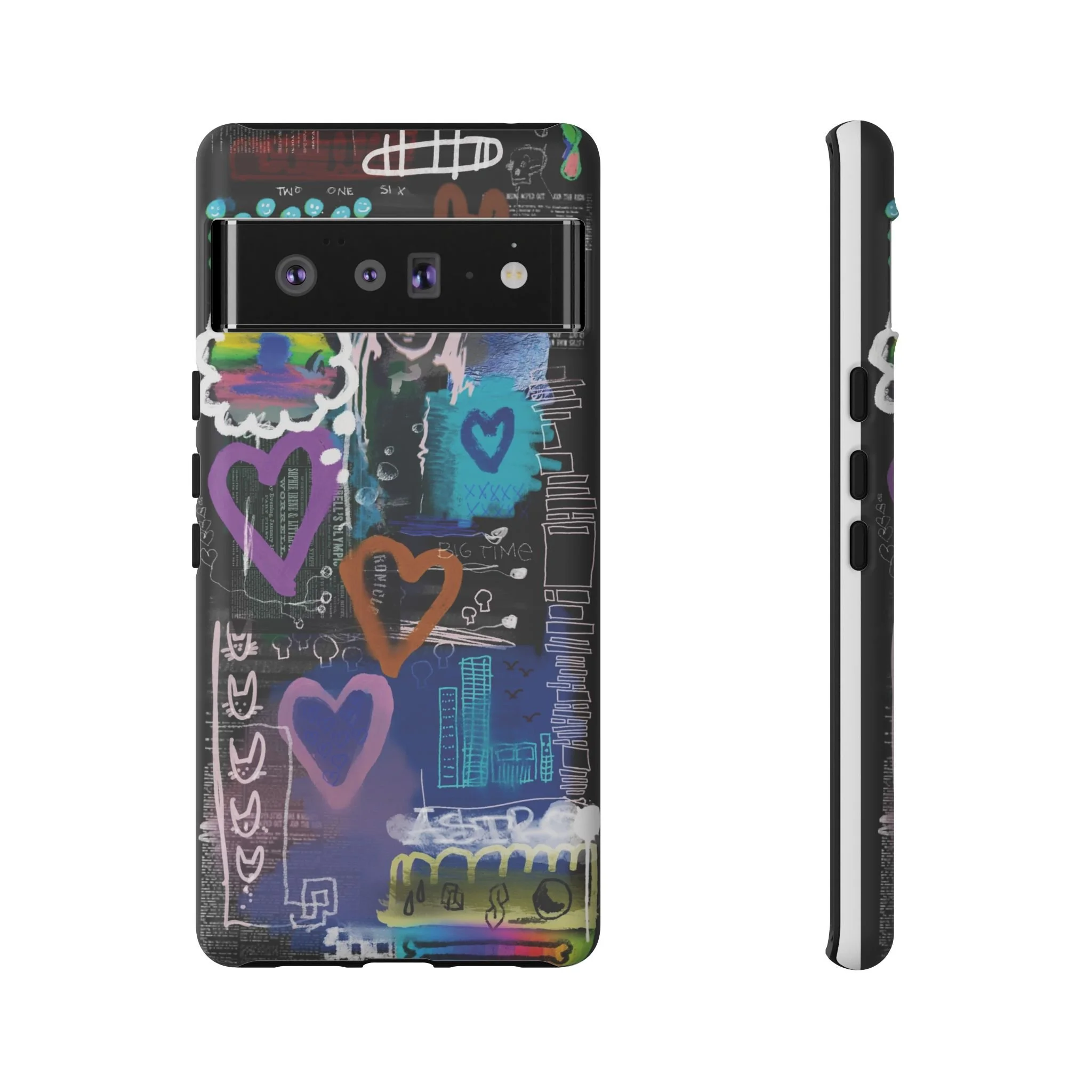 A protective Pink Cheeto phone case wrapped in vibrant street-art energy. Layers of spray-painted hearts, neon scribbles, and clipped architectural lines create a lived-in, gallery-on-the-go look. The glossy/matte finish keeps the colors saturated while the dual-layer polycarbonate shell and TPU silicone liner absorb shocks and guard against drops. Bring a bit of urban attitude to everyday carry — this case reads like a pocket sketchbook, brightening commutes, late-night walks, and coffee-shop sessions with its playful, hand-drawn charm.