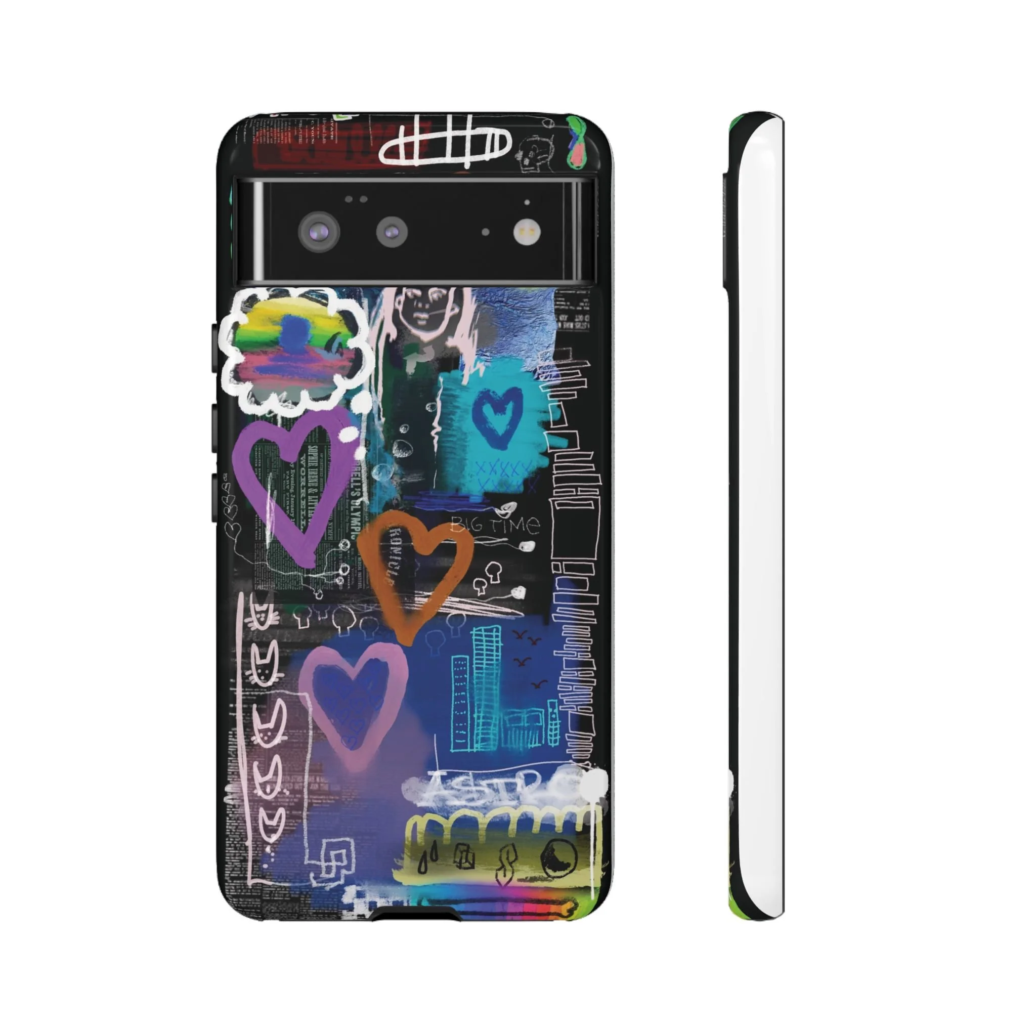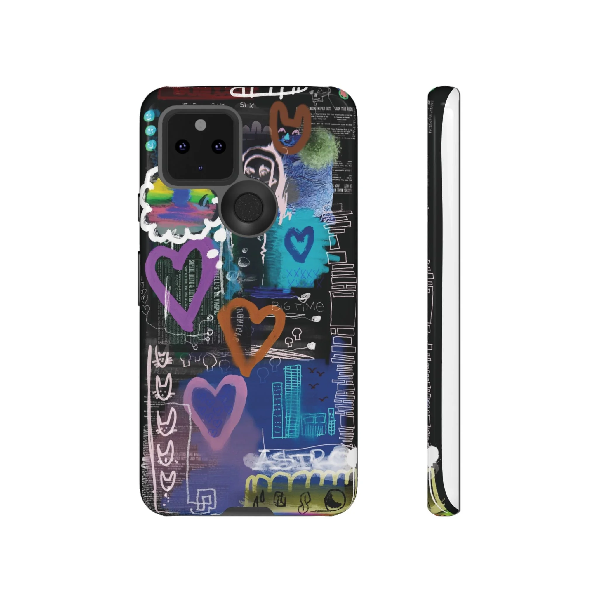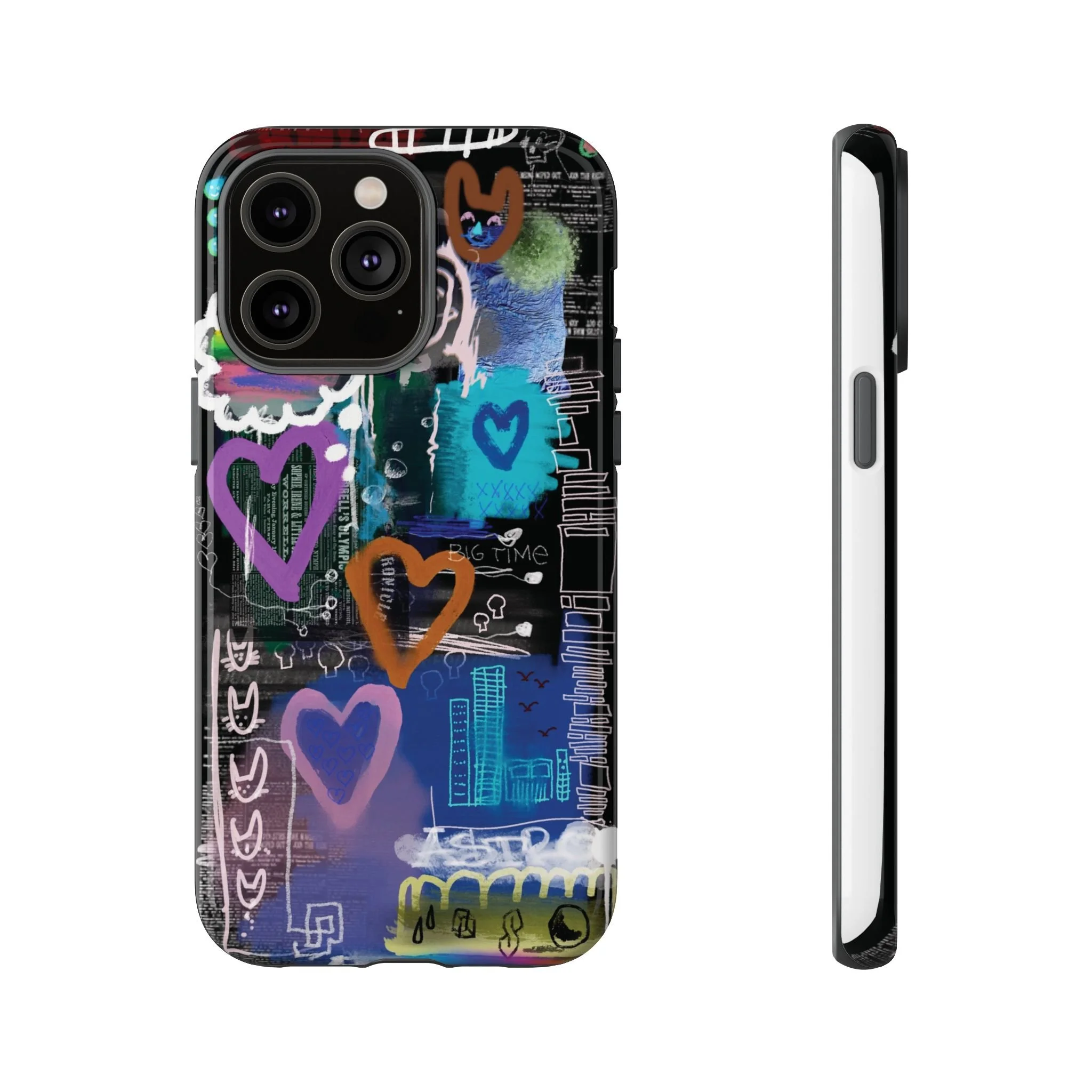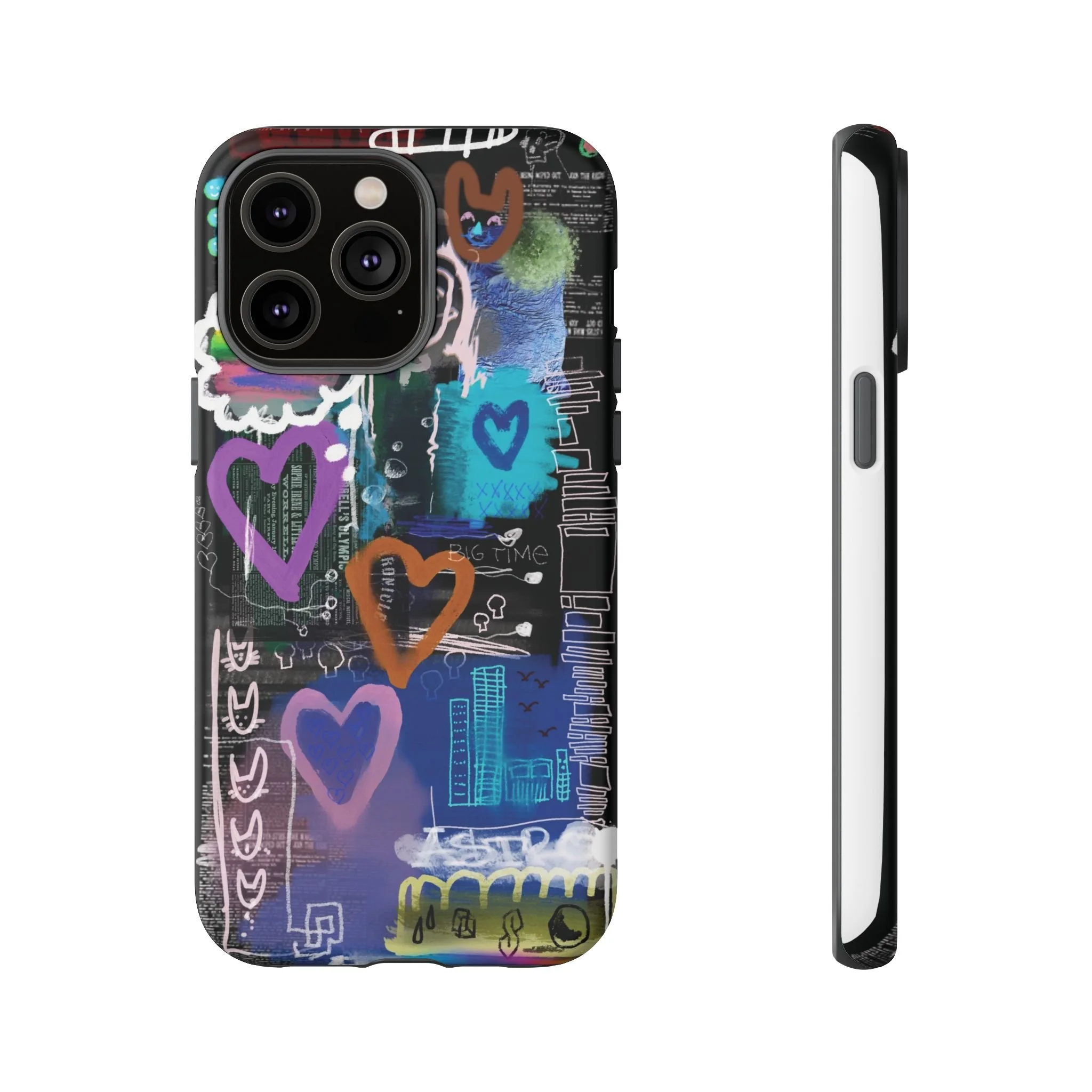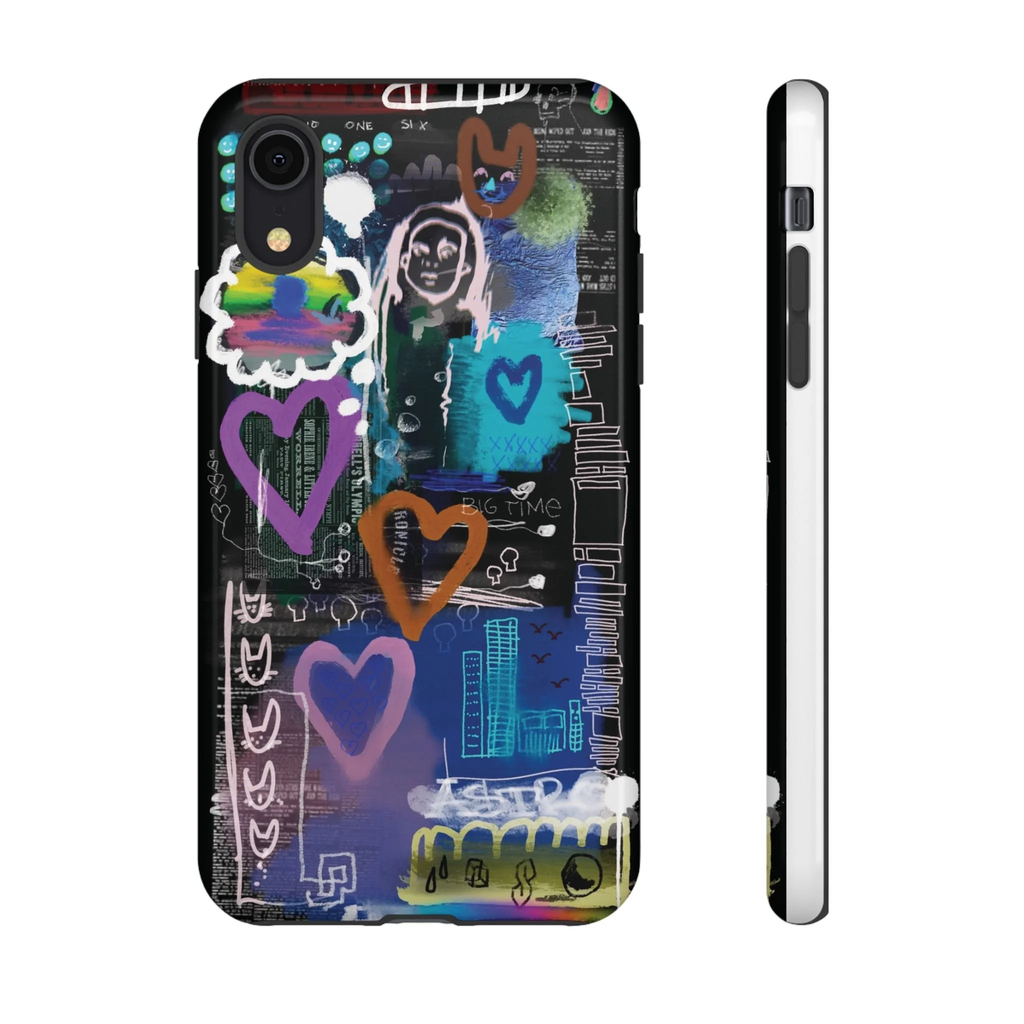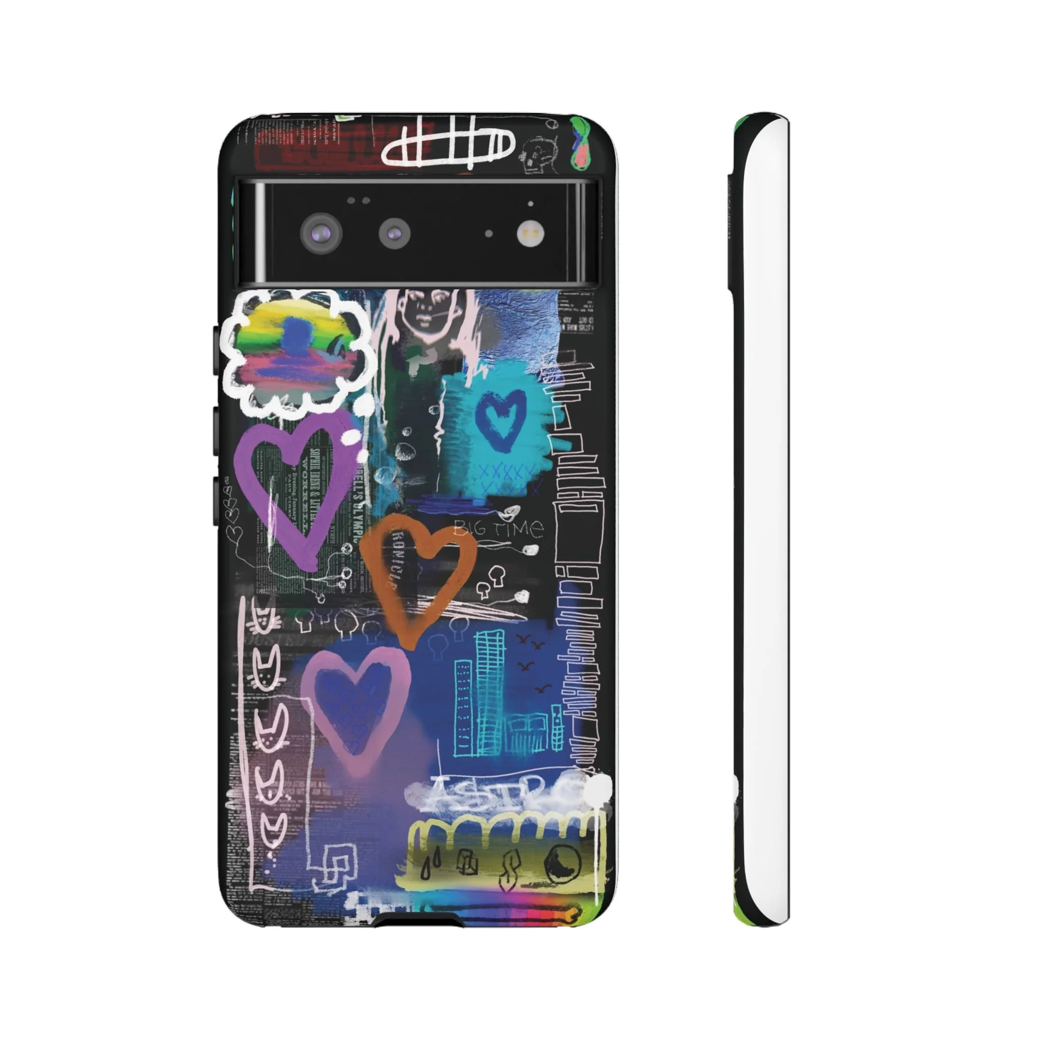 A protective Pink Cheeto phone case wrapped in vibrant street-art energy. Layers of spray-painted hearts, neon scribbles, and clipped architectural lines create a lived-in, gallery-on-the-go look. The glossy/matte finish keeps the colors saturated while the dual-layer polycarbonate shell and TPU silicone liner absorb shocks and guard against drops. Bring a bit of urban attitude to everyday carry — this case reads like a pocket sketchbook, brightening commutes, late-night walks, and coffee-shop sessions with its playful, hand-drawn charm.