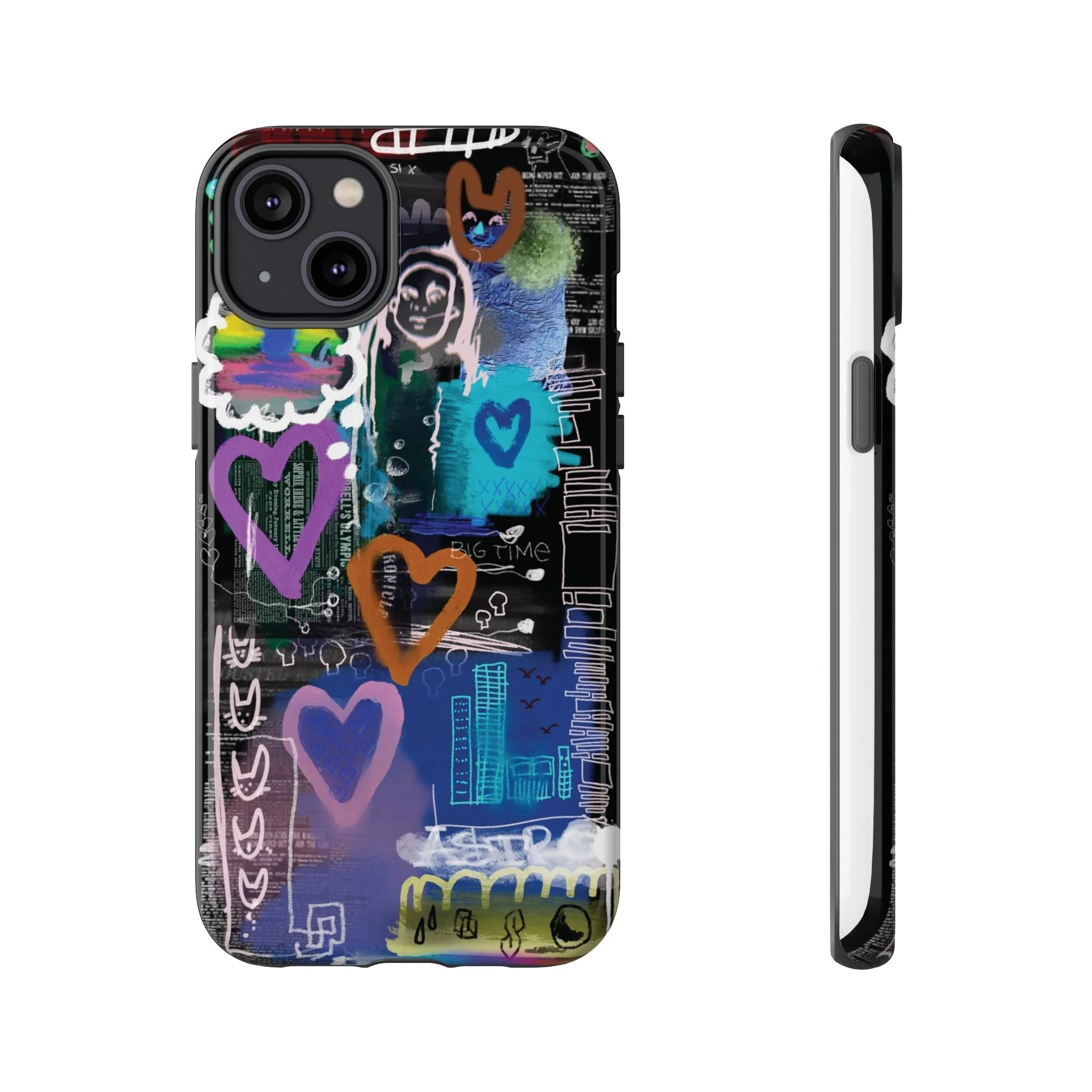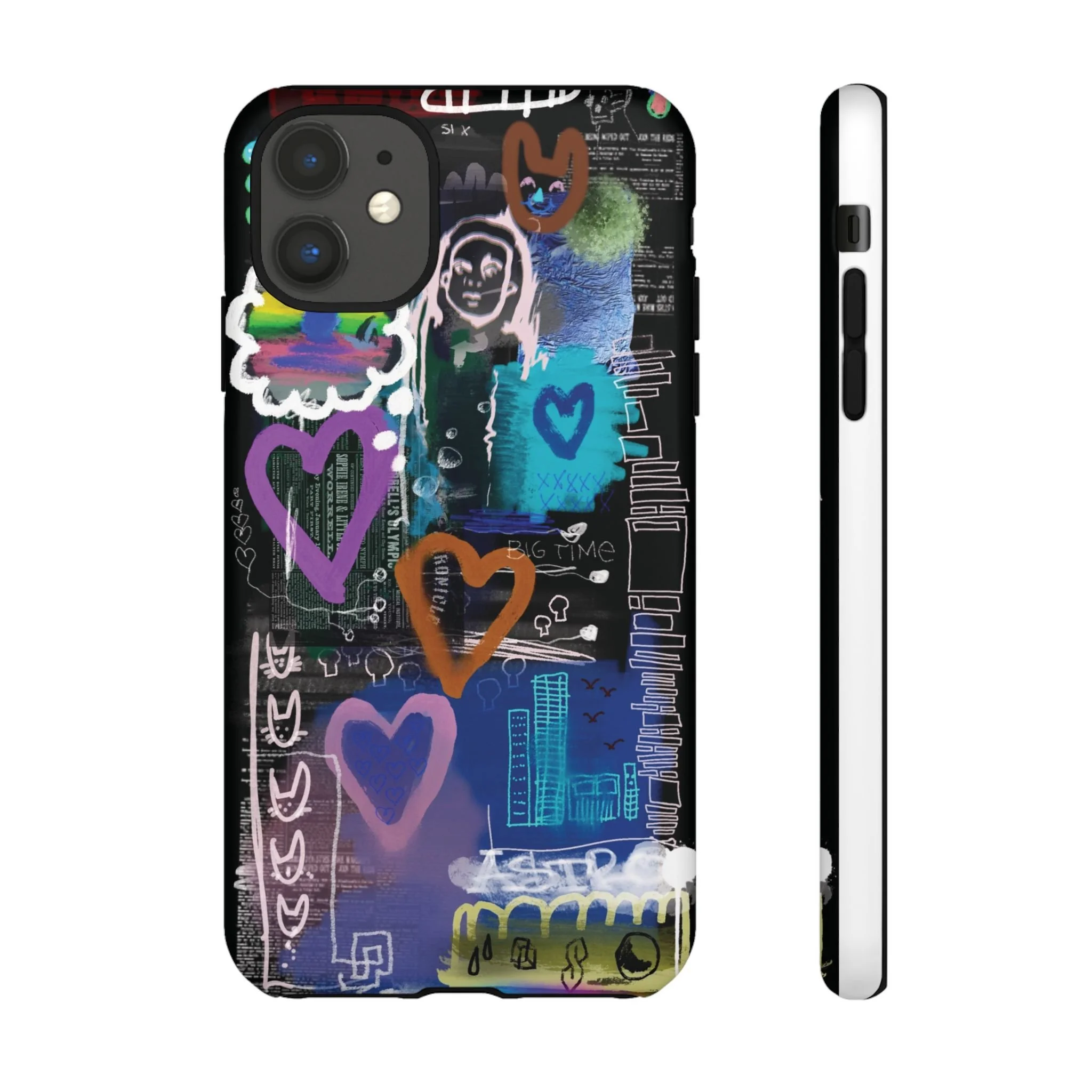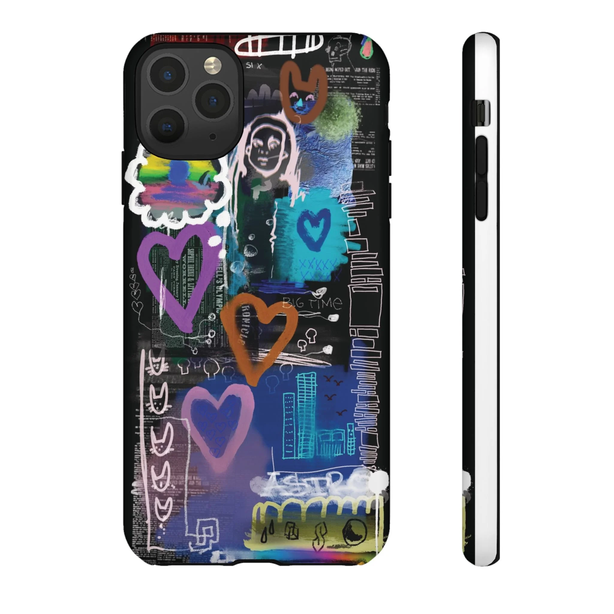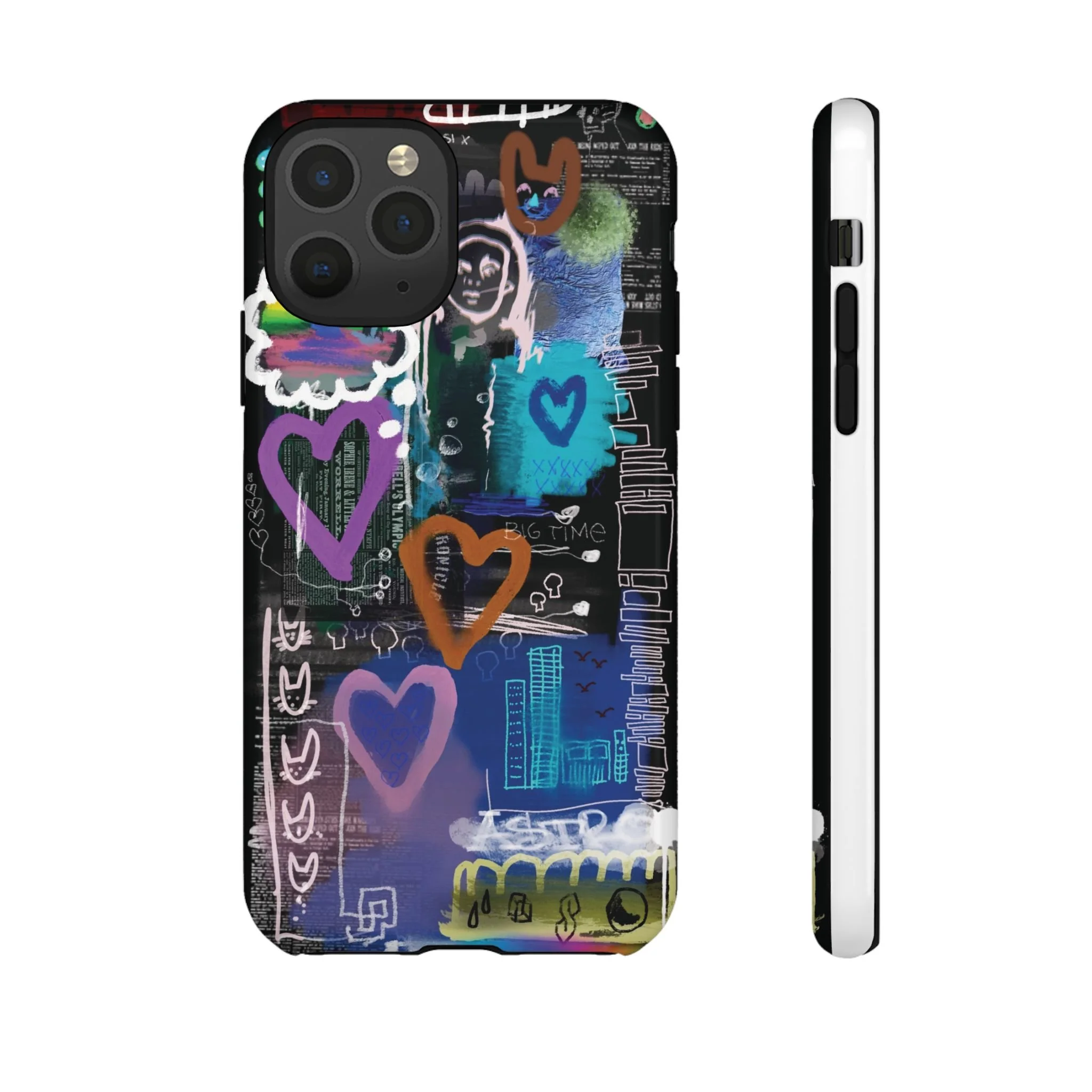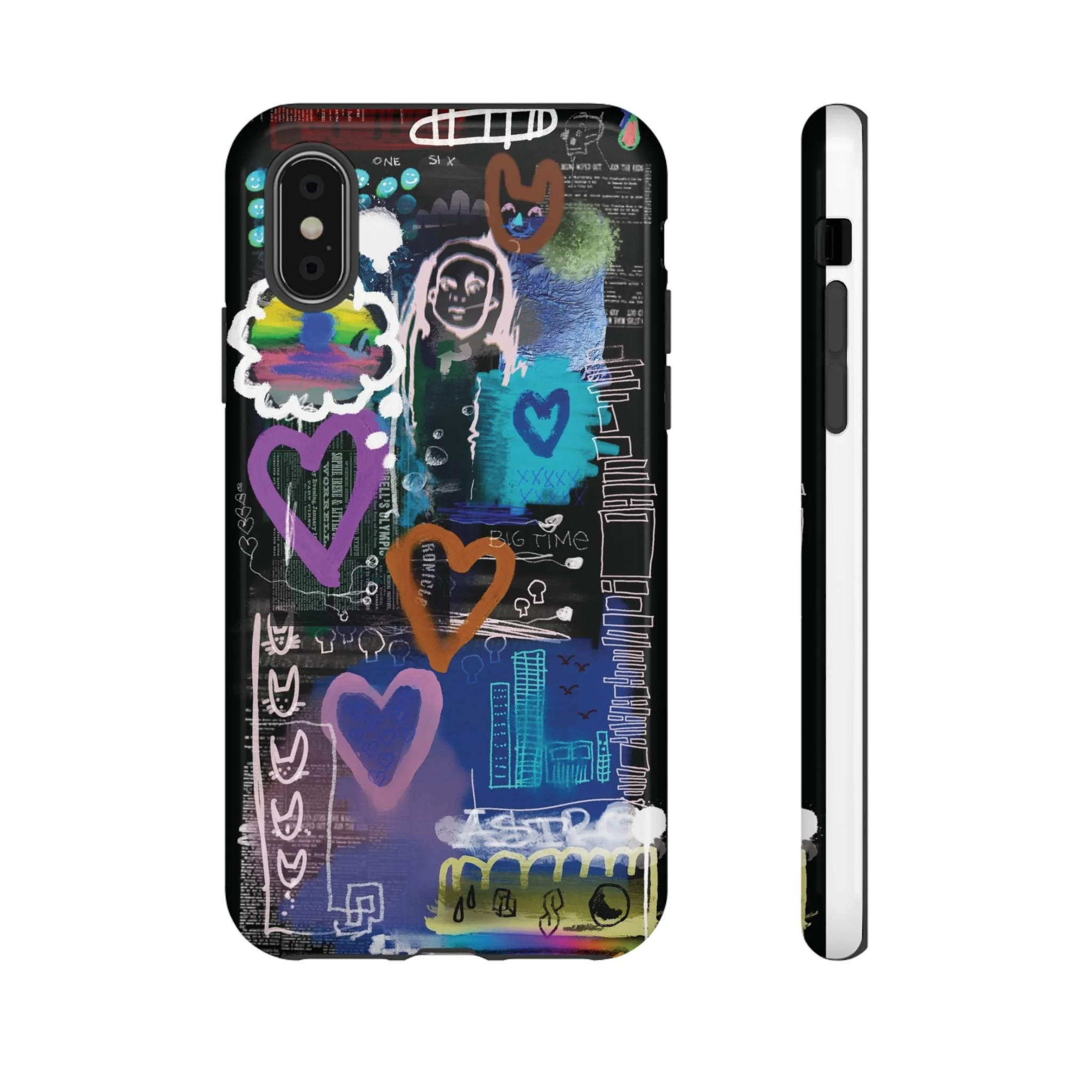 A protective Pink Cheeto phone case wrapped in vibrant street-art energy. Layers of spray-painted hearts, neon scribbles, and clipped architectural lines create a lived-in, gallery-on-the-go look. The glossy/matte finish keeps the colors saturated while the dual-layer polycarbonate shell and TPU silicone liner absorb shocks and guard against drops. Bring a bit of urban attitude to everyday carry — this case reads like a pocket sketchbook, brightening commutes, late-night walks, and coffee-shop sessions with its playful, hand-drawn charm.