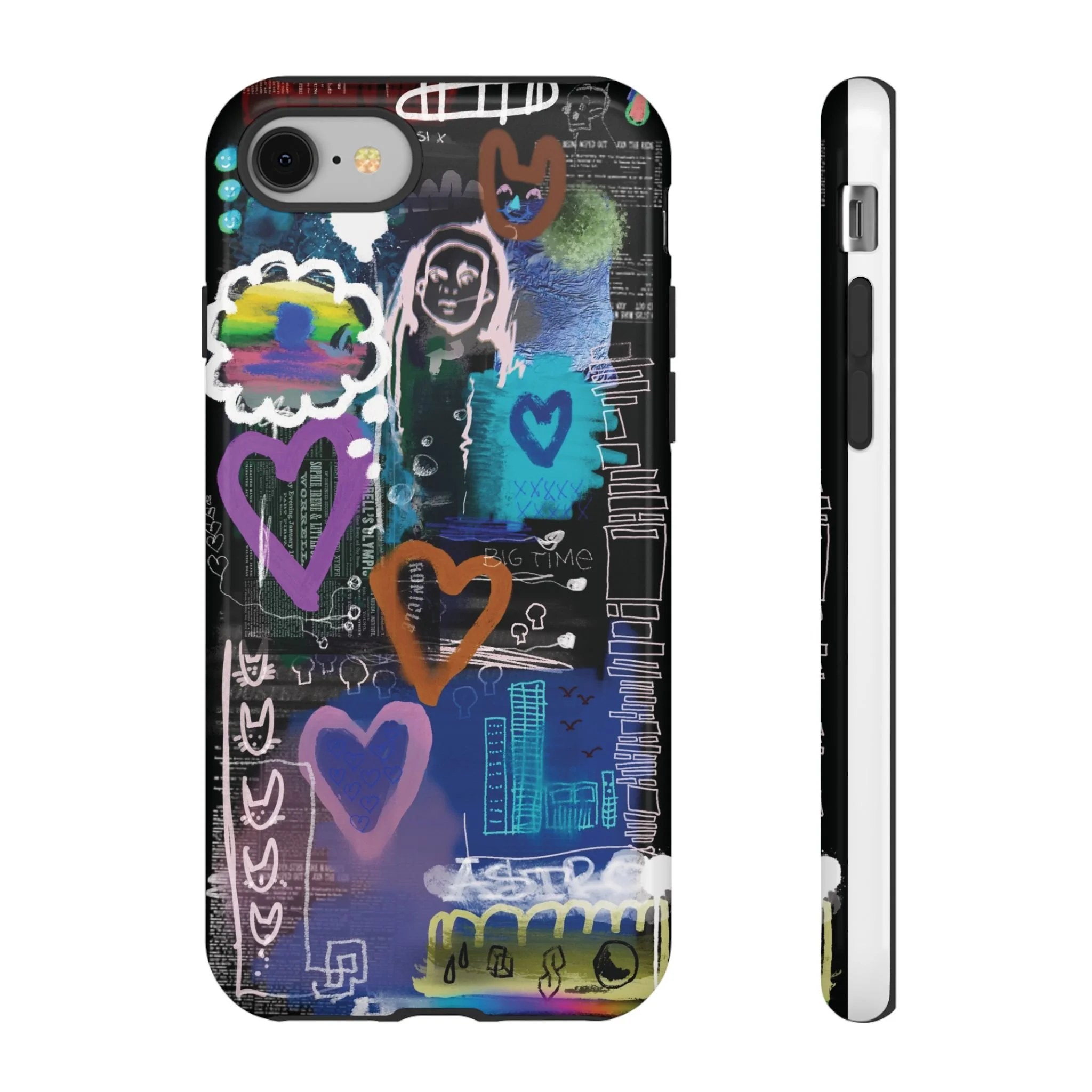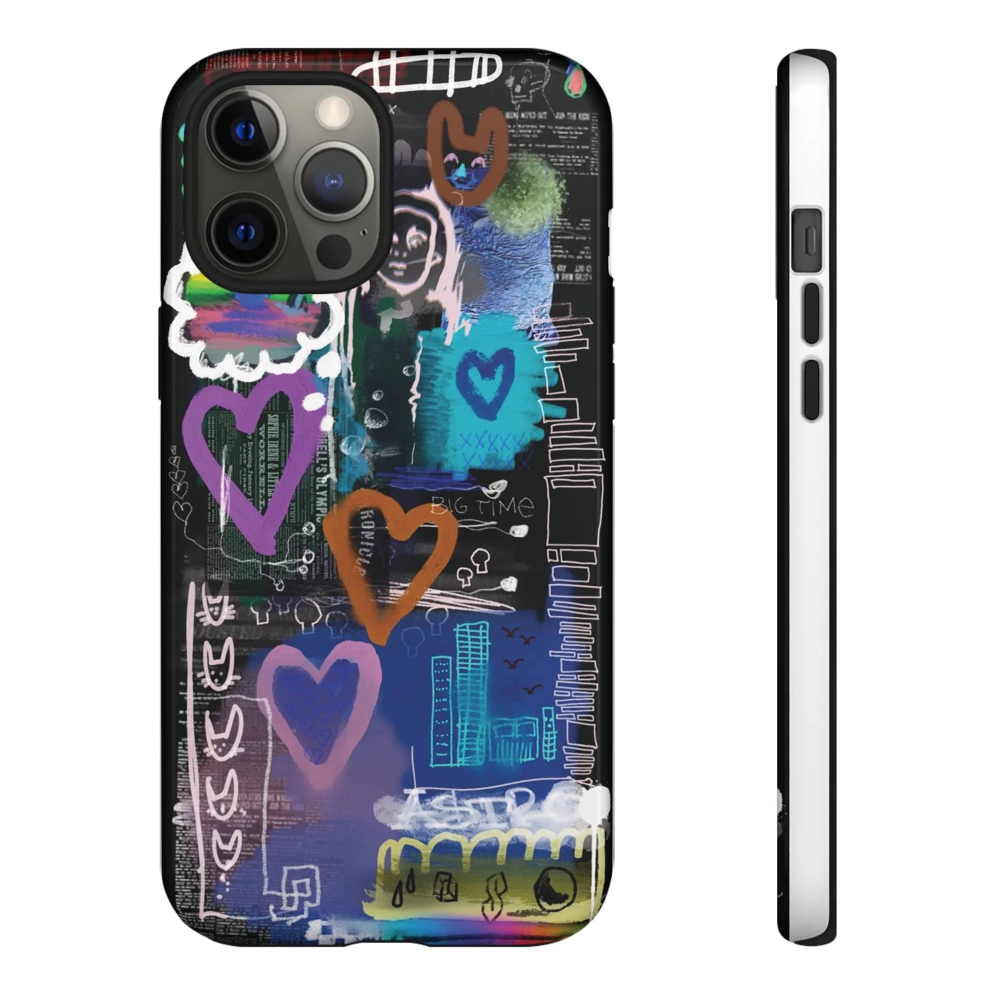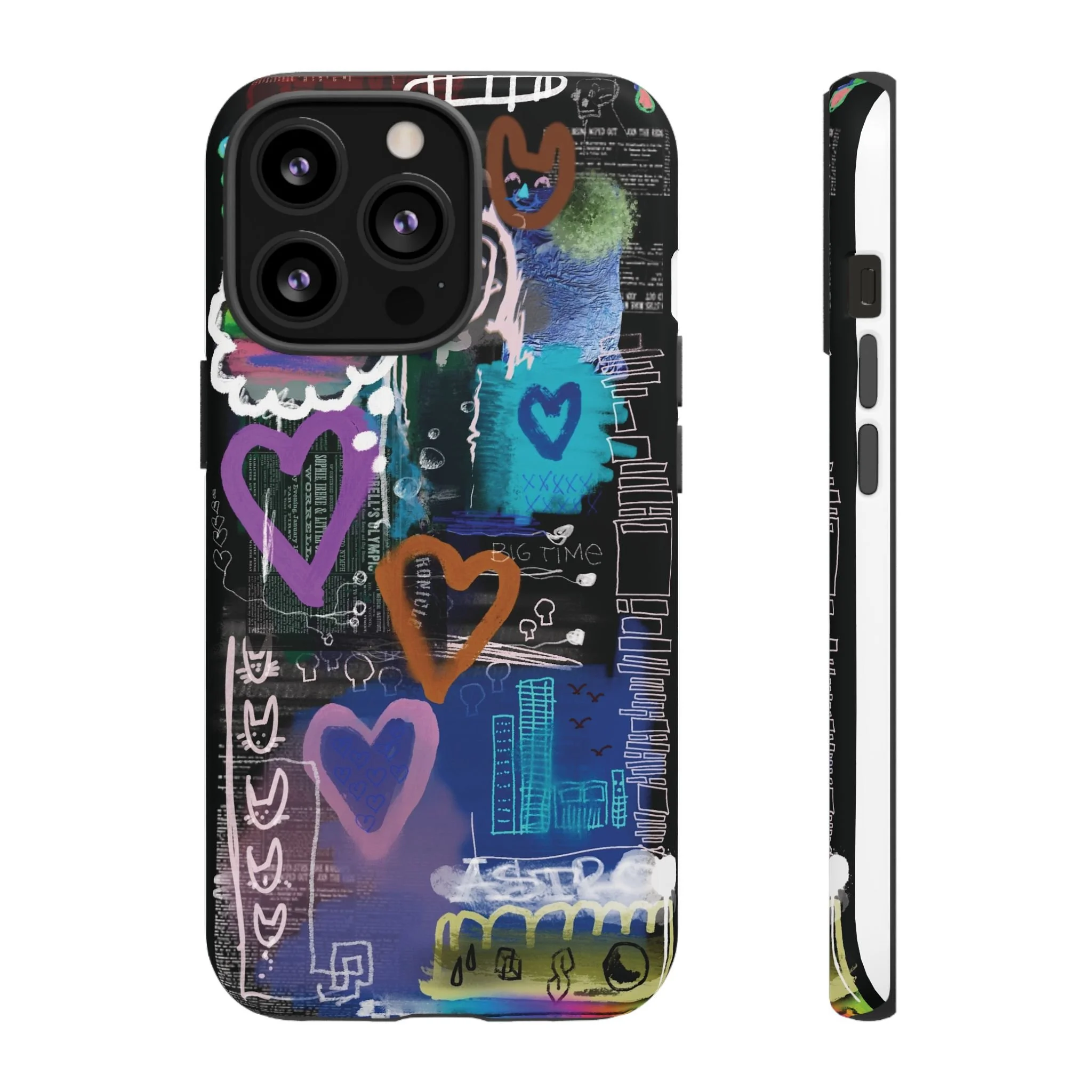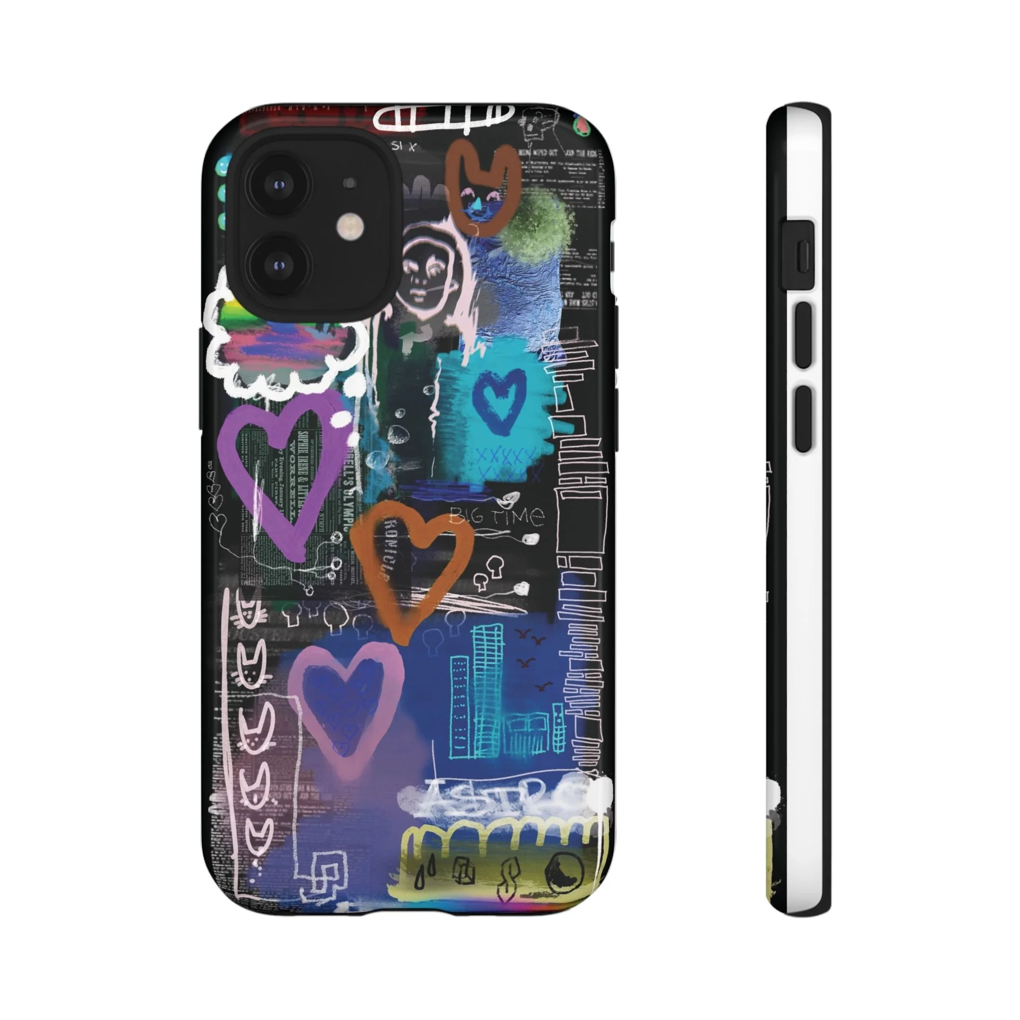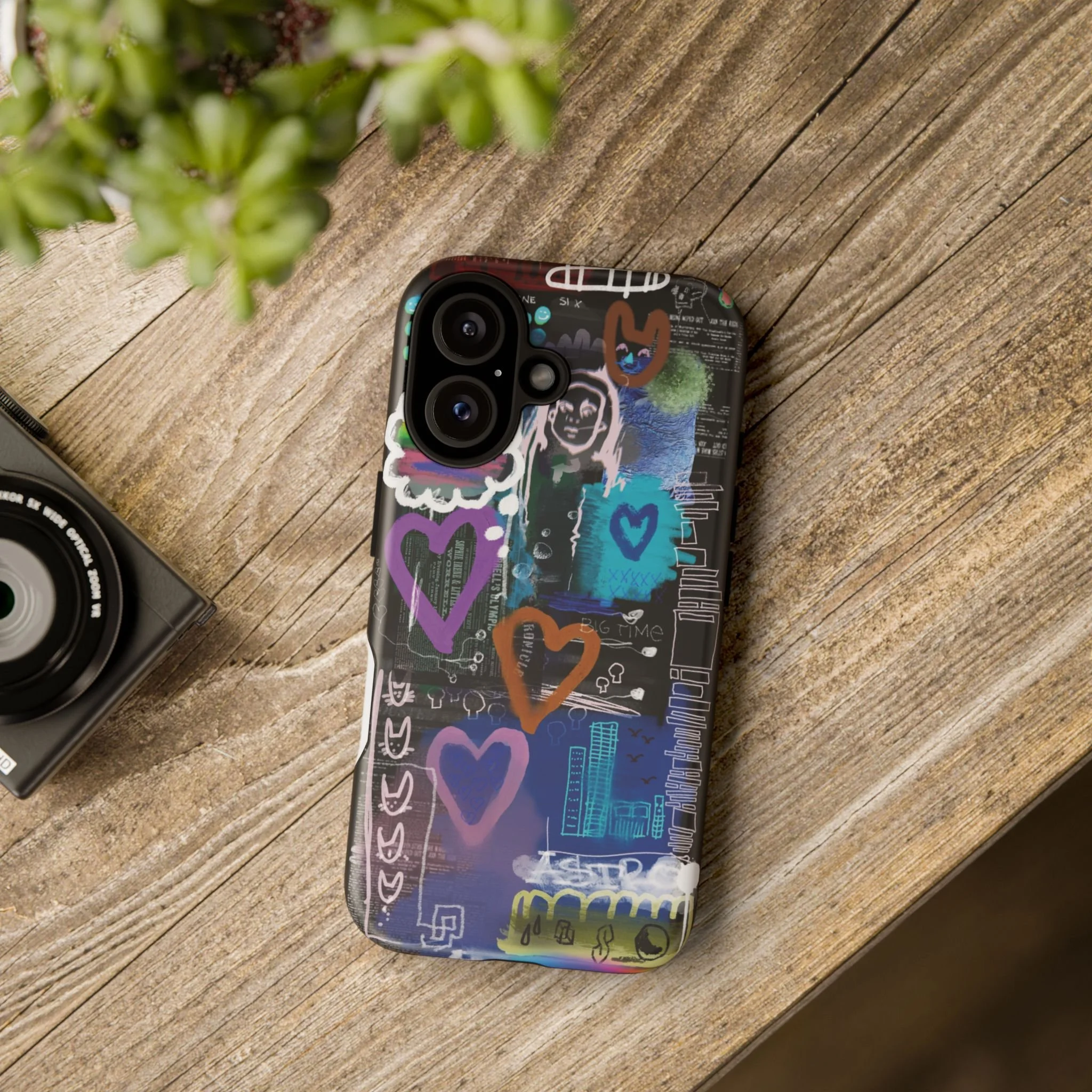 A protective Pink Cheeto phone case wrapped in vibrant street-art energy. Layers of spray-painted hearts, neon scribbles, and clipped architectural lines create a lived-in, gallery-on-the-go look. The glossy/matte finish keeps the colors saturated while the dual-layer polycarbonate shell and TPU silicone liner absorb shocks and guard against drops. Bring a bit of urban attitude to everyday carry — this case reads like a pocket sketchbook, brightening commutes, late-night walks, and coffee-shop sessions with its playful, hand-drawn charm.